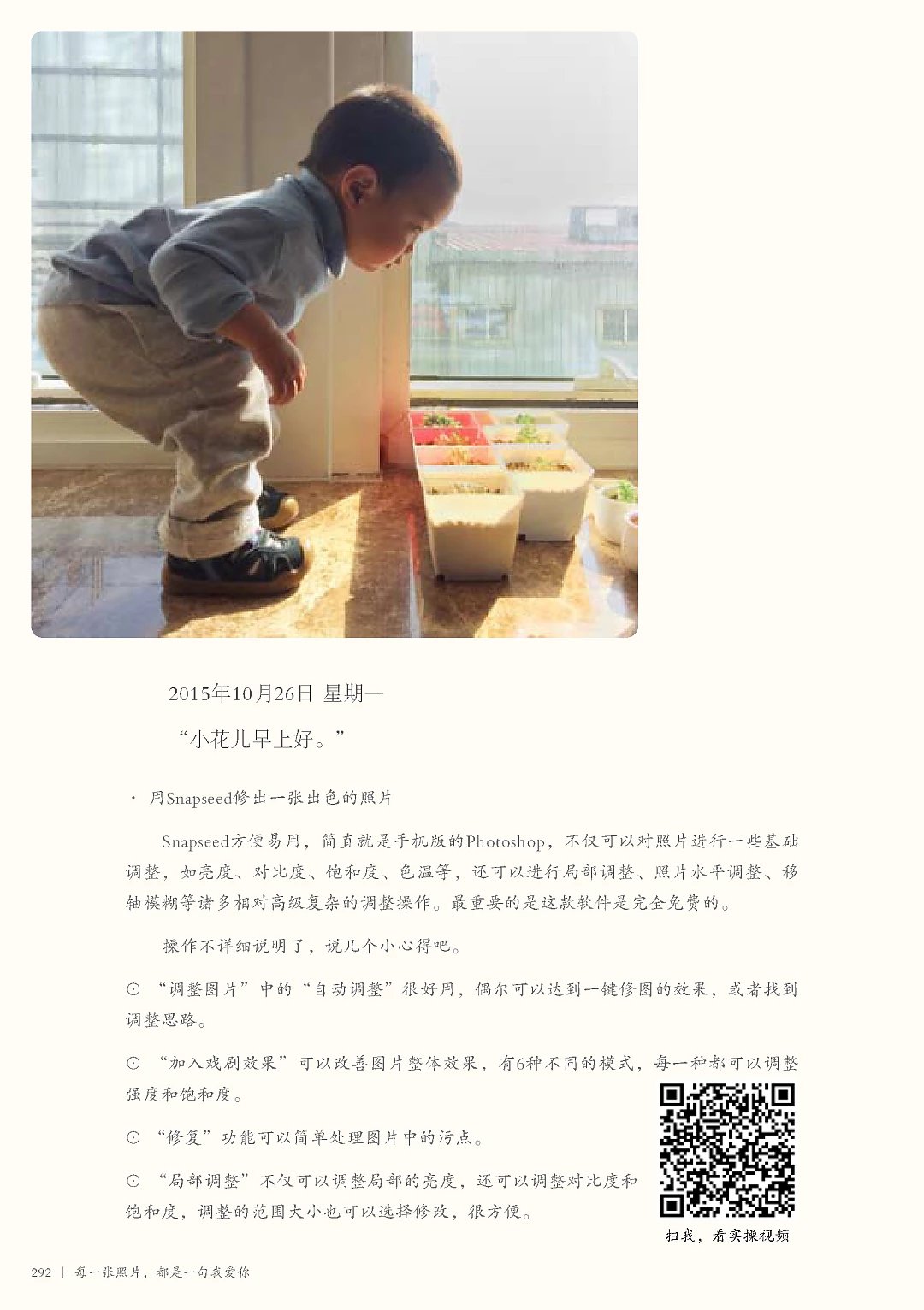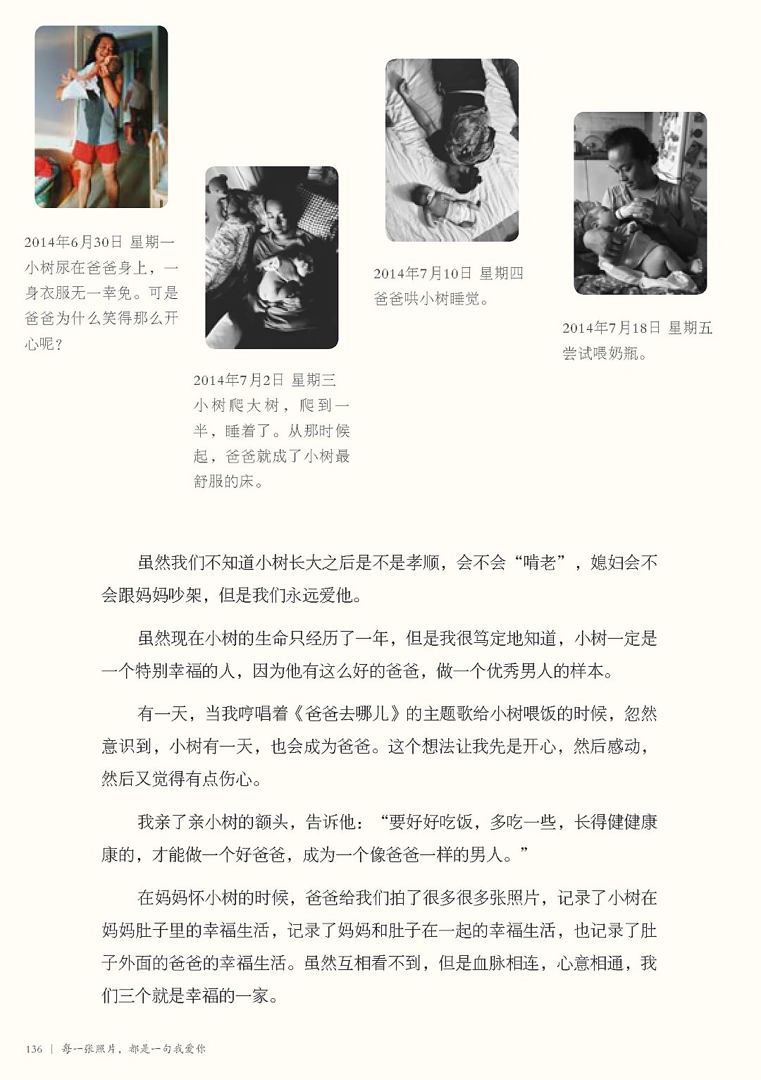 他从见到她的第一面起,就给她拍下了照片。 然后,她成为他的妻子。 他用每天一张照片的方式,记录了妻子怀孕、生产以及孩子成长的每个片段, 无声地表达着对全家的爱。儿子小树诞生后,树爸和树妈每天用照片和文字的方式 记录小树的成长。他们合作撰写的照片日记《小树地球旅行记》也因此得到多家媒 体的转载和专题采访。 这本书,呈现了图片记录下的幸福,也有树爸关于儿童摄影的攻略总结,还有 树妈关于育儿的一些动人的思考和感想。 希望为人父母的你,能感受到那些温暖的传递。