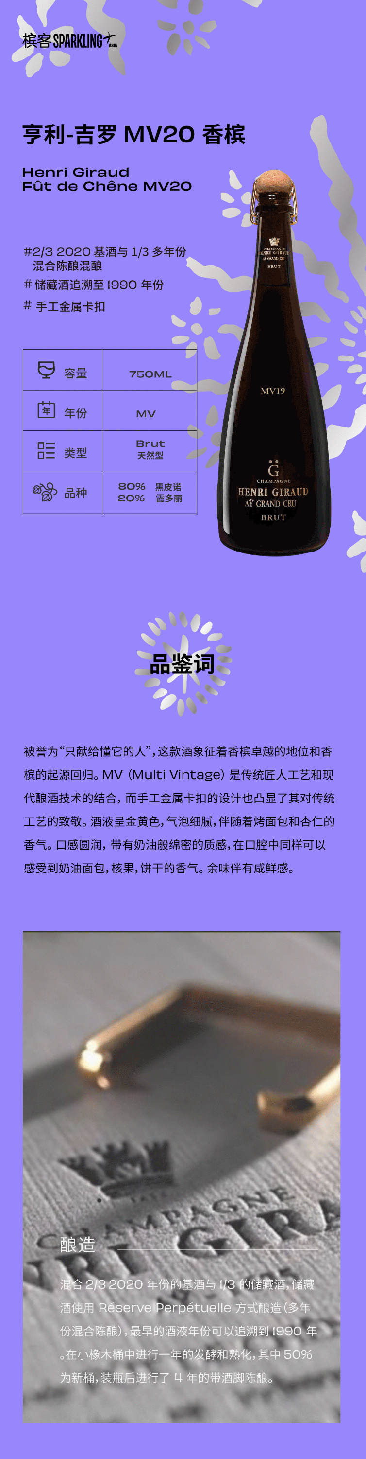 「限时免定制刻字费」Henri Giraud Fût de Chêne MV20 亨利吉罗橡木桶系列香槟 MV20&MV17 375ml