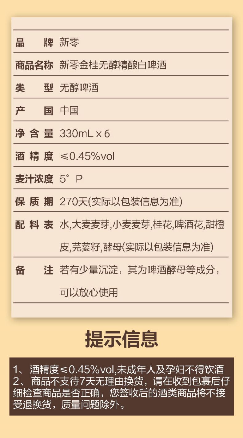 【发出后不支持拦截】【山姆同款】新零 金桂精酿无醇啤酒 330ml*6
