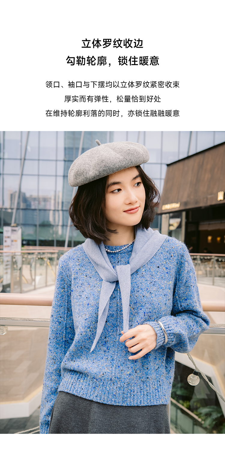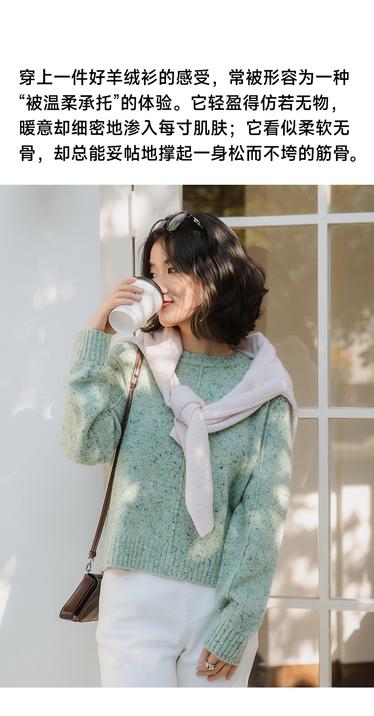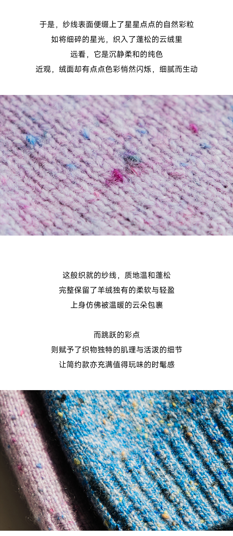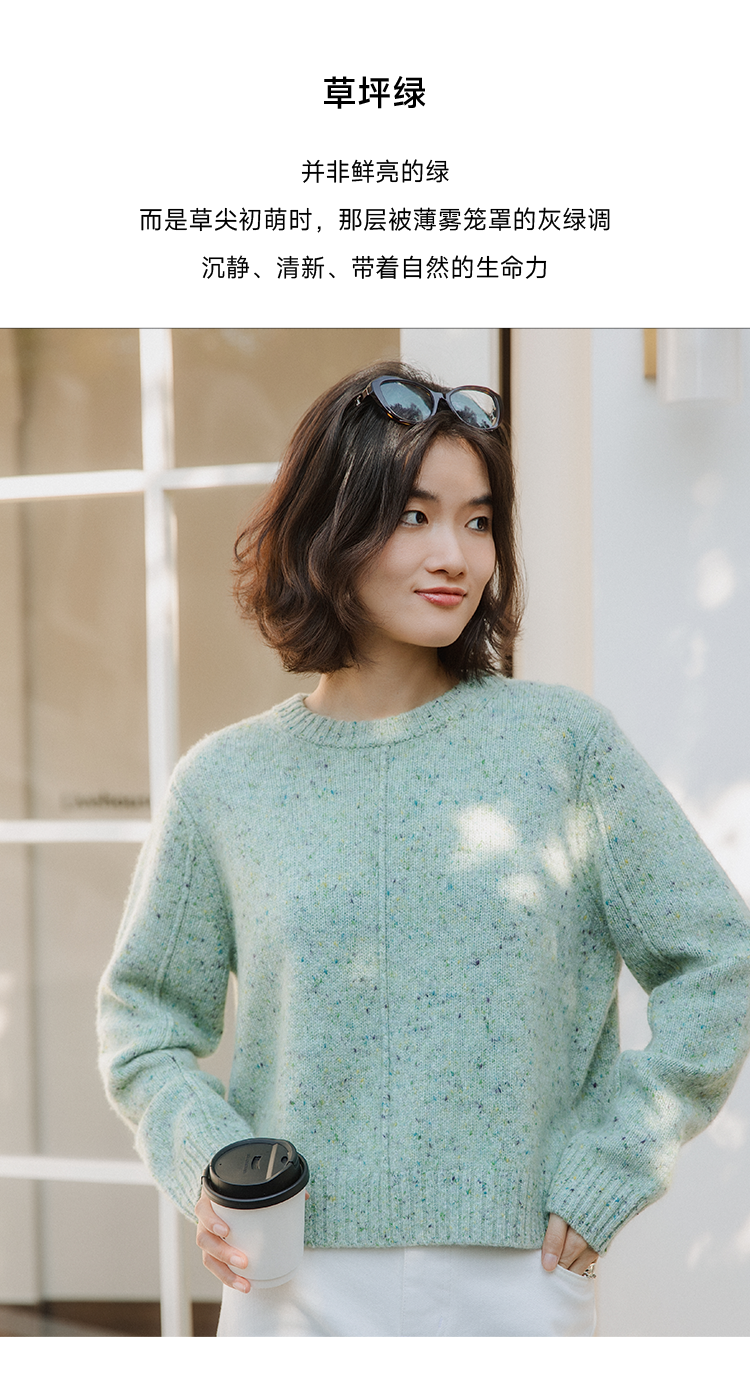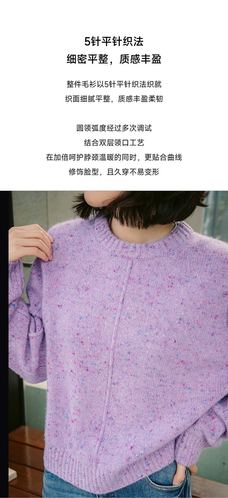 落日星河 重磅100%山羊绒圆领套头金银丝羊绒衫FCF3CST126