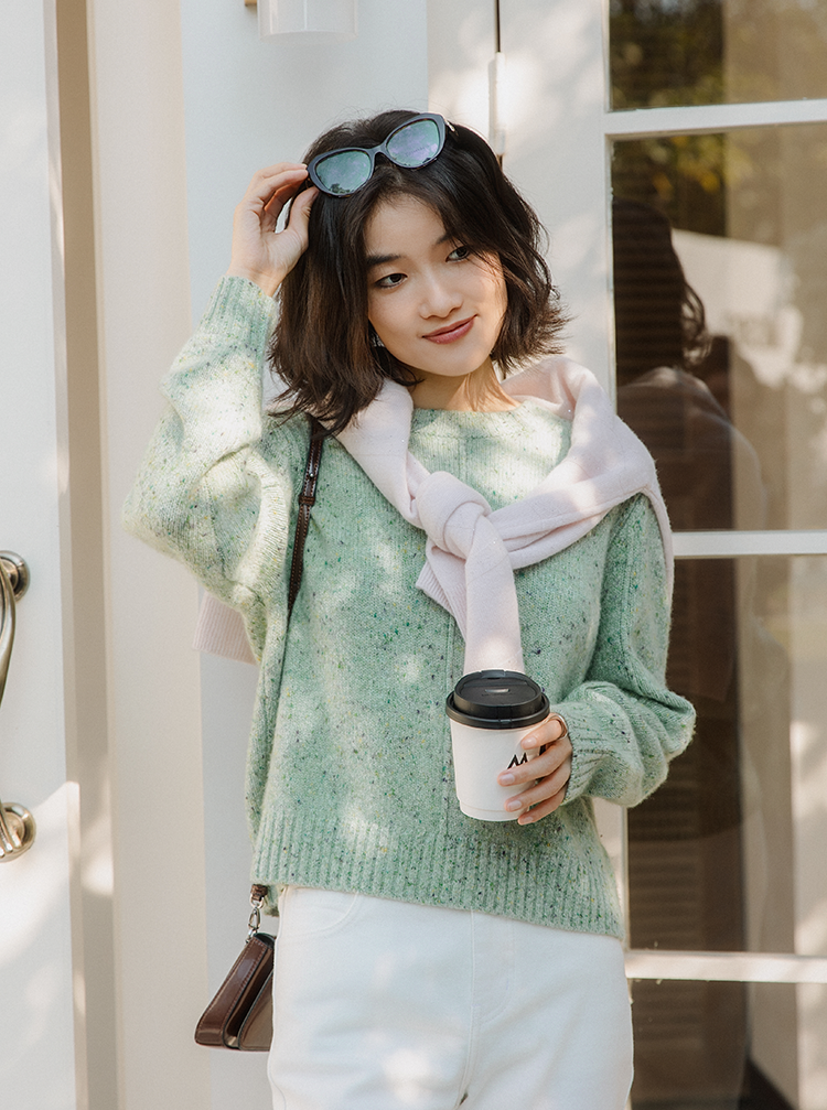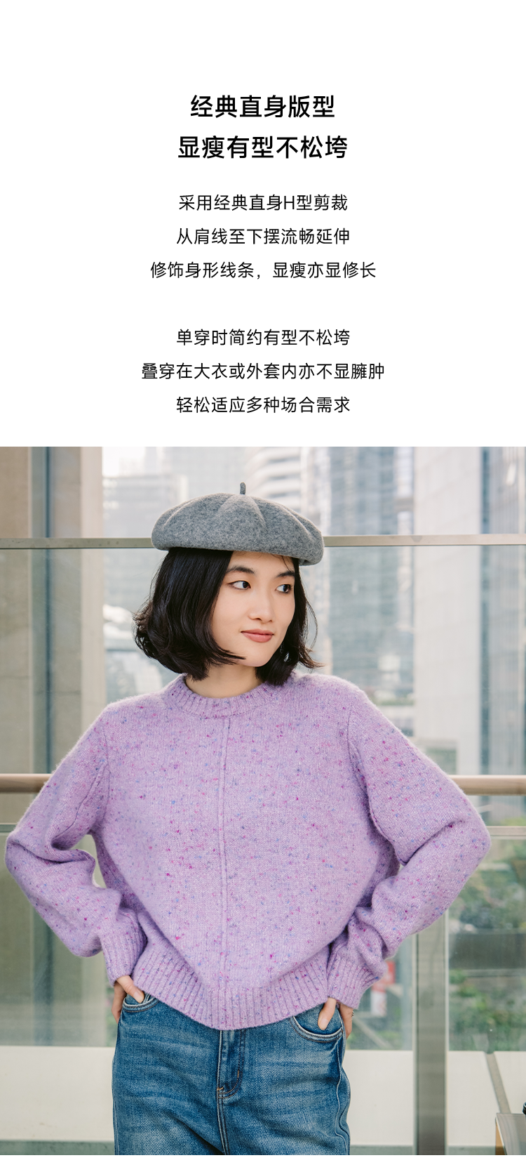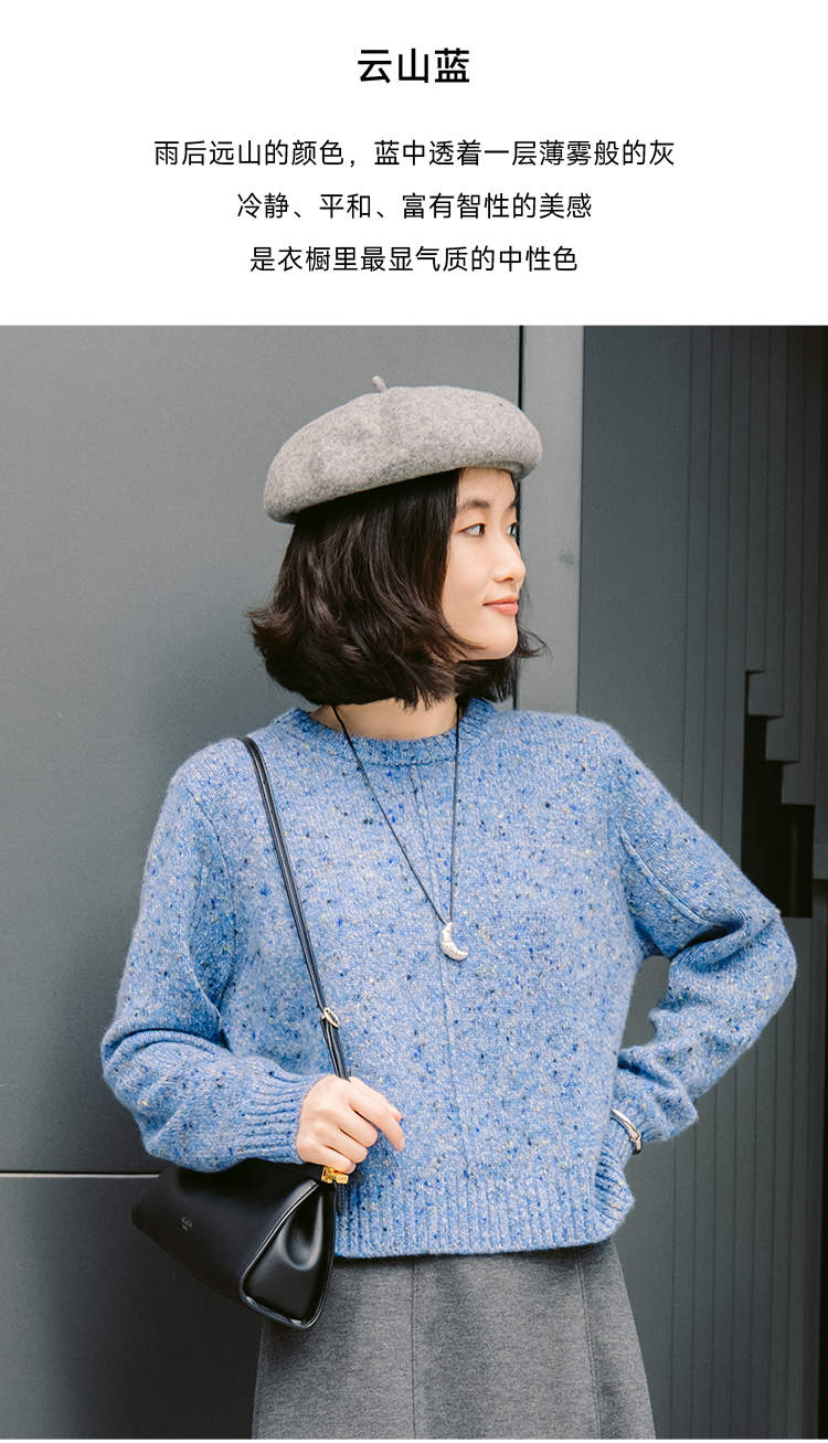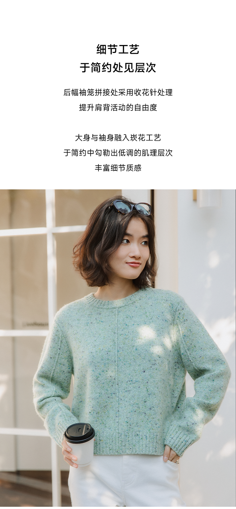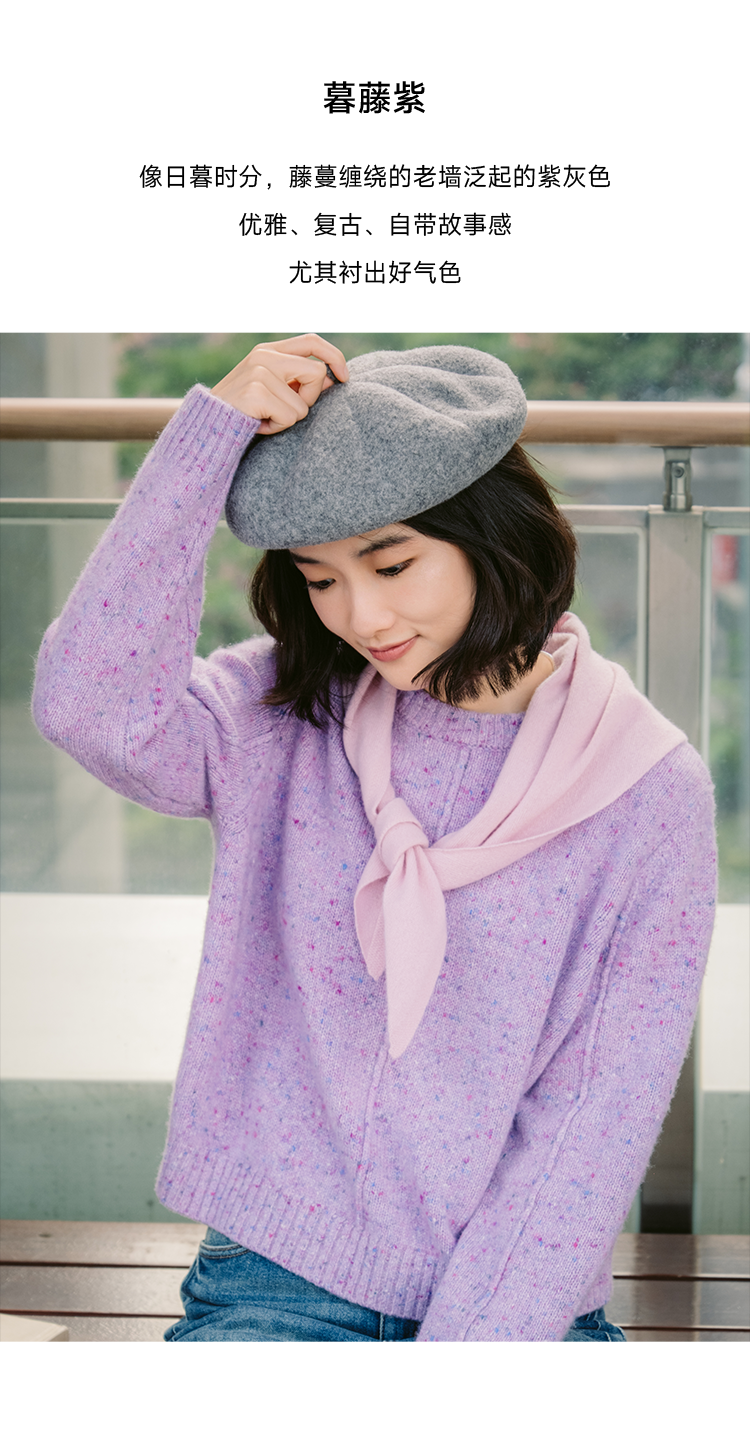 落日星河 重磅100%山羊绒圆领套头金银丝羊绒衫FCF3CST126