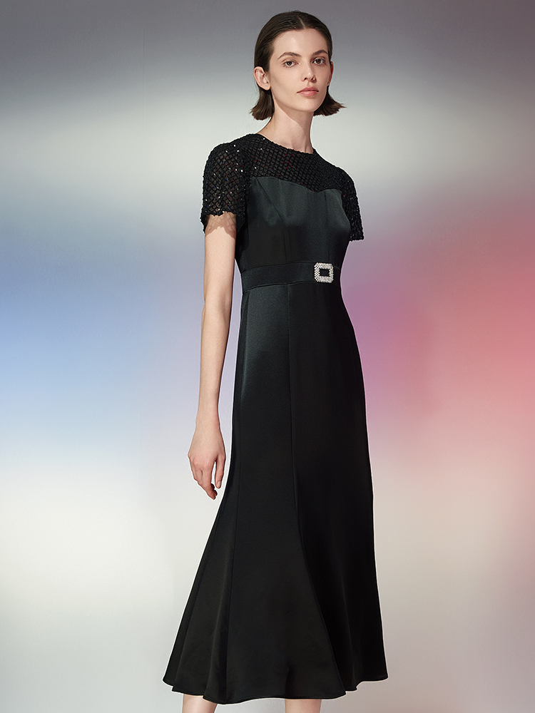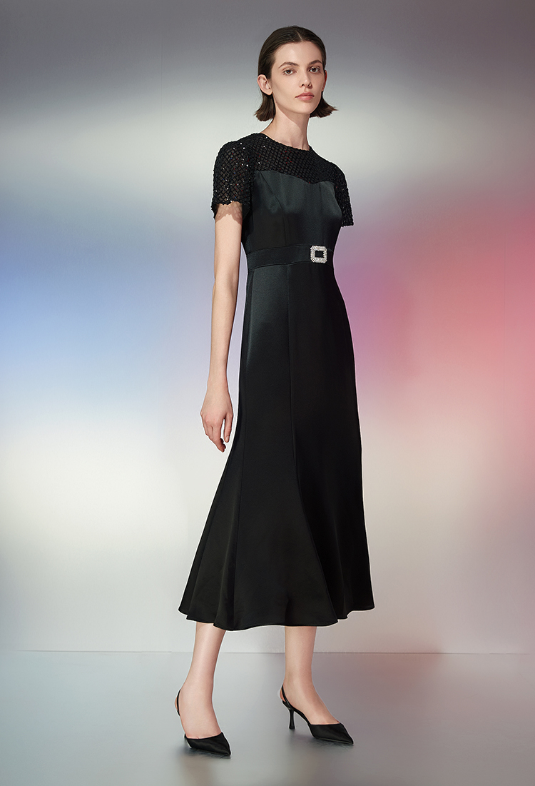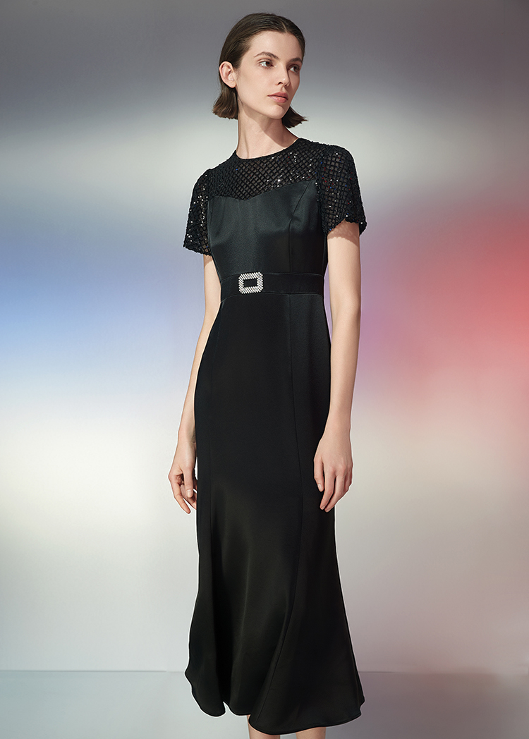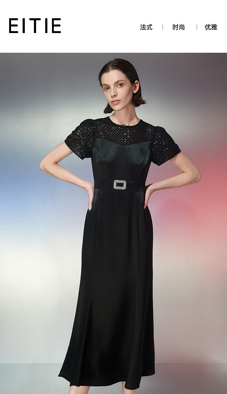 EITIE爱特爱夏季新款洋气镂空显瘦收腰礼服连衣裙7777417