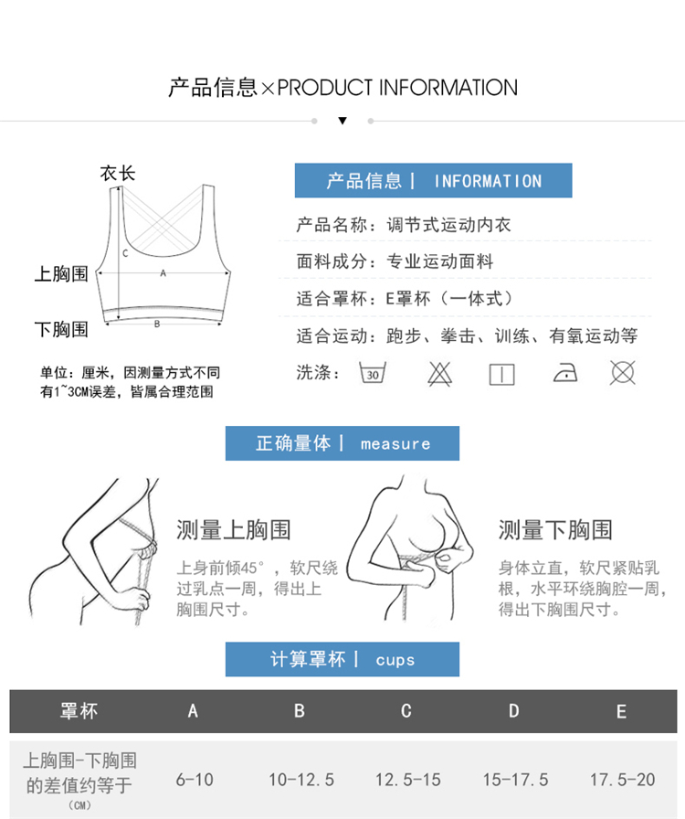跃牌(呗咪纷纷系列)大码前拉链运动胸围 一体式全罩杯WX237