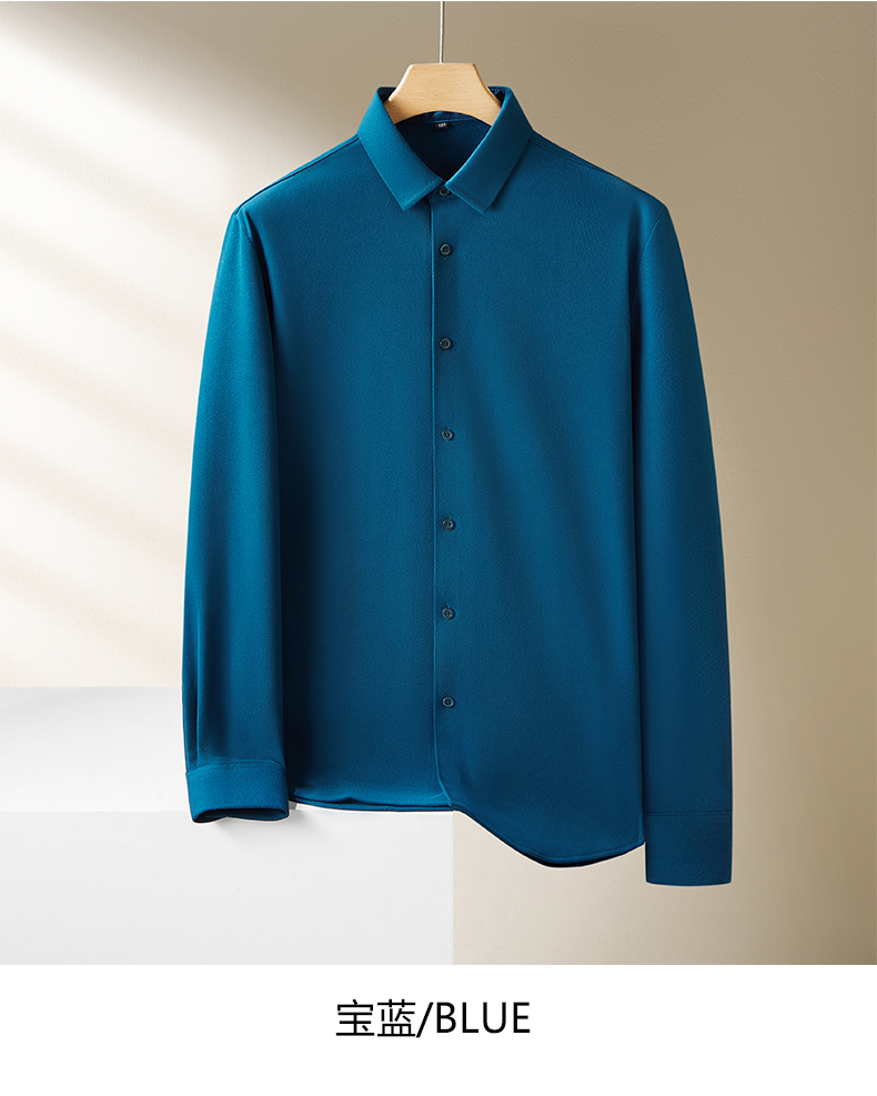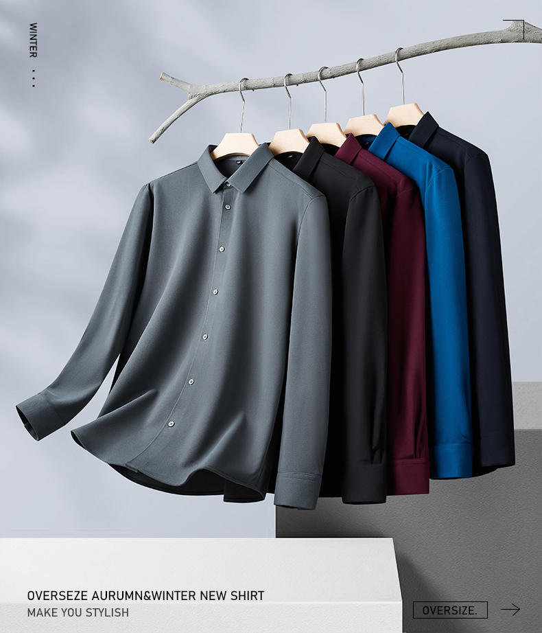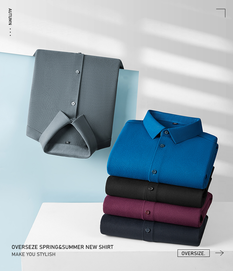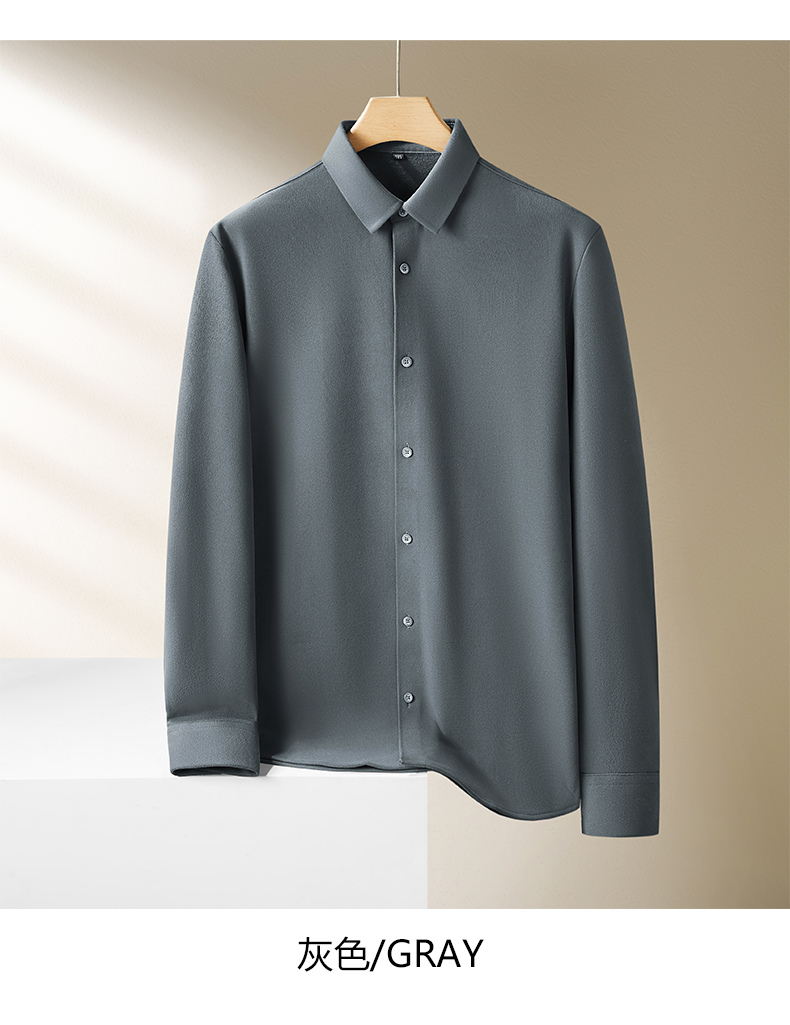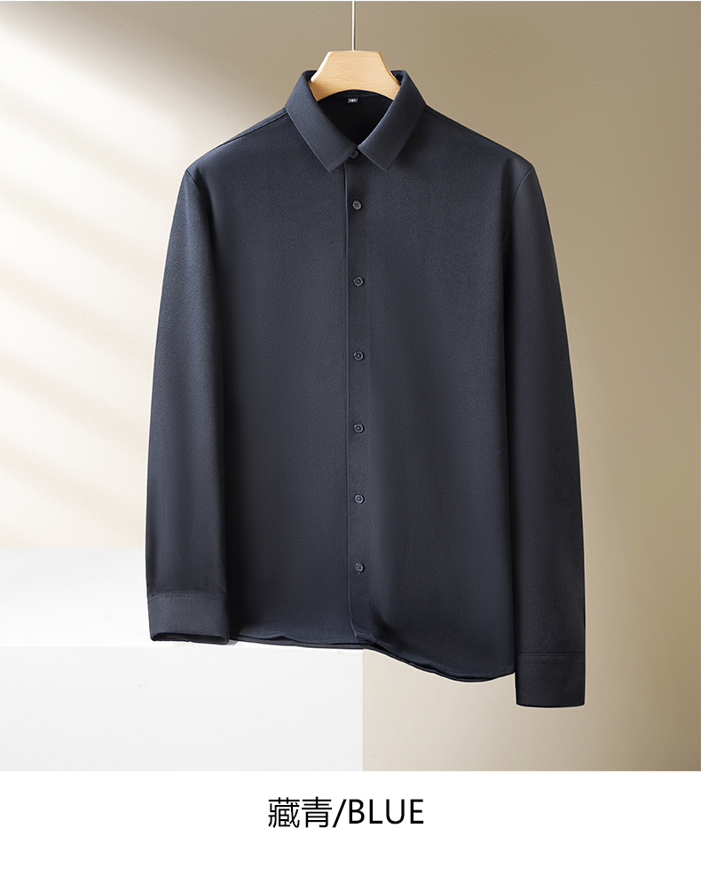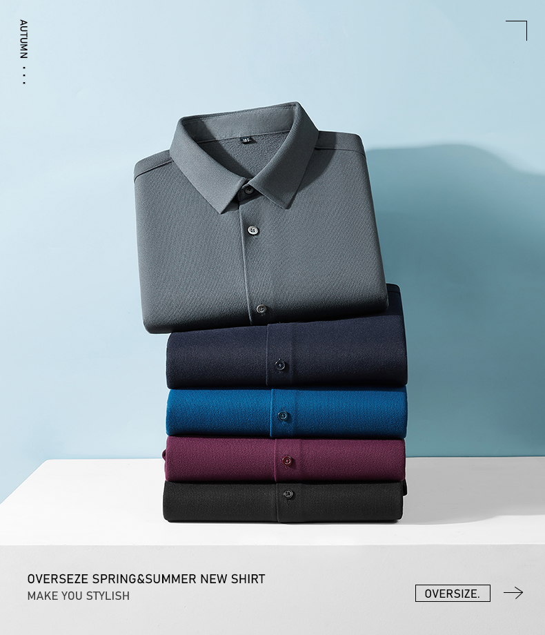 【加绒】【新款DM】大依优型大码加绒高弹长袖衬衫男宽松加肥加大码男士休闲商务衬衣上衣胖子