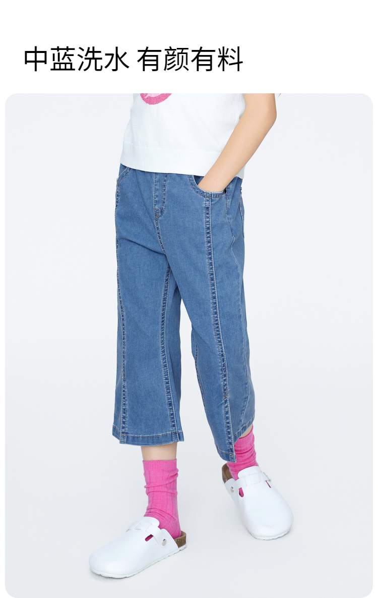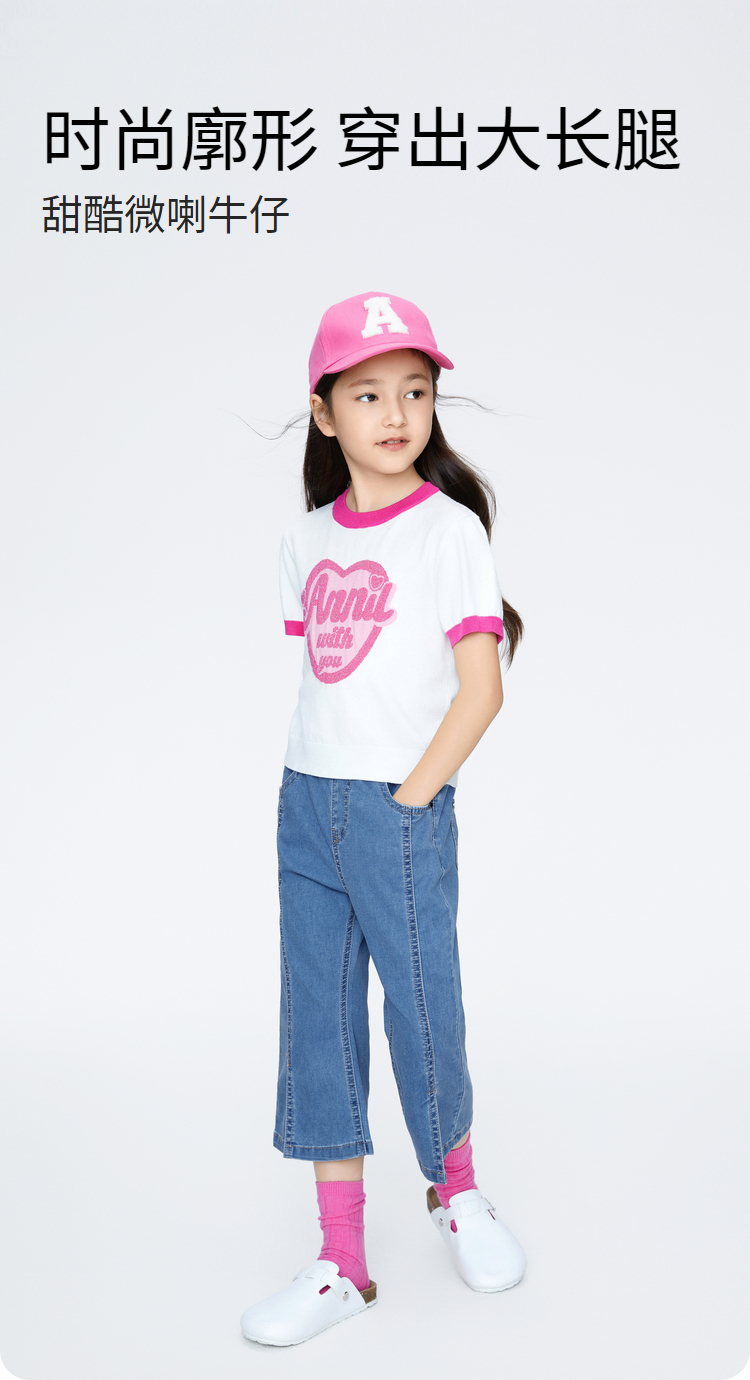 女童甜酷微喇牛仔七分裤裤子夏季新款安奈儿童装实体店同款AG426633