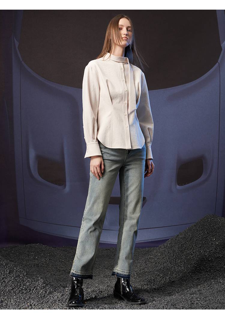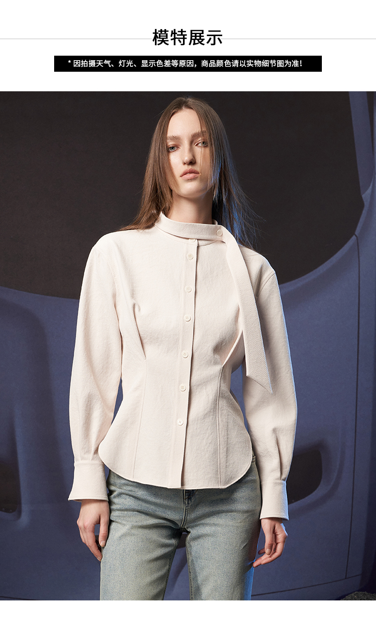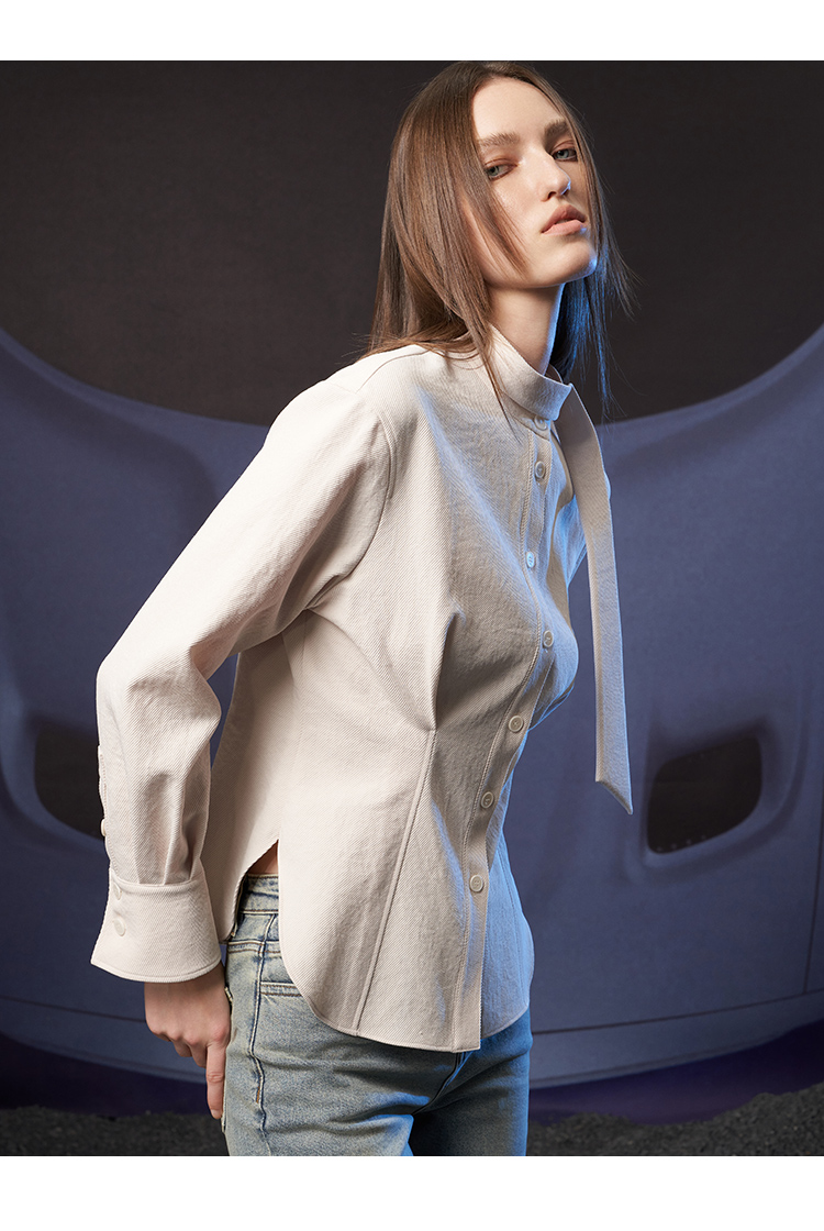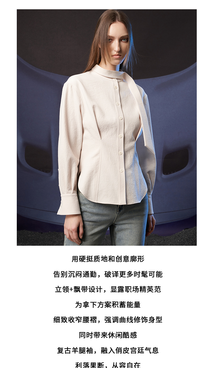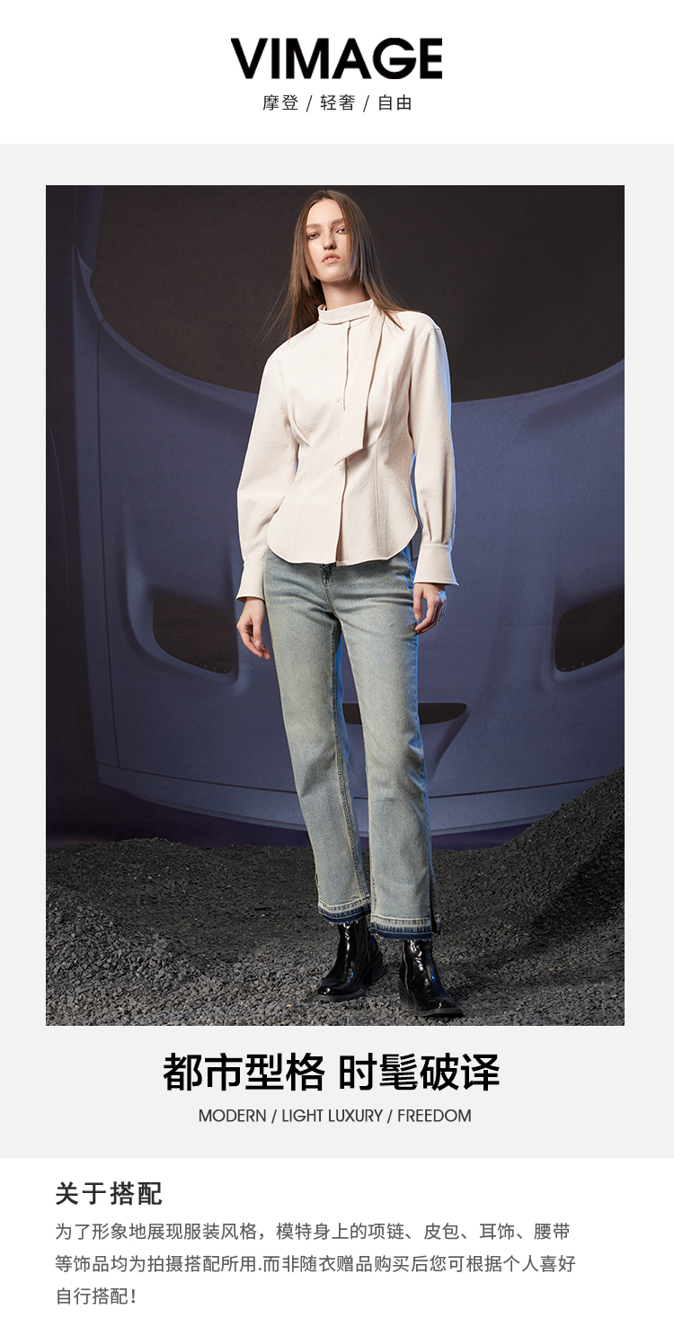 VIMAGE纬漫纪秋季新款时尚立领收腰显瘦衬衫上衣V1809417