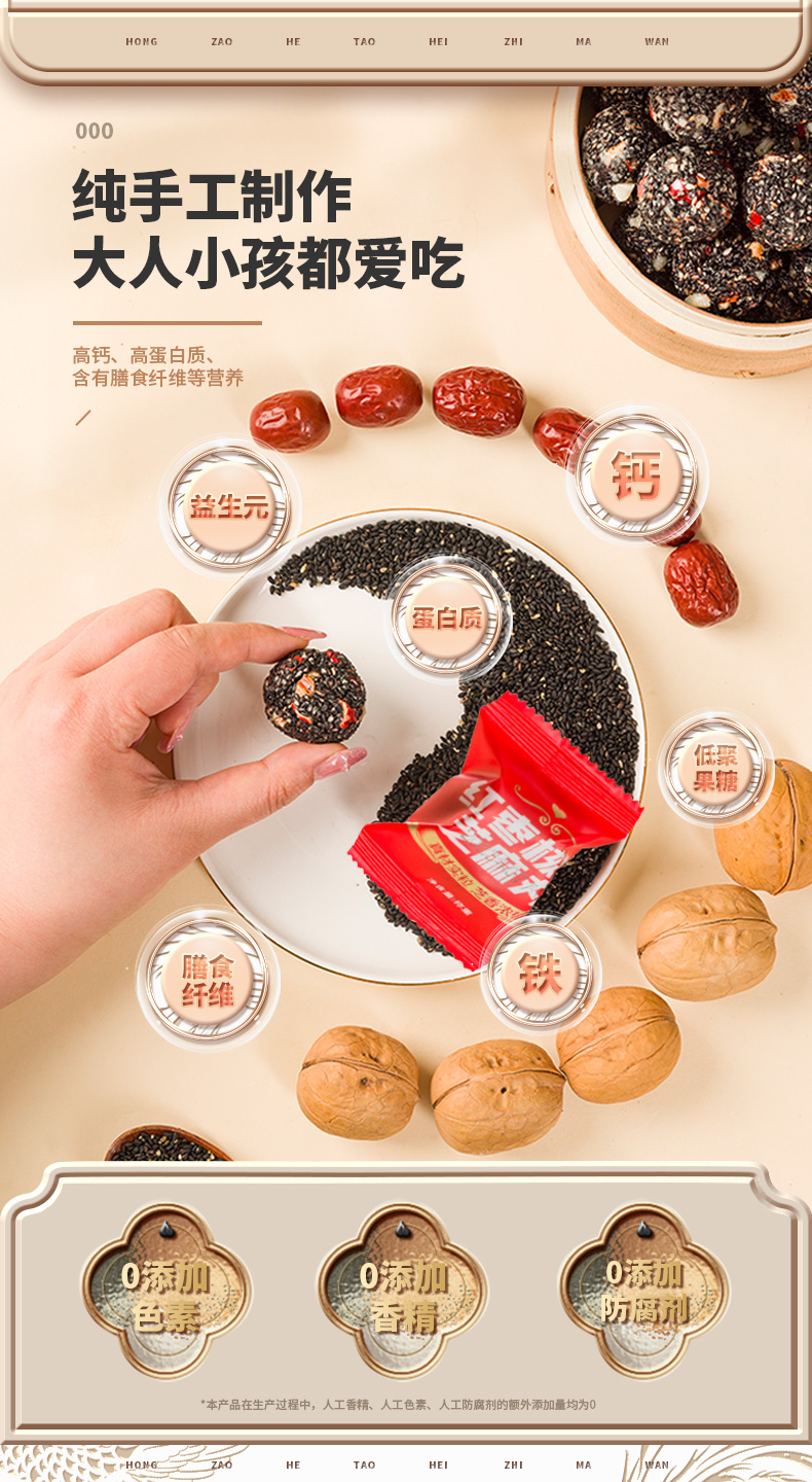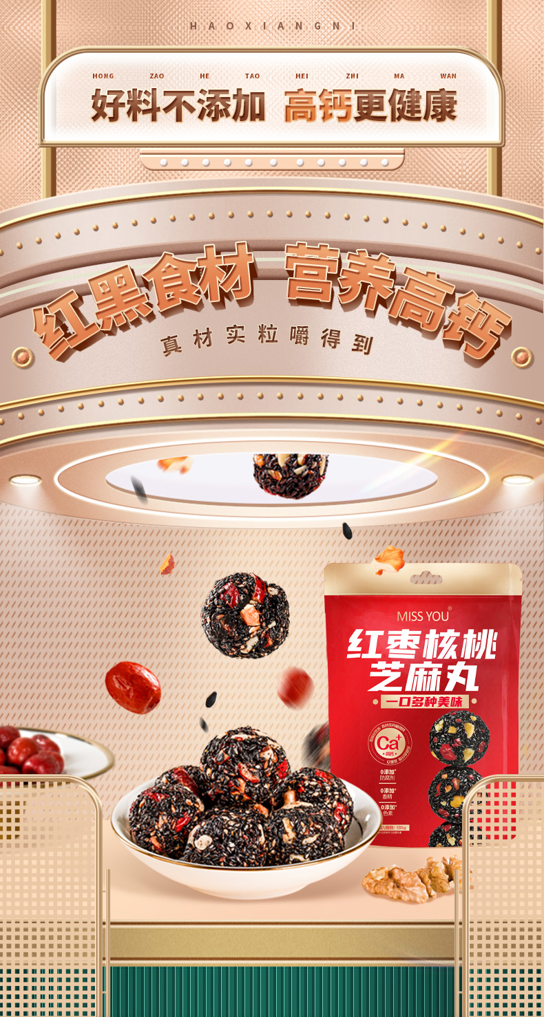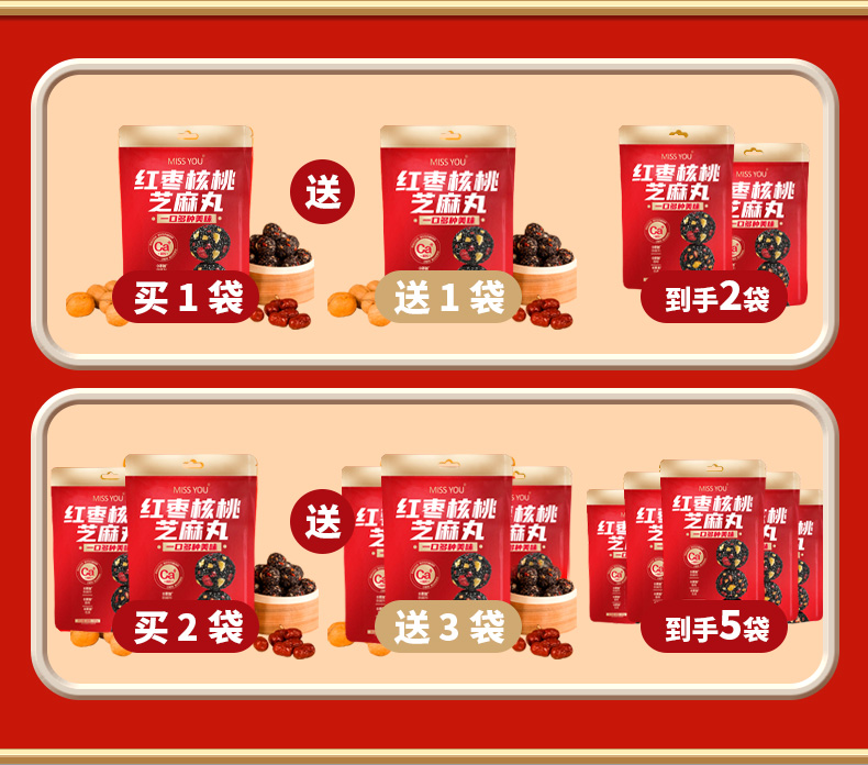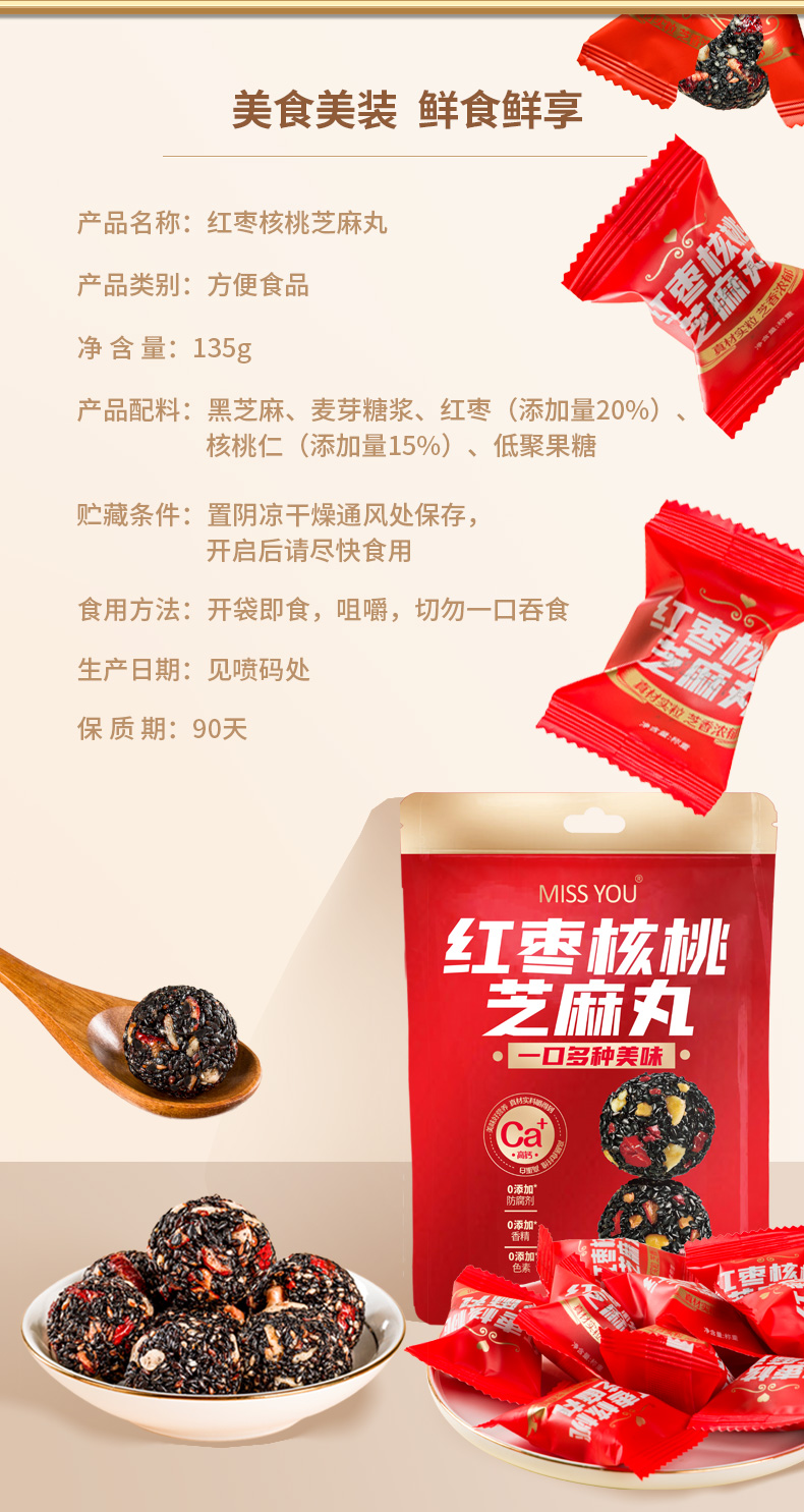 【品牌直发】好想你MISSYOU红枣核桃黑芝麻丸135g*2袋