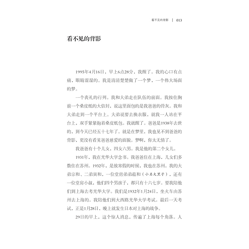 附给你们我写的三篇短文:《本来没有我》(写我自己)、《看不见的背影》(写爸爸)、《王觉悟闹学》(写四妹充和)。供参考。