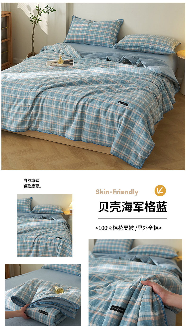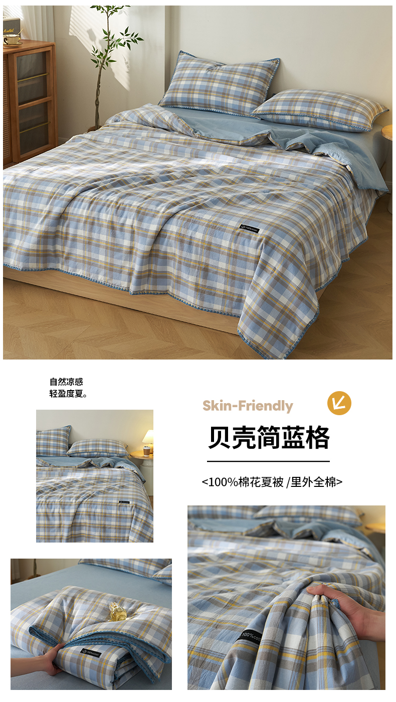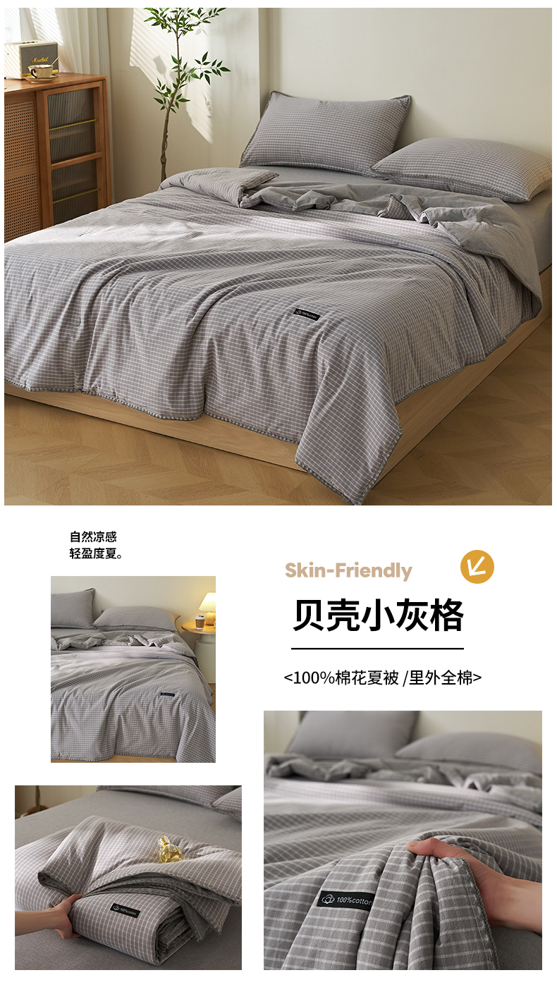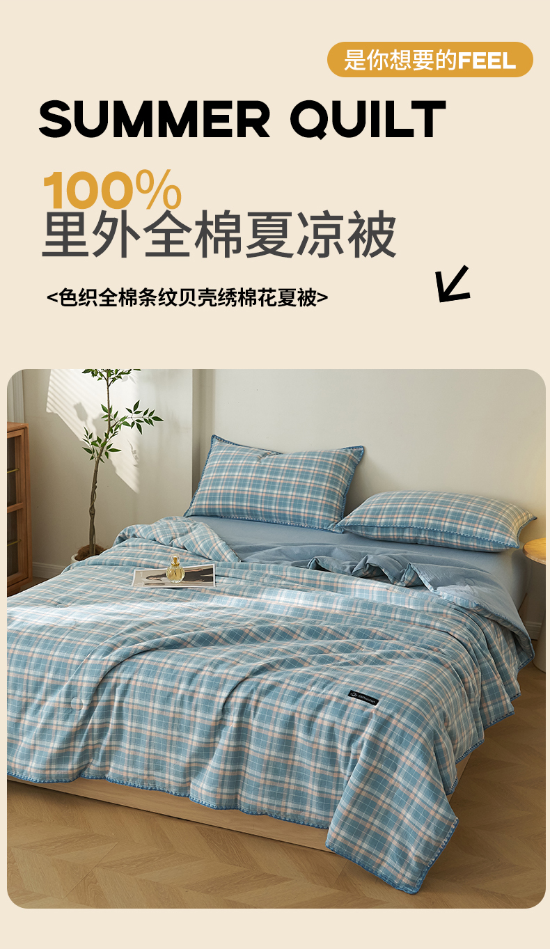 恒源祥 2026新款无印风色织全棉贝壳绣棉花夏被空调被/床单/枕套 透气舒适 多规格可选