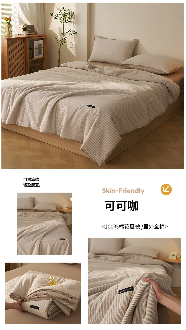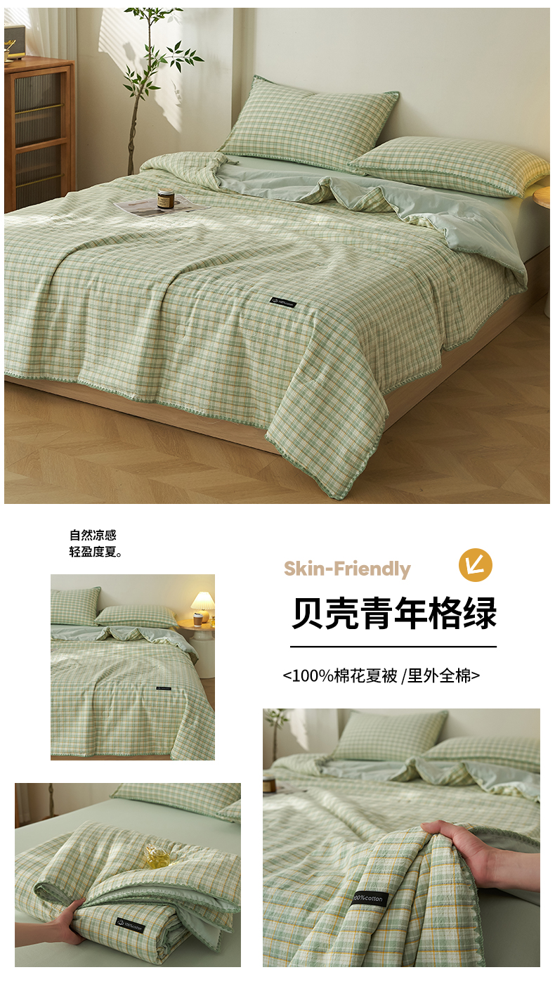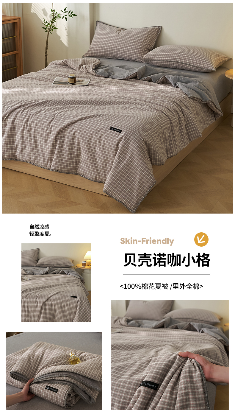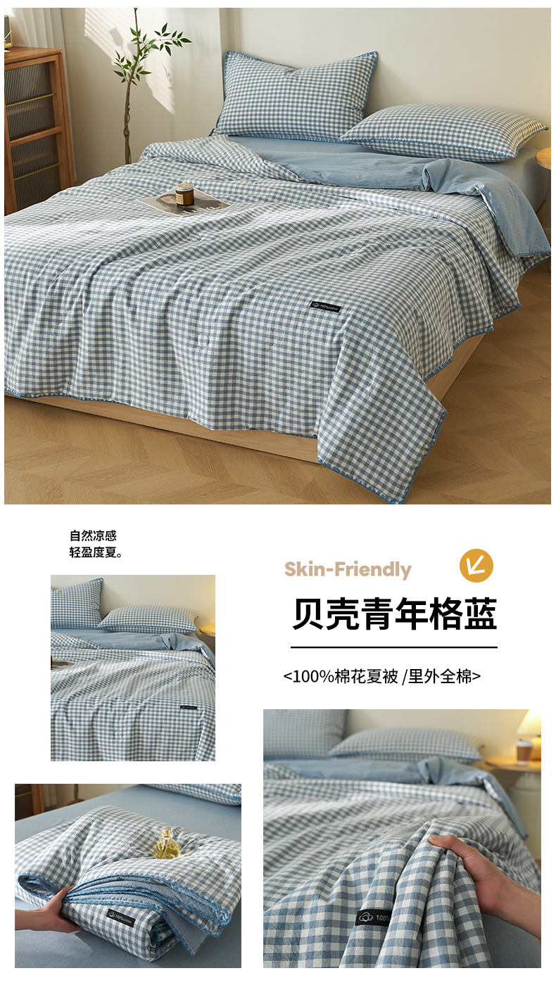 恒源祥 2026新款无印风色织全棉贝壳绣棉花夏被空调被/床单/枕套 透气舒适 多规格可选