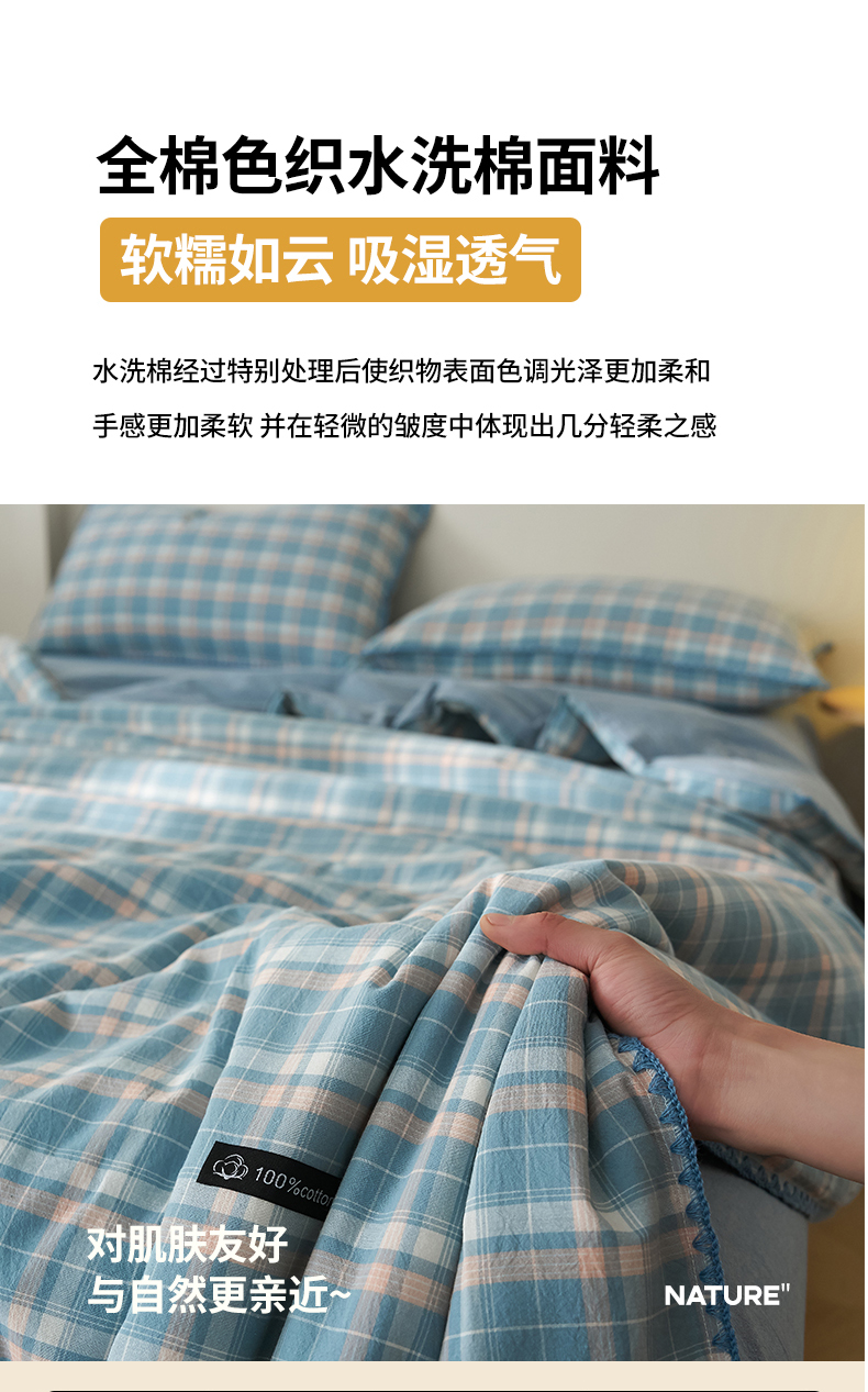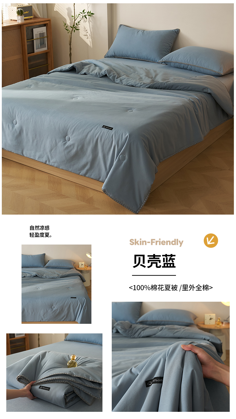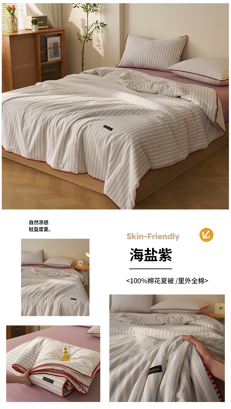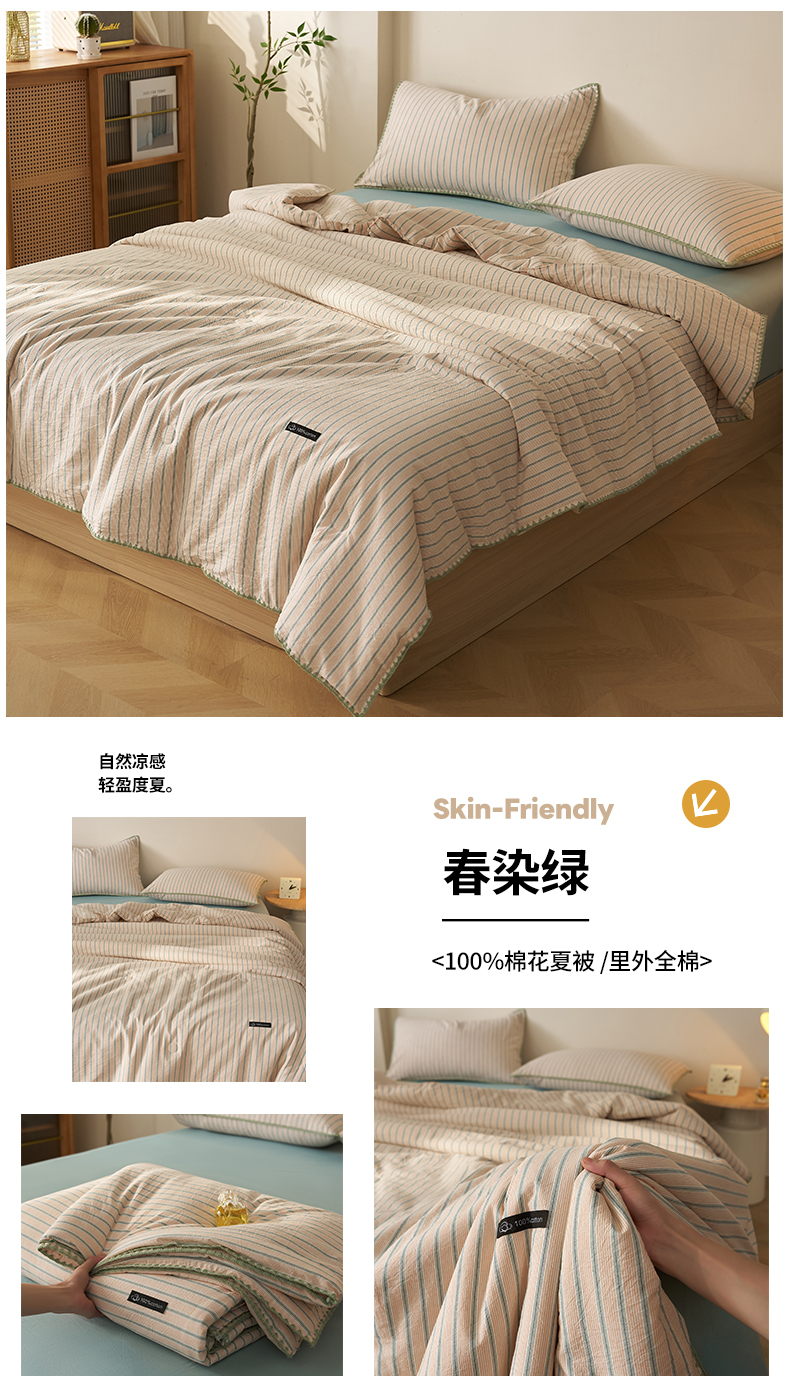 恒源祥 2026新款无印风色织全棉贝壳绣棉花夏被空调被/床单/枕套 透气舒适 多规格可选