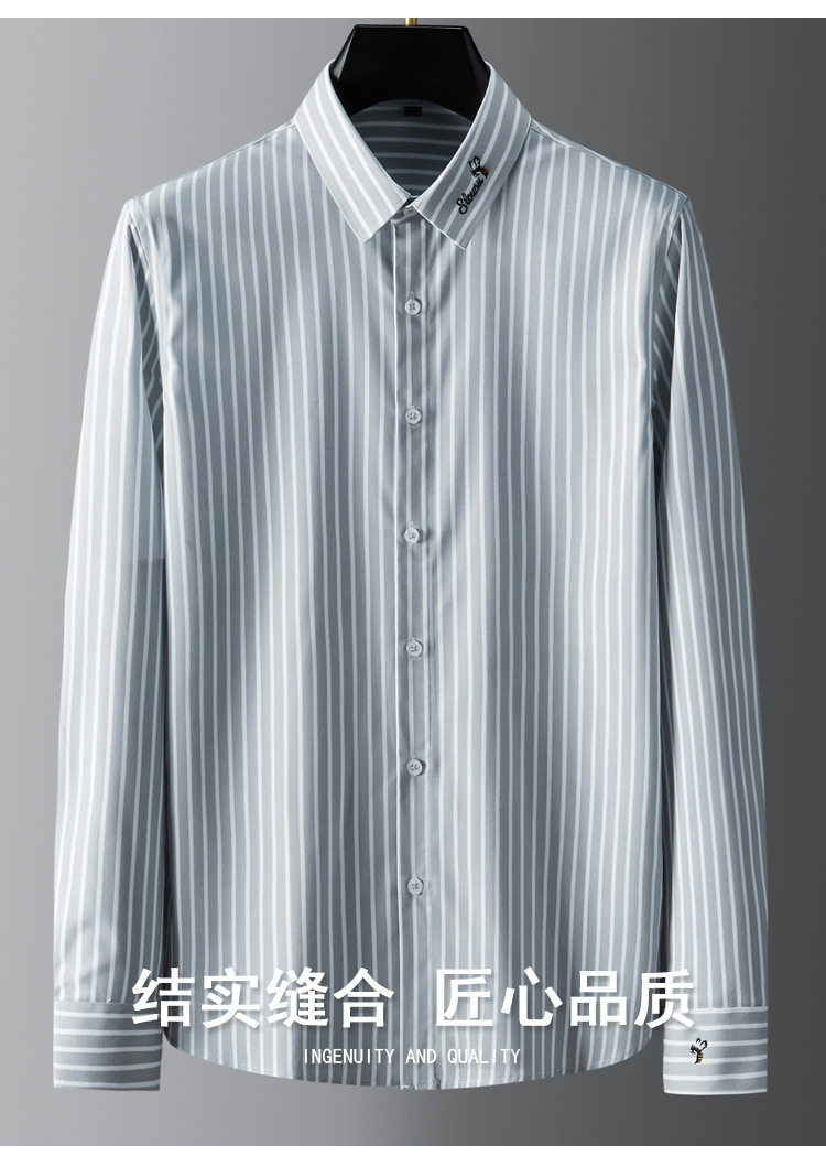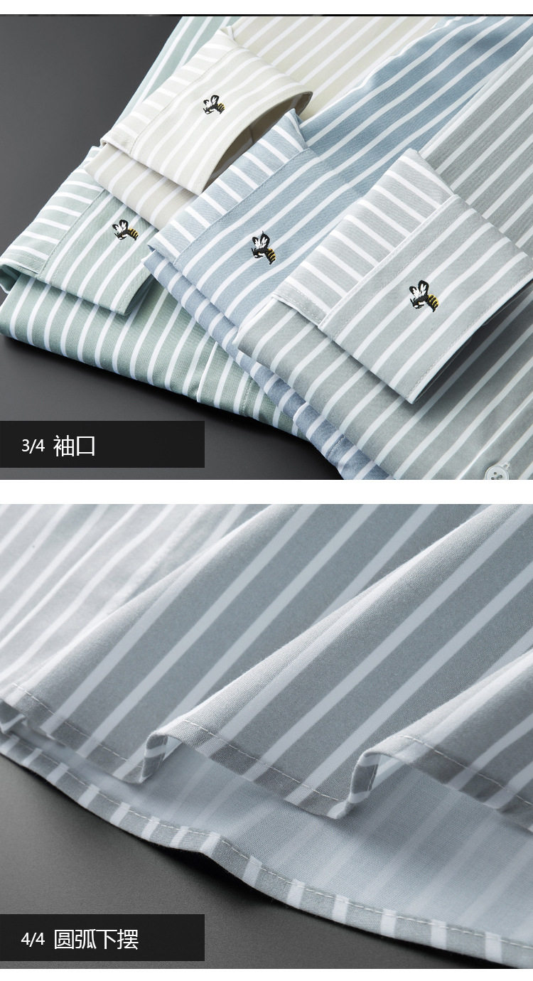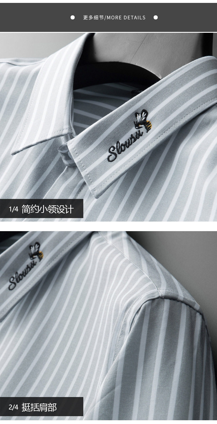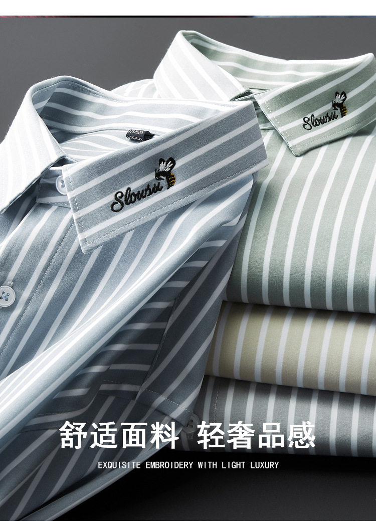 条纹衬衫男长袖潮流帅气韩版休闲款刺绣衬衣薄款夏款修身免烫休闲 YD-2036