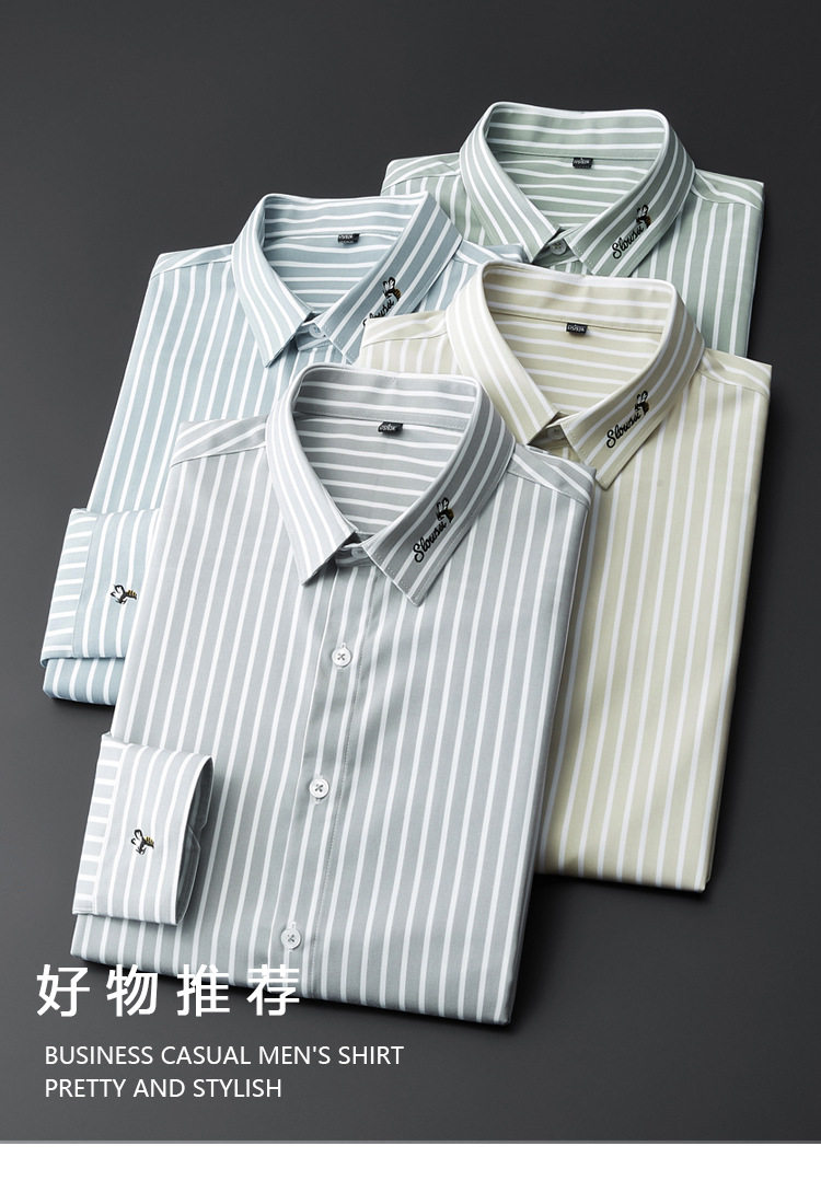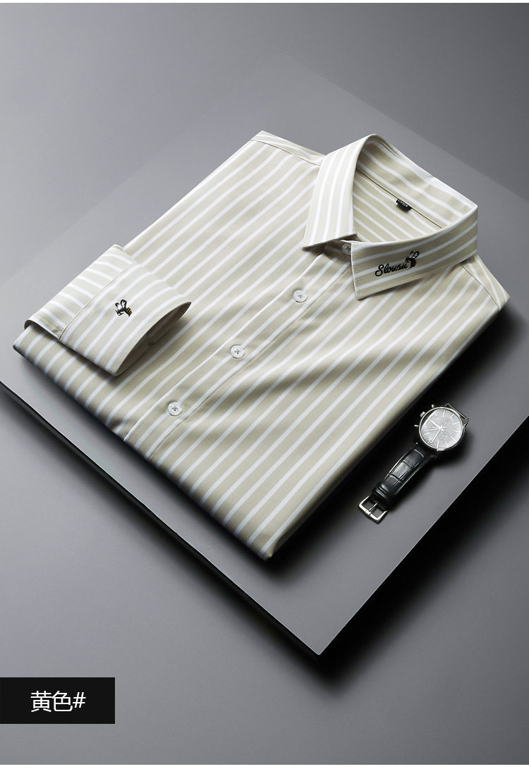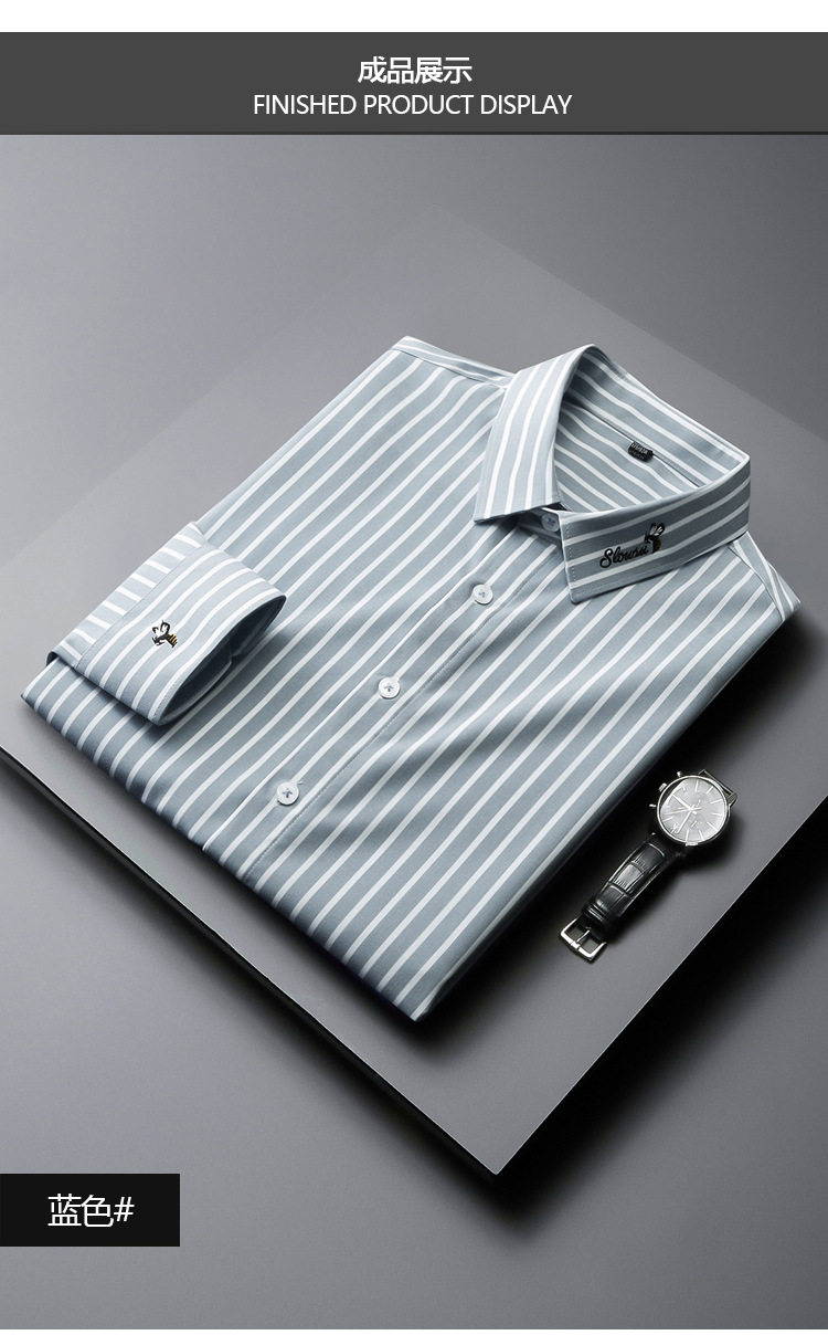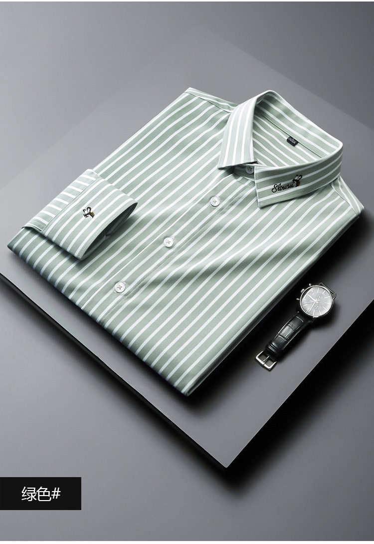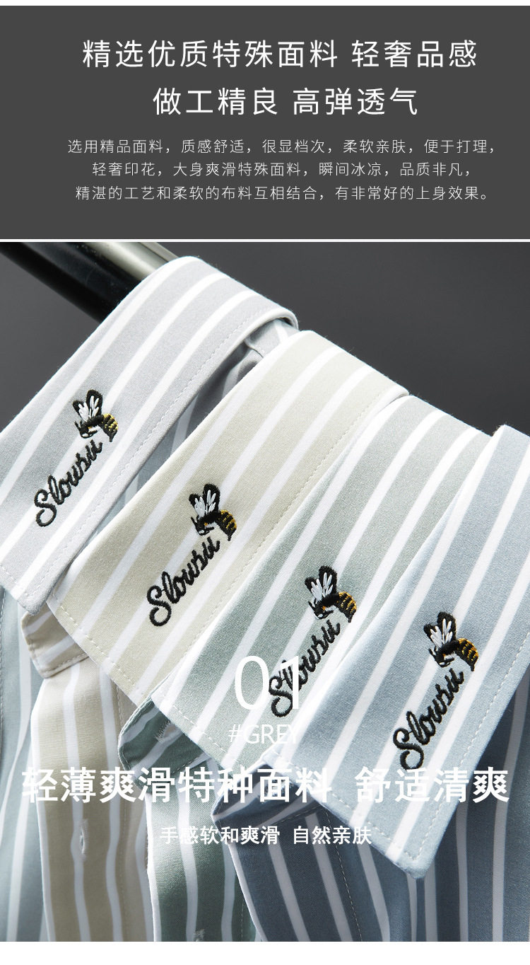 条纹衬衫男长袖潮流帅气韩版休闲款刺绣衬衣薄款夏款修身免烫休闲 YD-2036