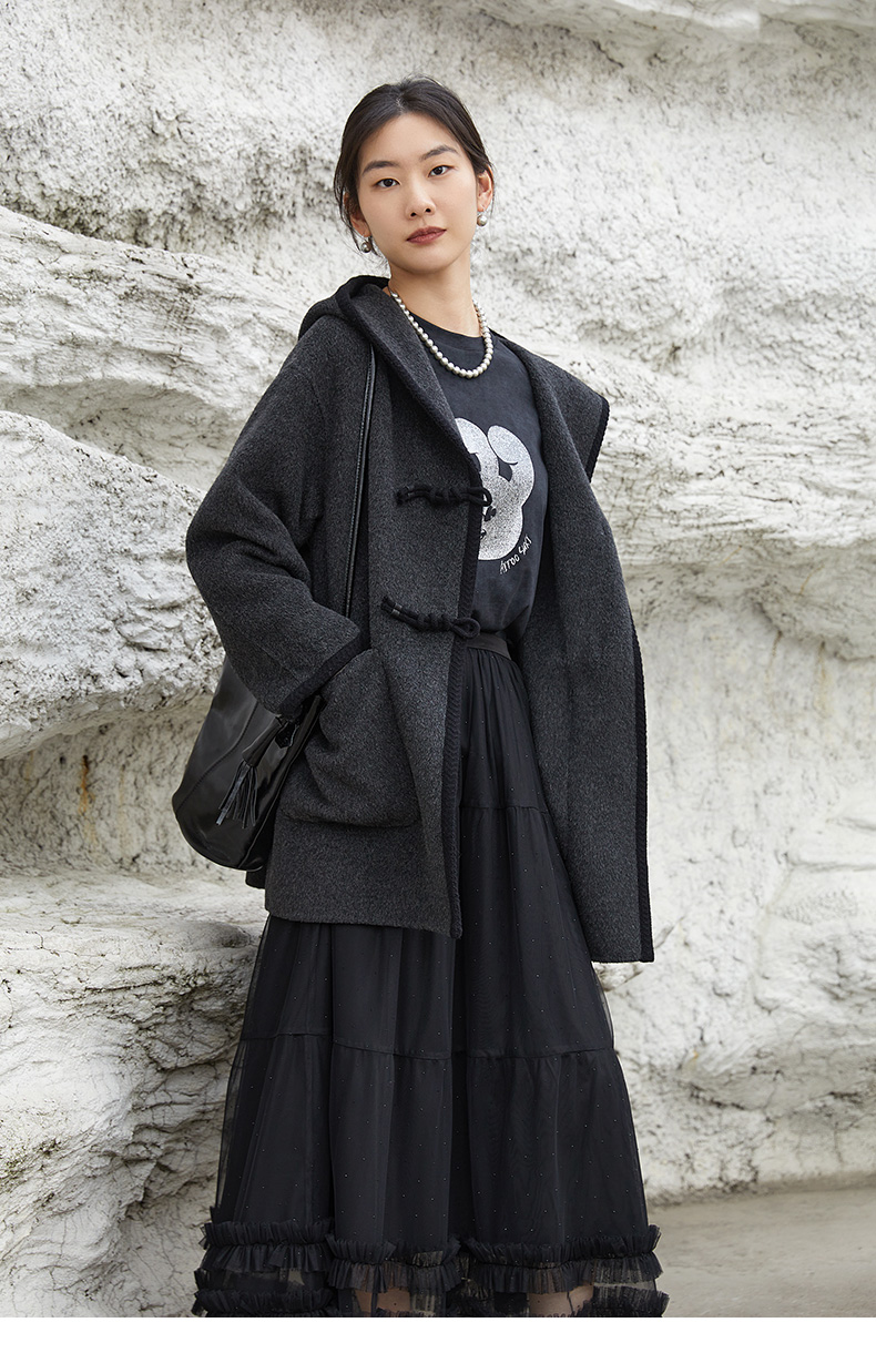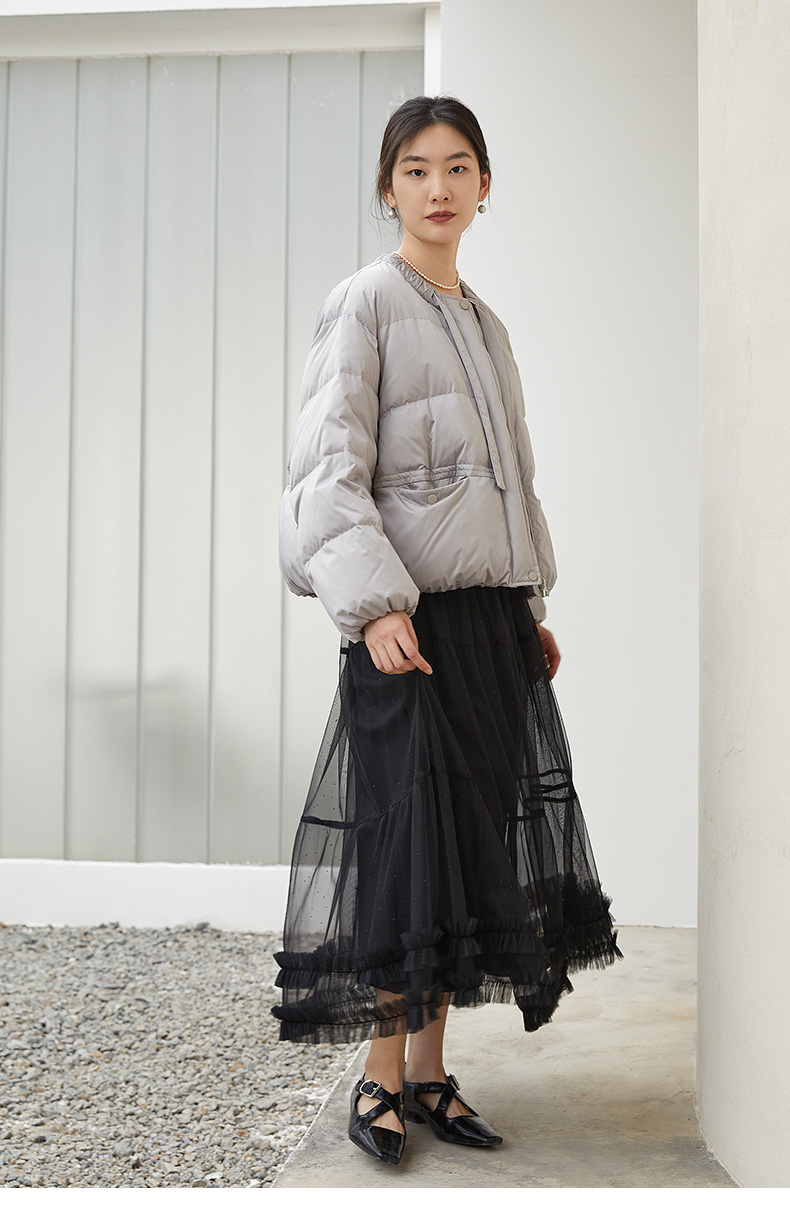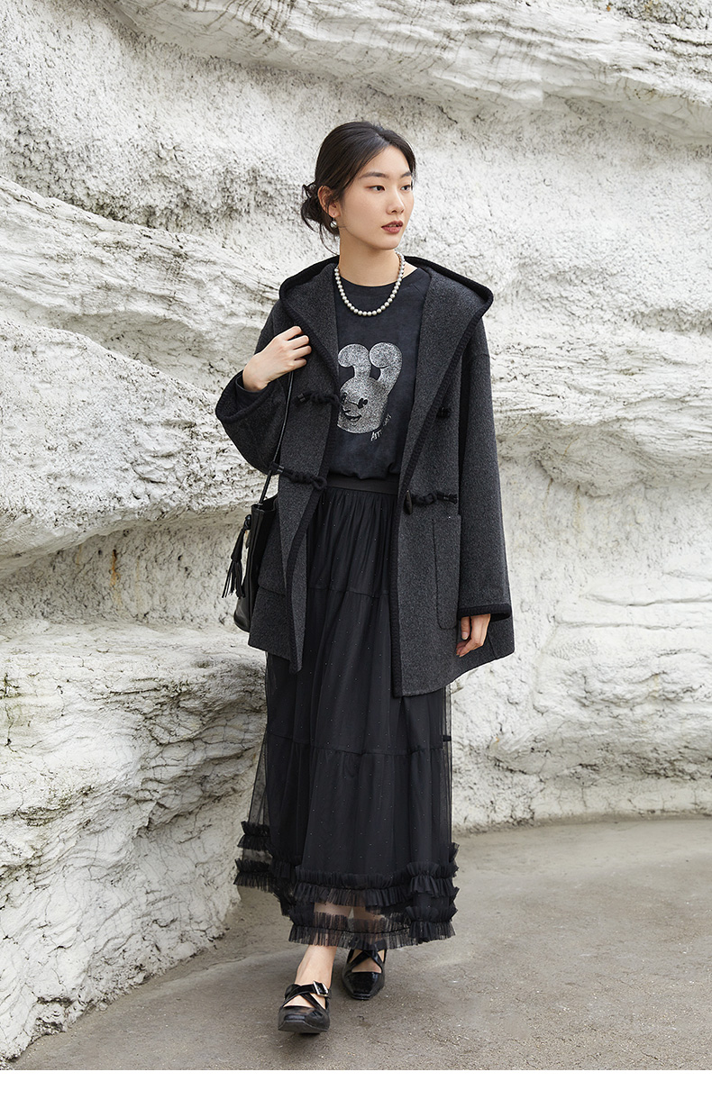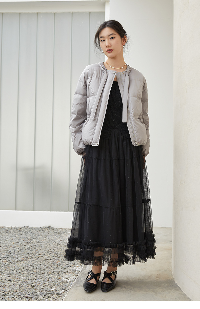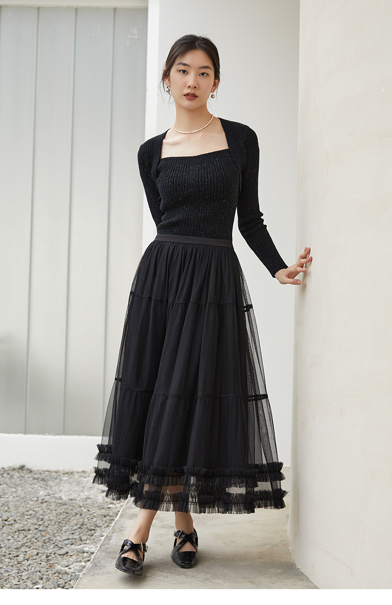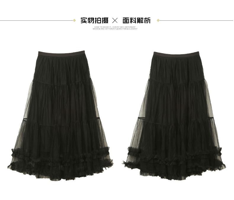 黑色亮片网纱蛋糕裙 高腰多层荷叶边中长裙 秋冬仙气显瘦百搭 a 字半身裙