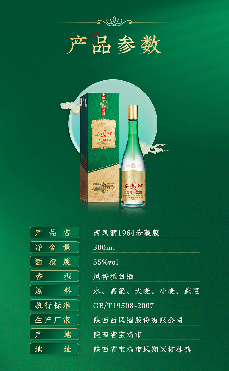 【酒厂直营】西凤酒 55度1964珍藏版 新绿瓶 单瓶500mL