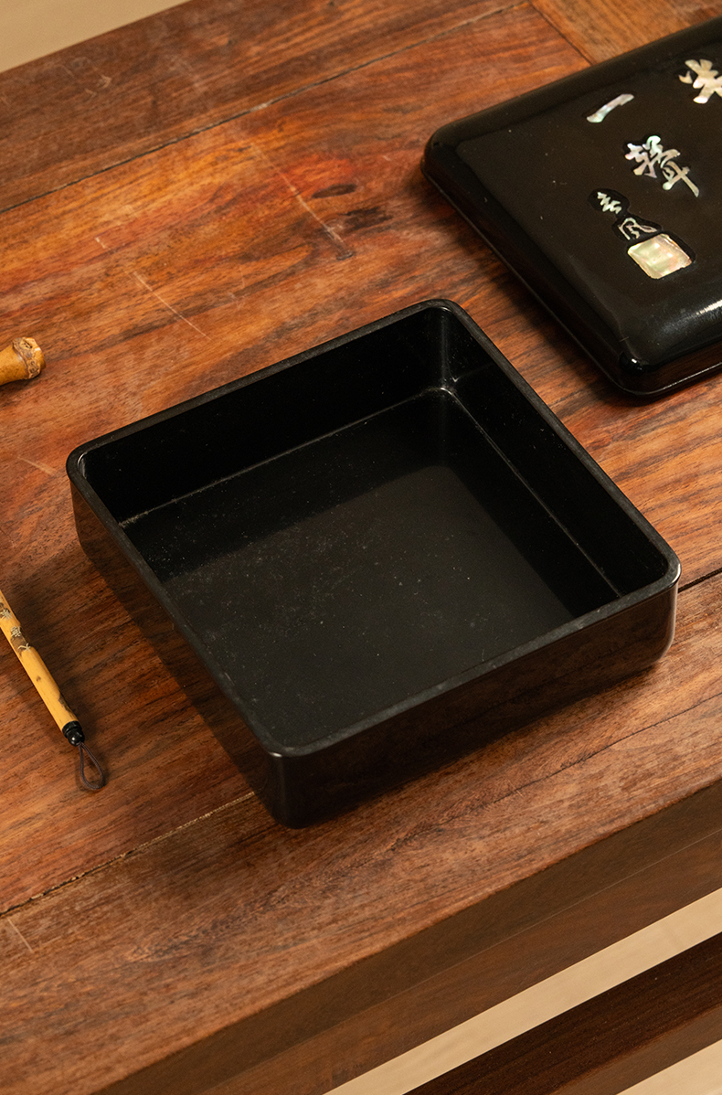 清代 红木镶瘿木嵌寿山石山水人物插屏