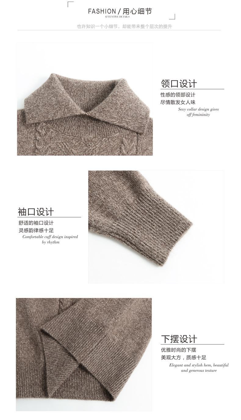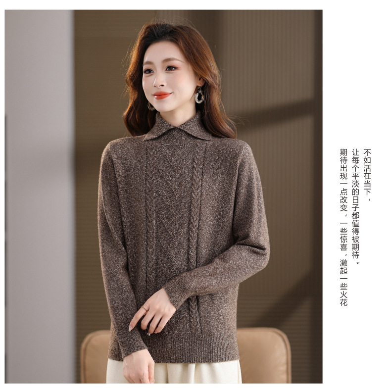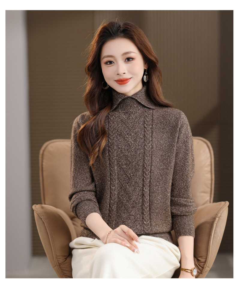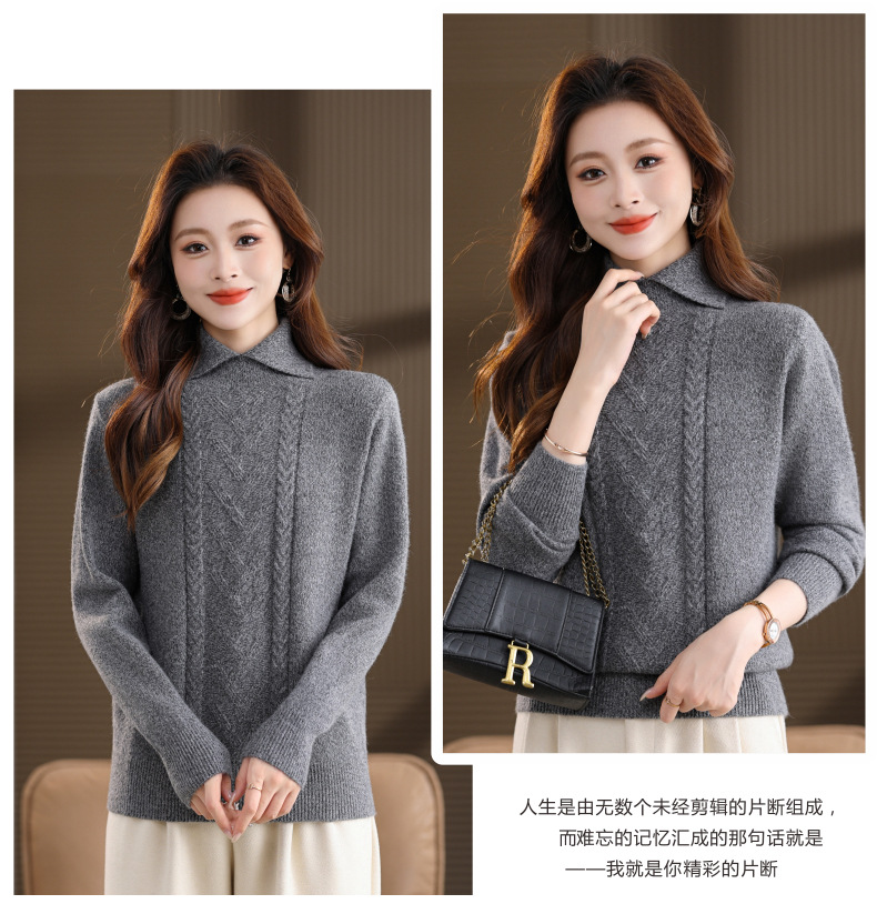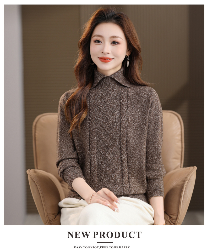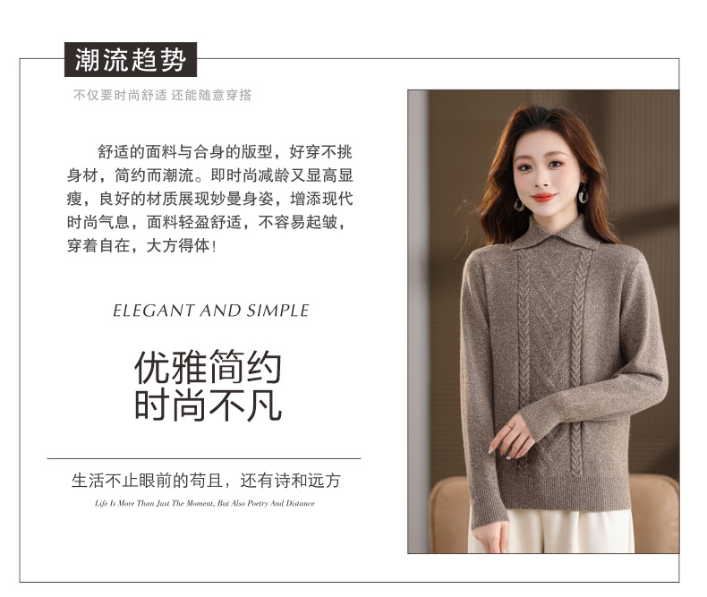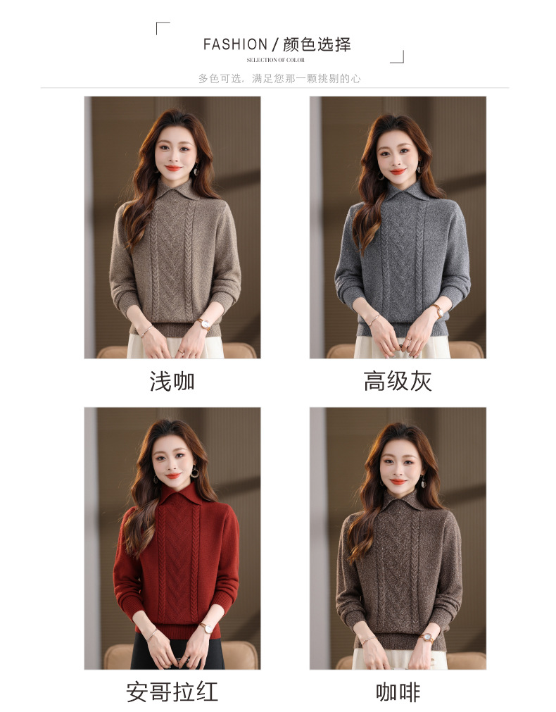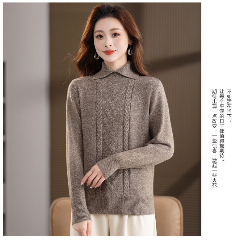 CC翻领短款毛衣女秋冬卡其色麻花针织衫复古风宽松显瘦百搭打底毛衣