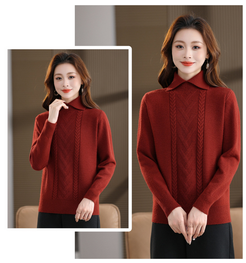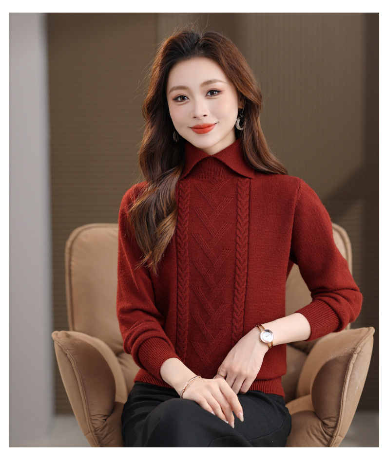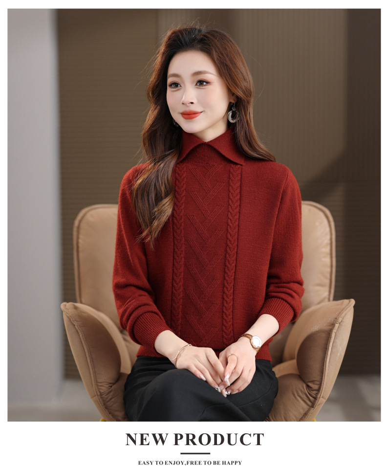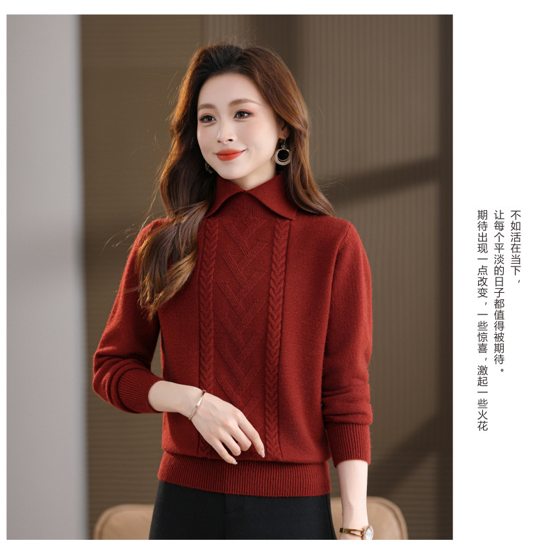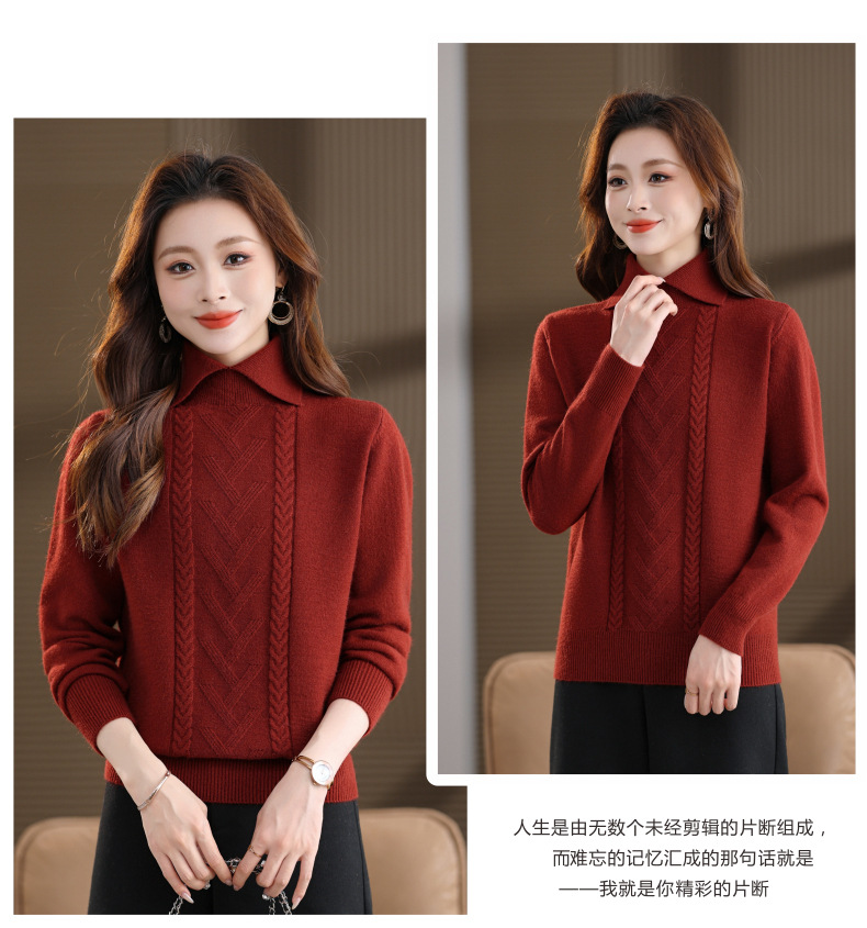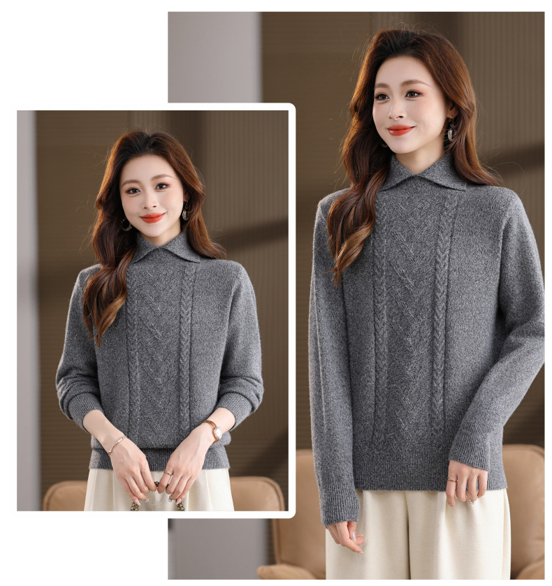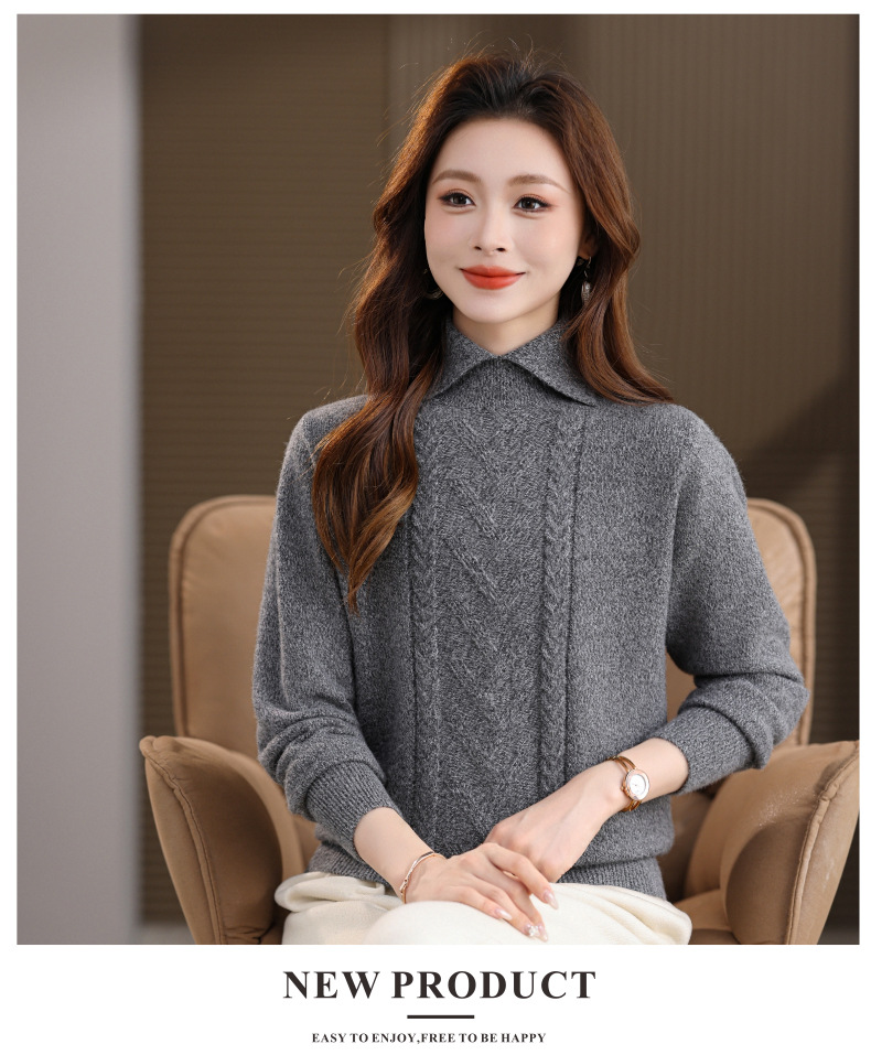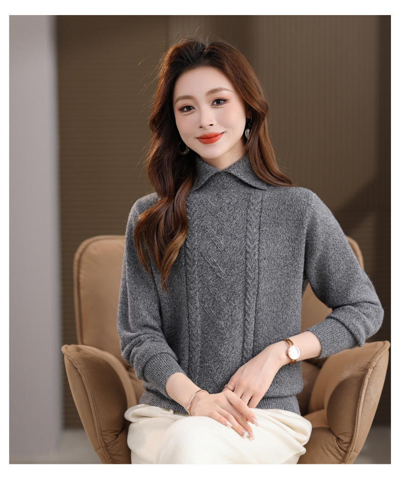 CC翻领短款毛衣女秋冬卡其色麻花针织衫复古风宽松显瘦百搭打底毛衣