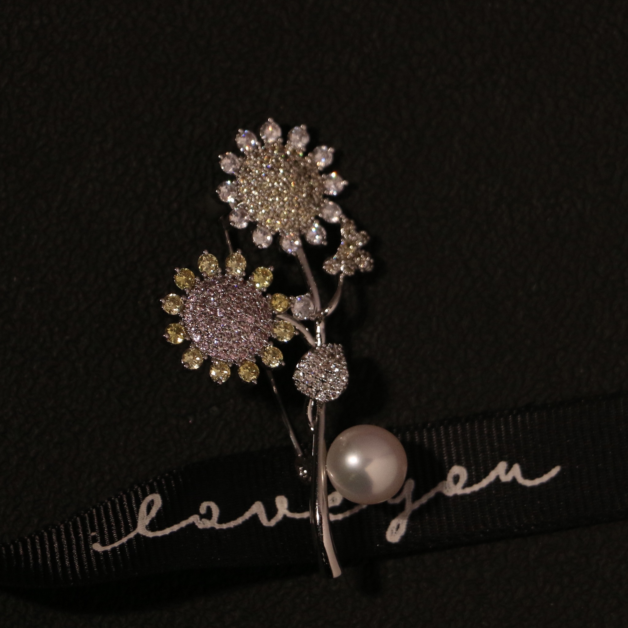 甄珠贝 满钻向日葵胸针 天然淡水9-10mm