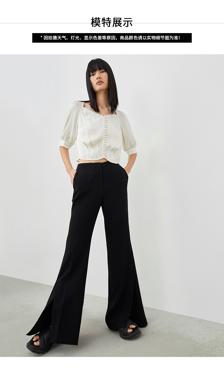 EITIE爱特爱女装夏季V领挂脖镂空时尚喇叭袖雪纺衫小上衣5913610