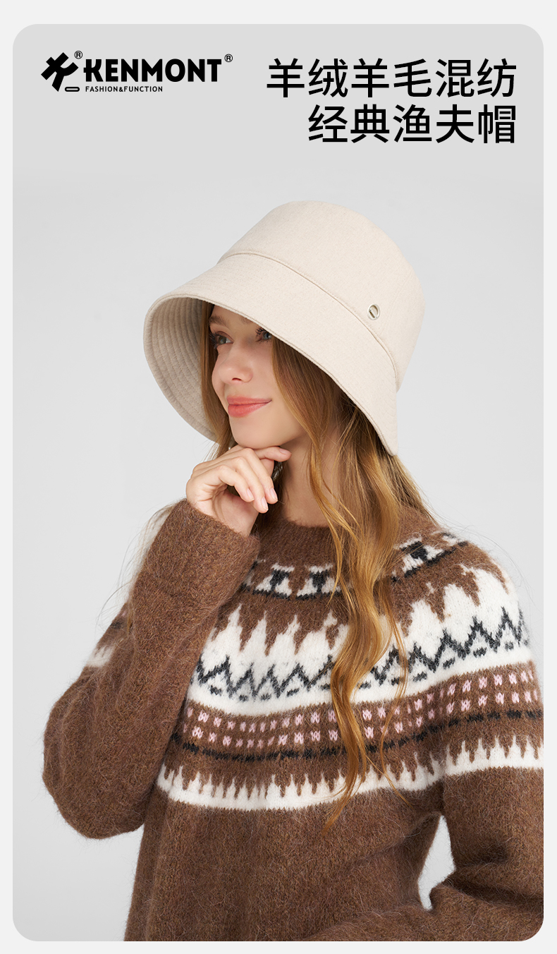 卡蒙羊绒羊毛混纺经典渔夫帽KM-5296 商品图10