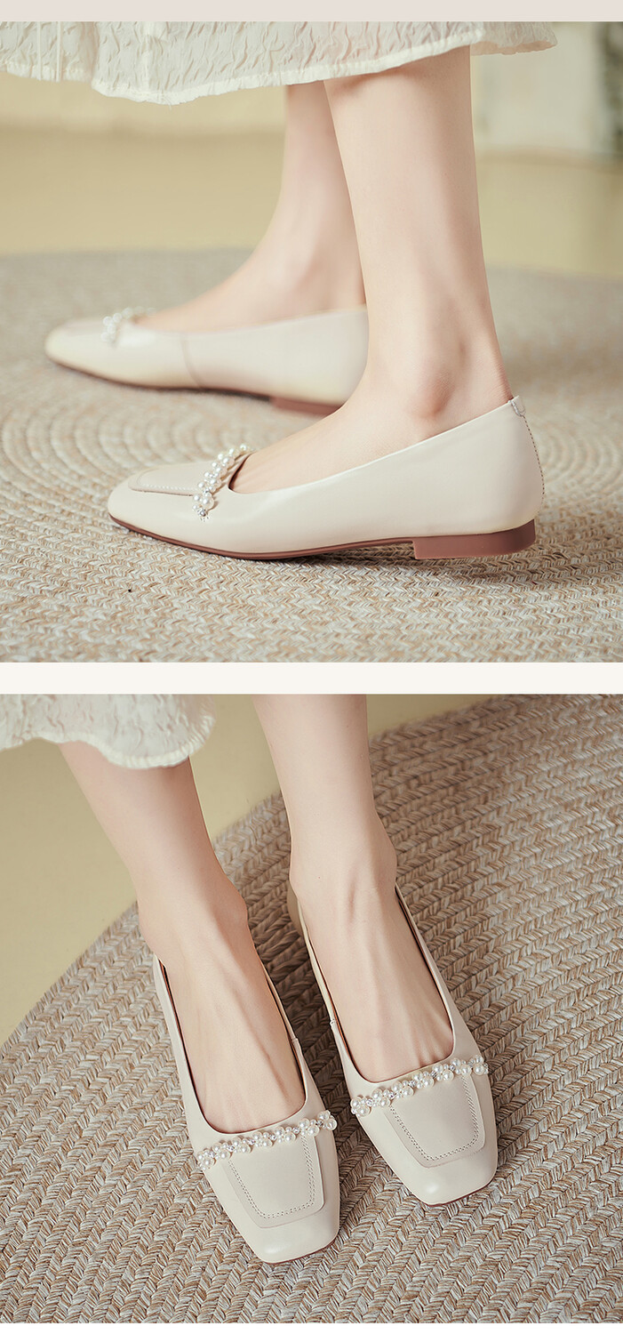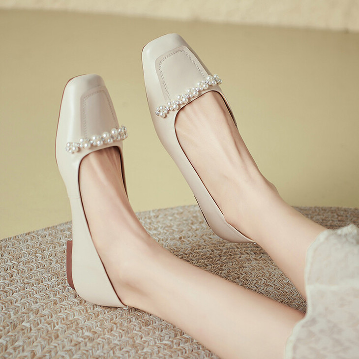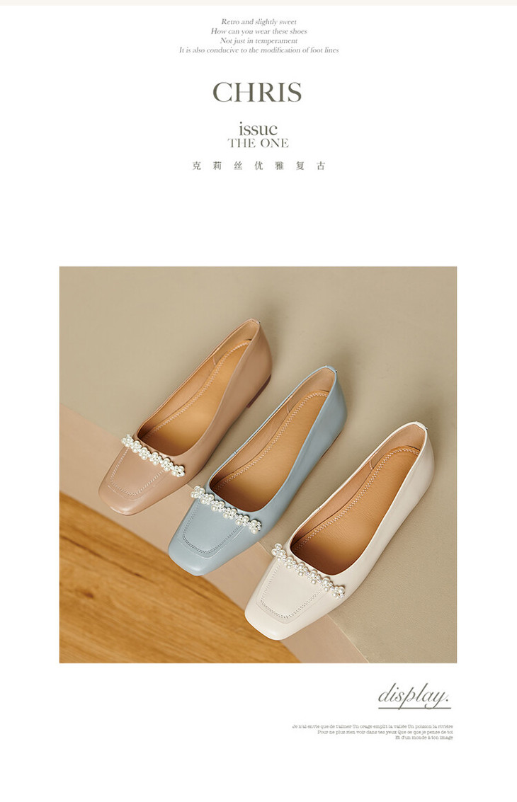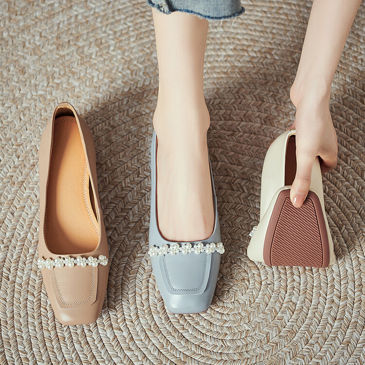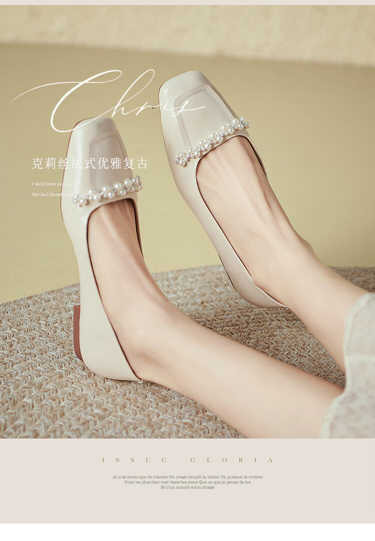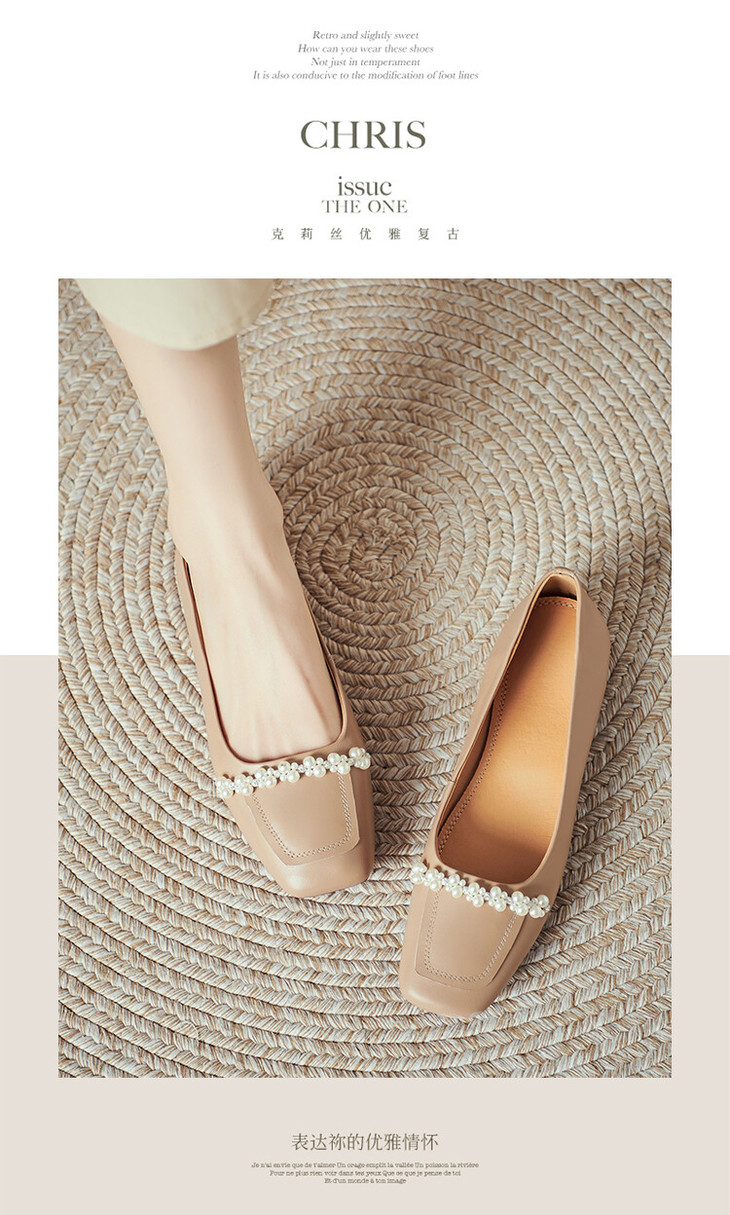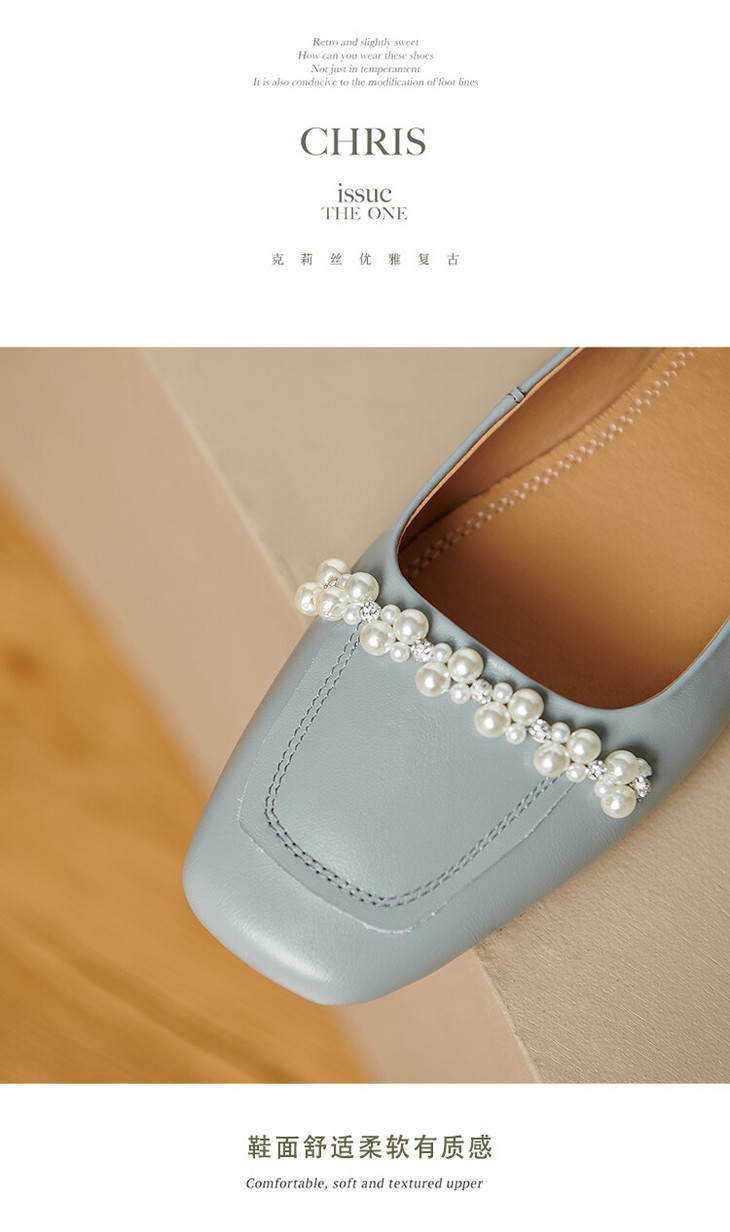 【预售5天】休闲方头粗跟低跟鞋,串珠舒适柔软奶奶鞋单鞋YS&YSD4142