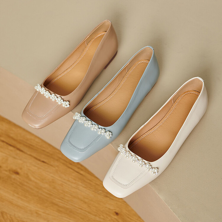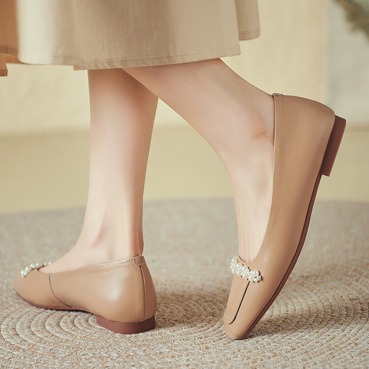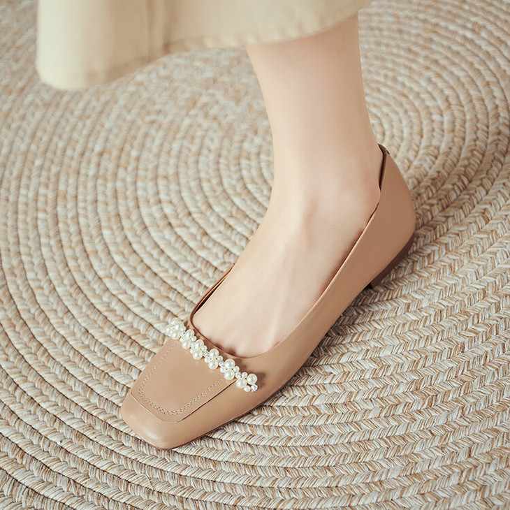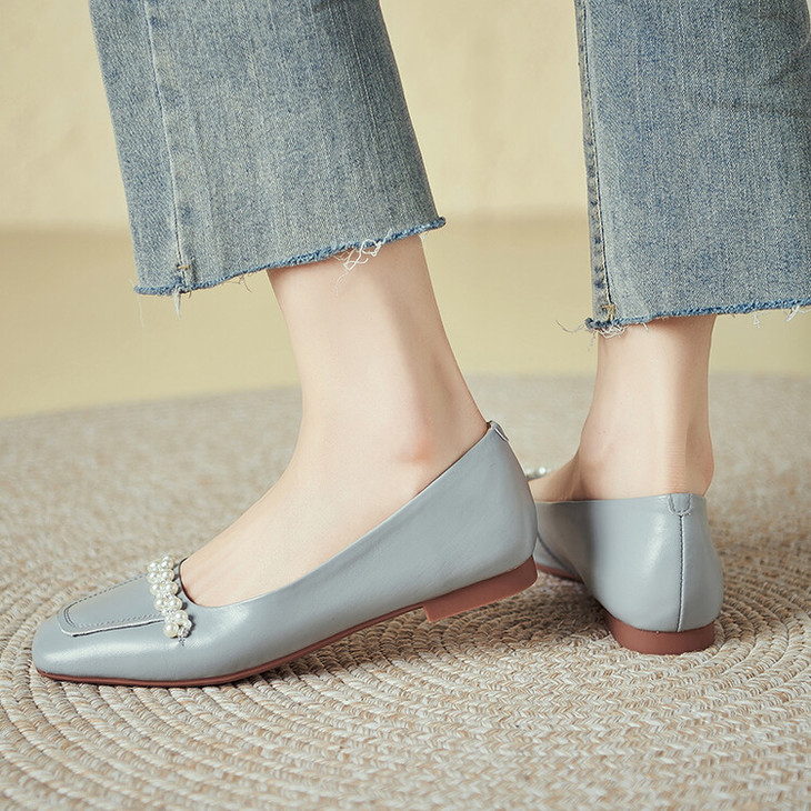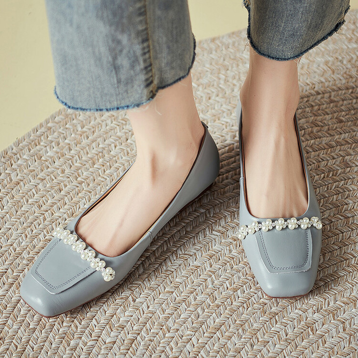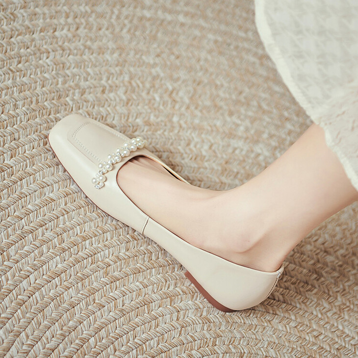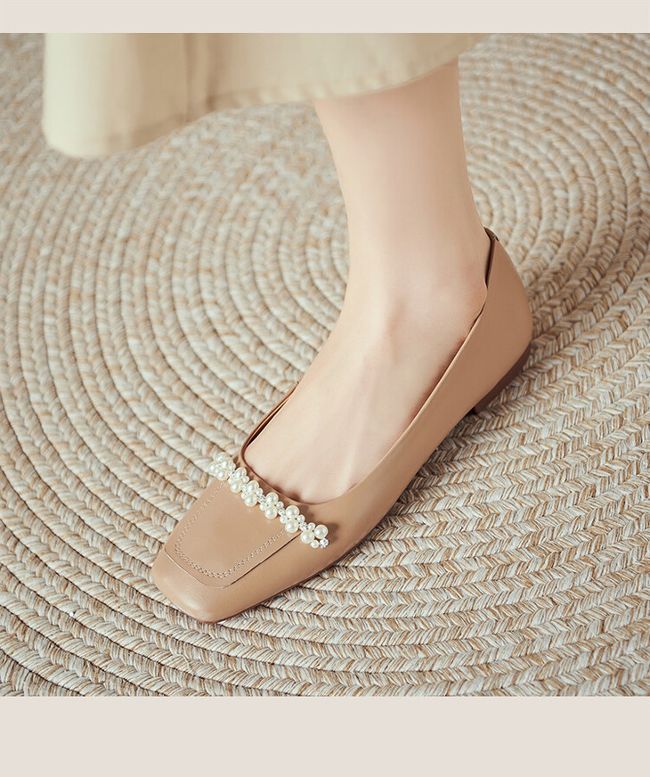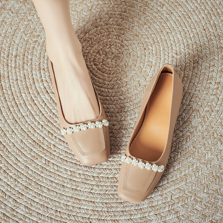 【预售5天】休闲方头粗跟低跟鞋,串珠舒适柔软奶奶鞋单鞋YS&YSD4142