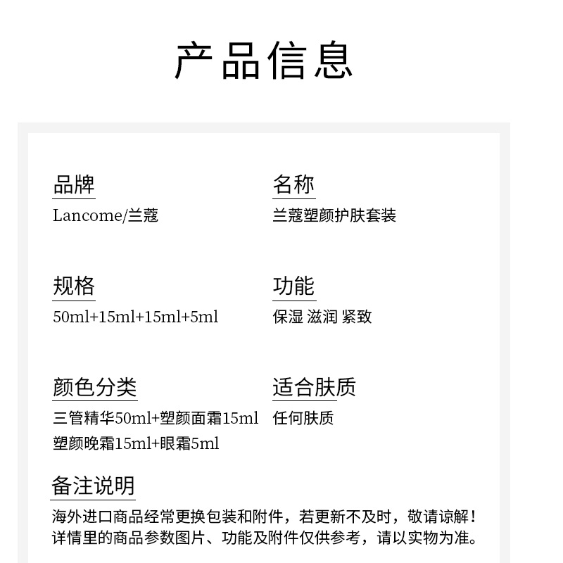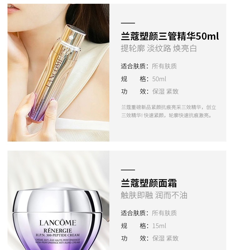 【保税仓】兰蔻(Lancome)三管精华四件套(三管精华50ml+眼霜5ml+百肽霜15ml+晚霜15ml)(效期27年)