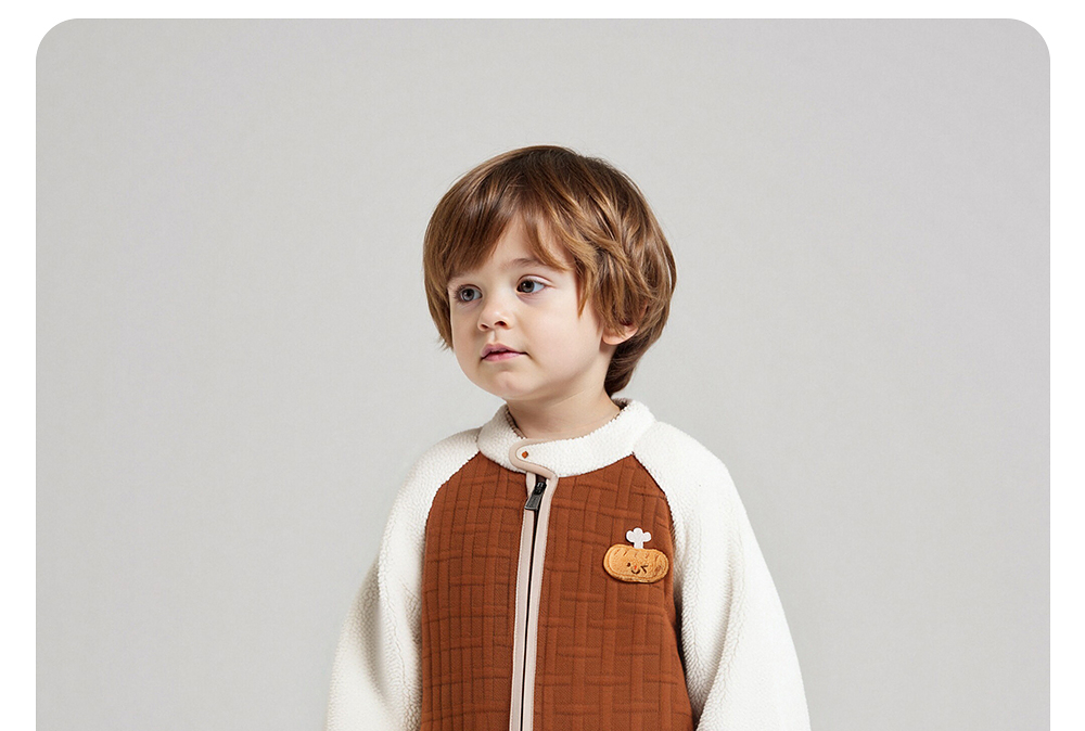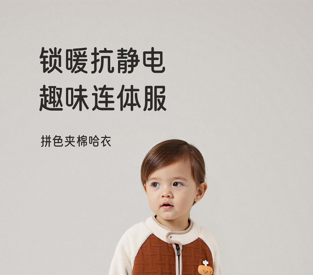 【商场同款】英氏婴儿衣服秋冬羊羔绒男童连体衣保暖撞色男宝衣服