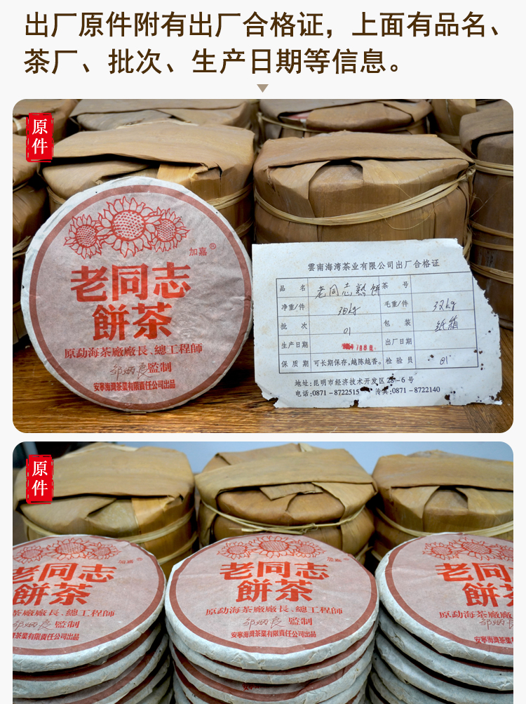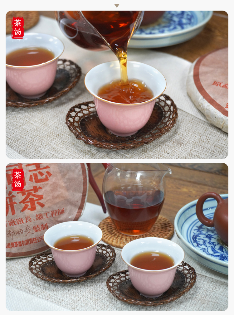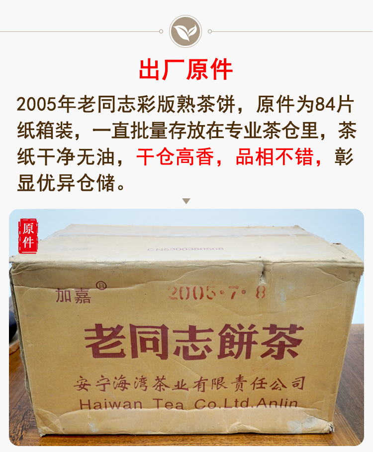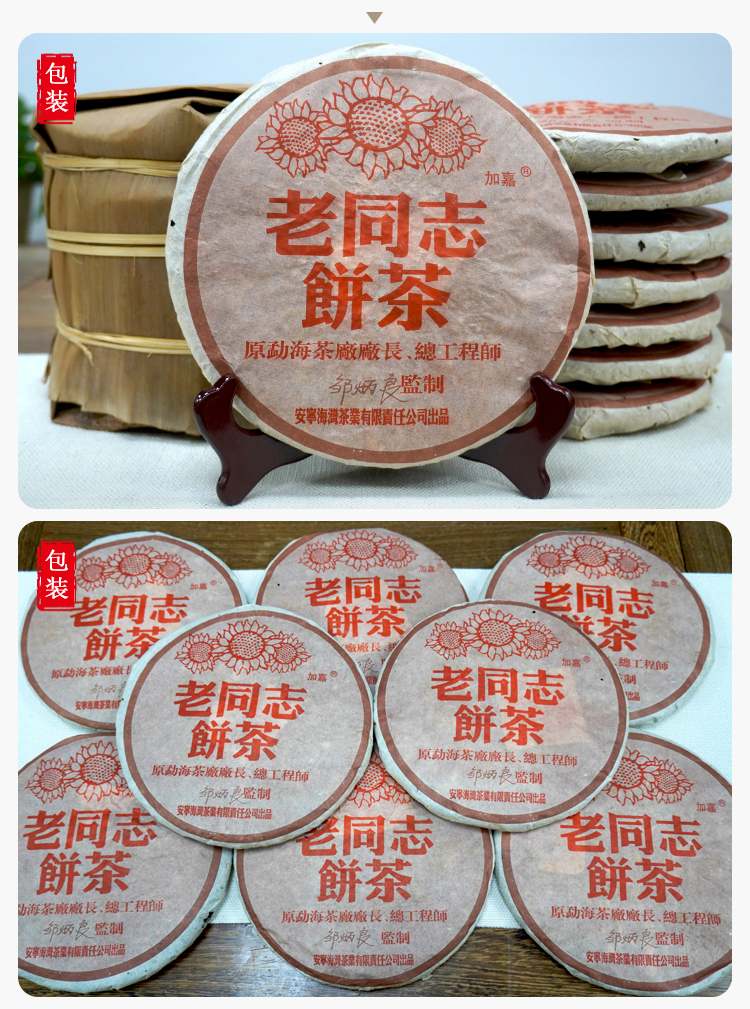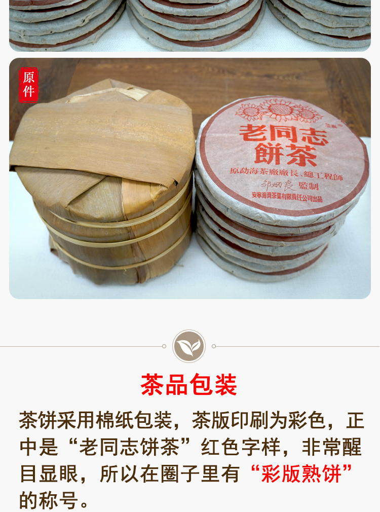 2005年老同志彩版普洱茶熟茶饼 稠糯细滑甜润 经典老同志老熟茶标杆 干仓真品茶香好品相