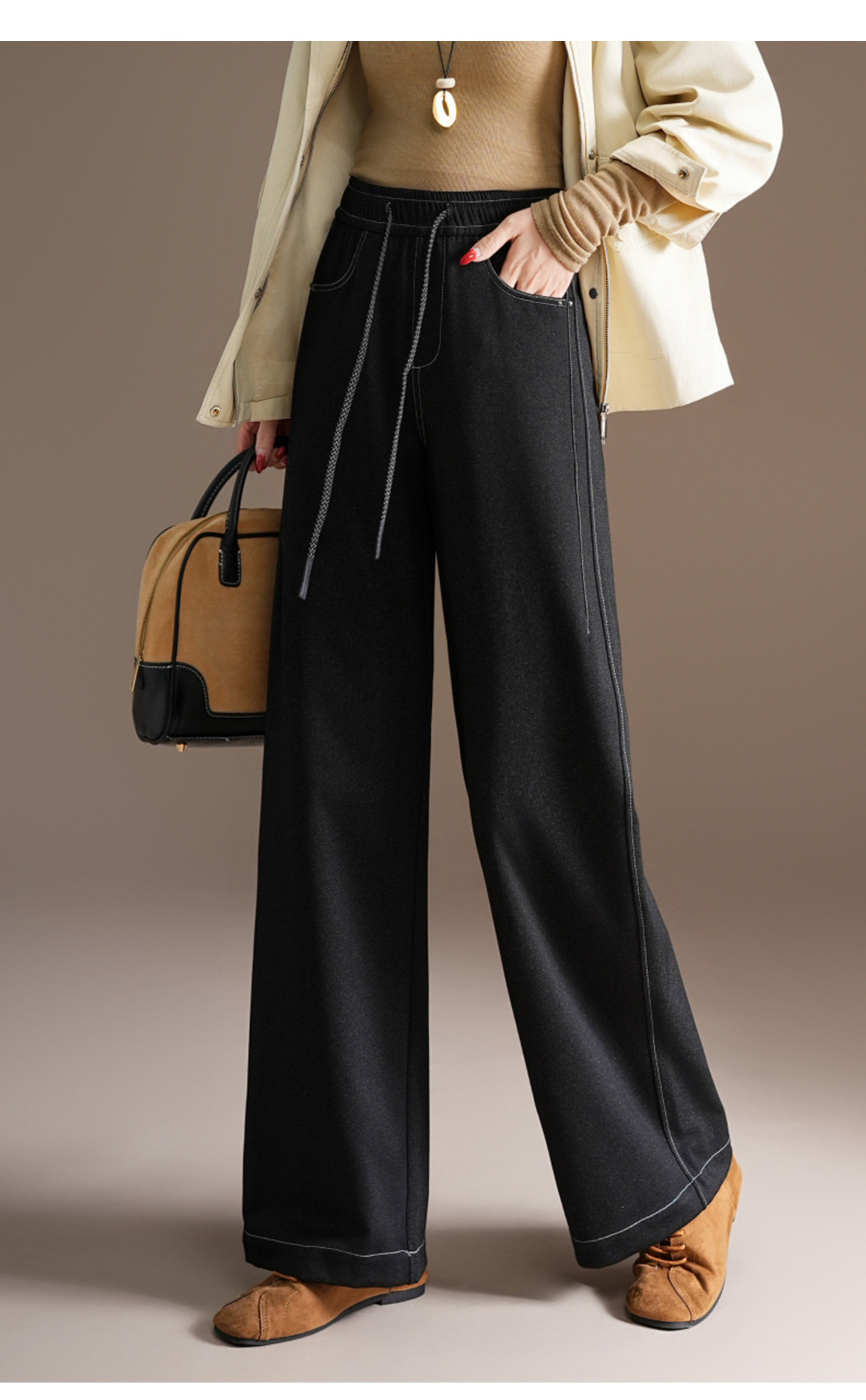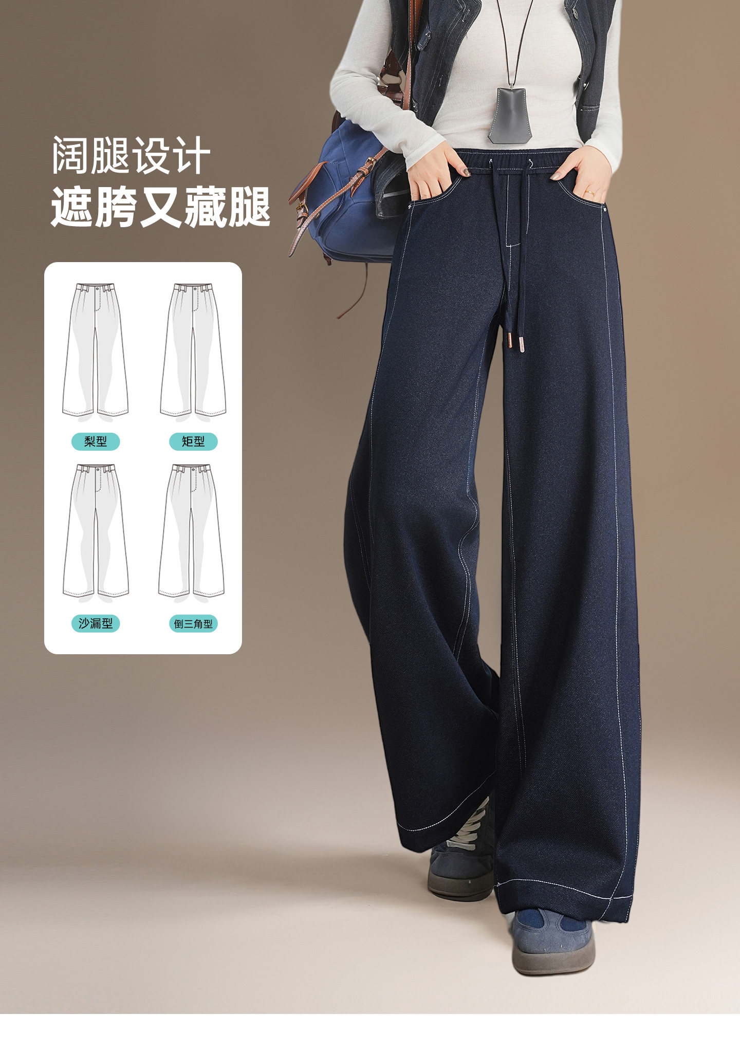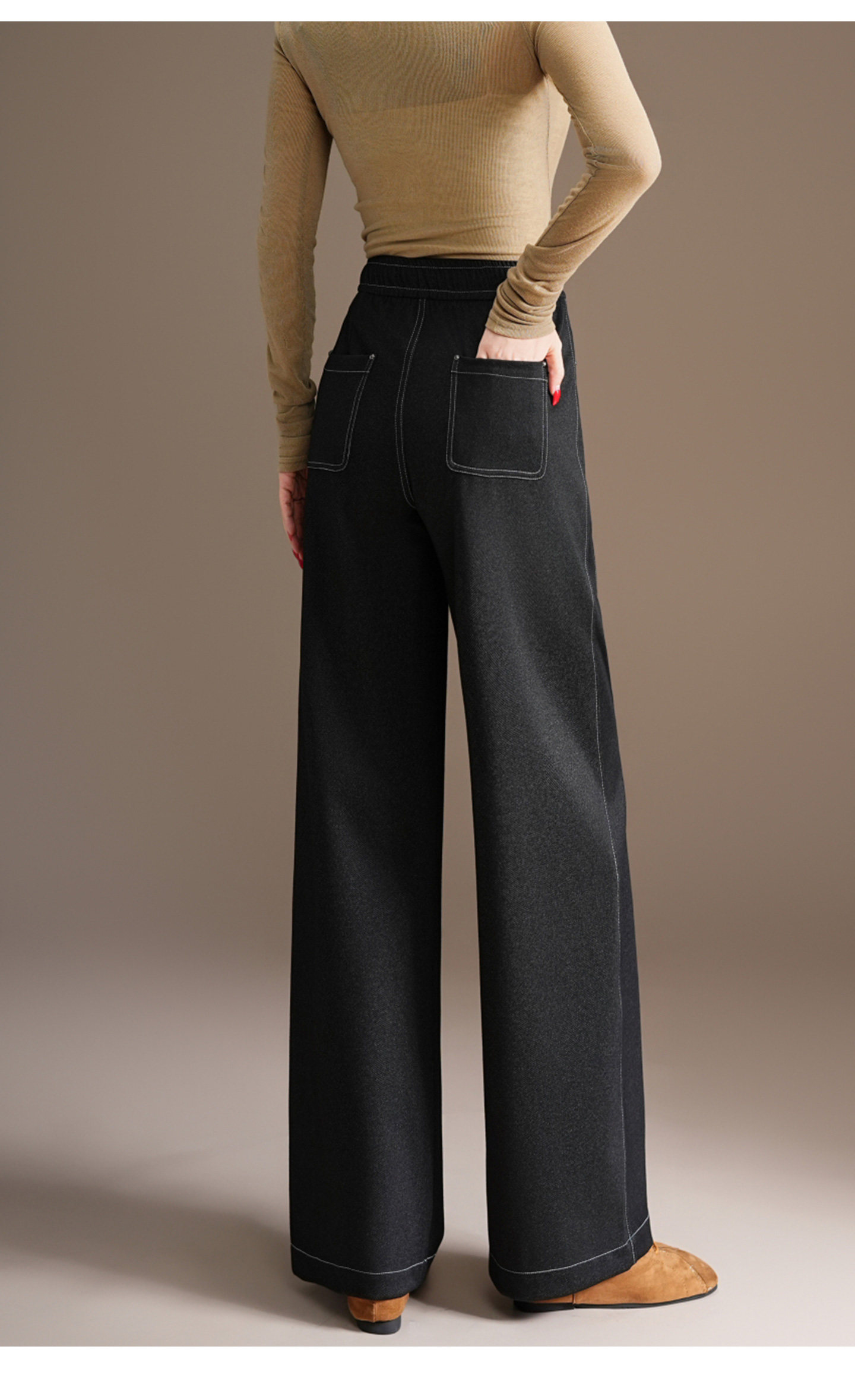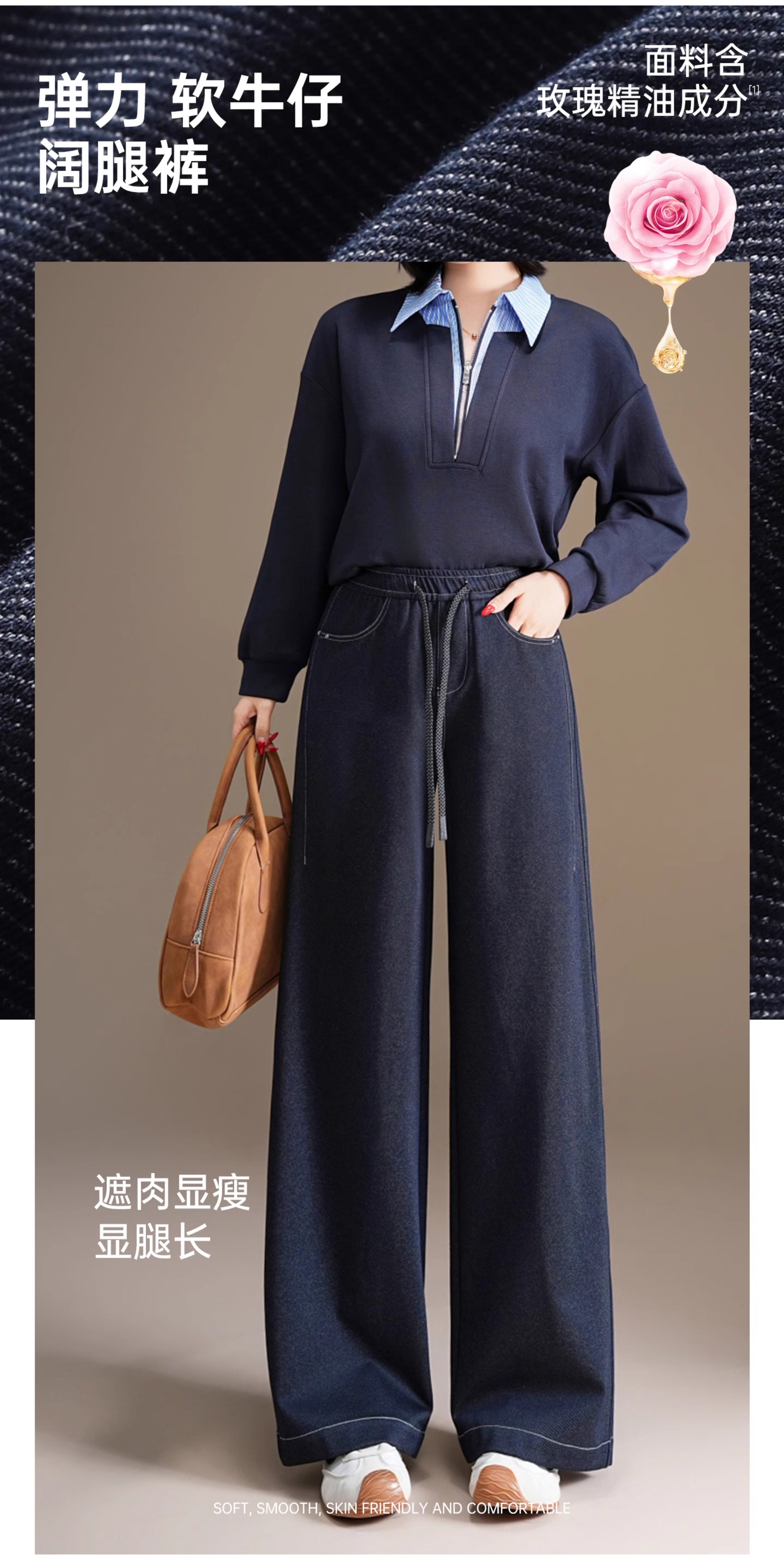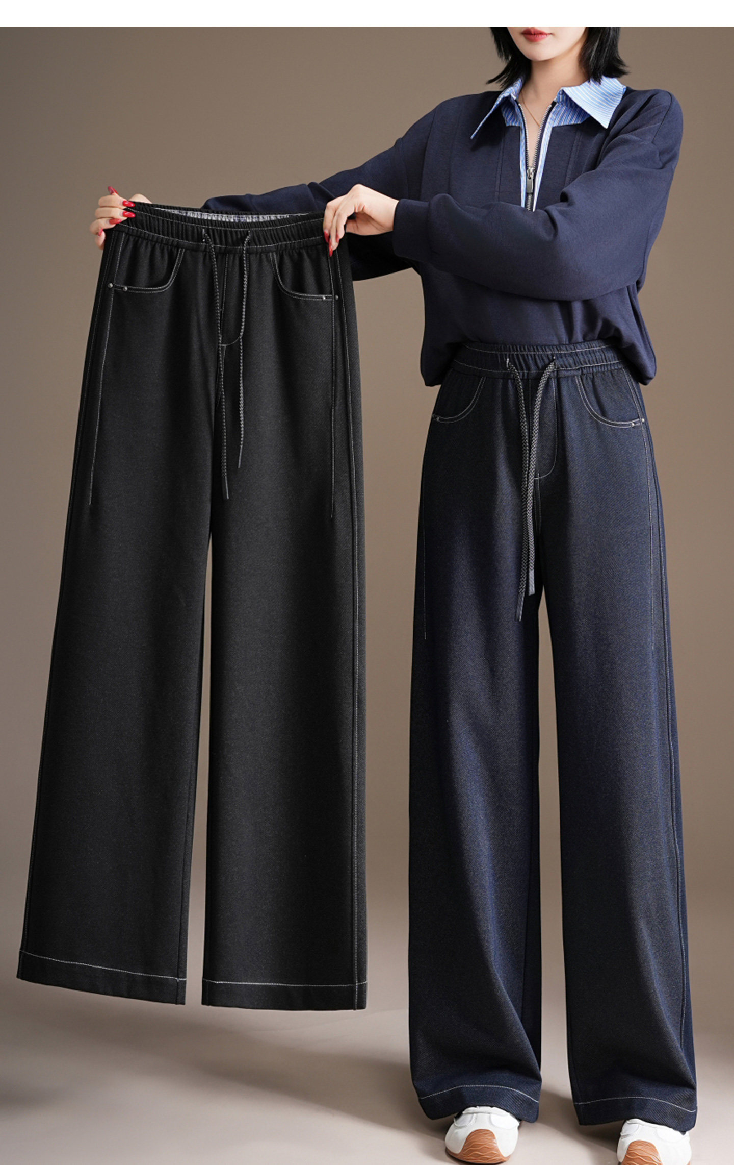 五只白鹅—2025秋季新款丹宁蓝高腰黑色窄版直筒阔腿裤2590