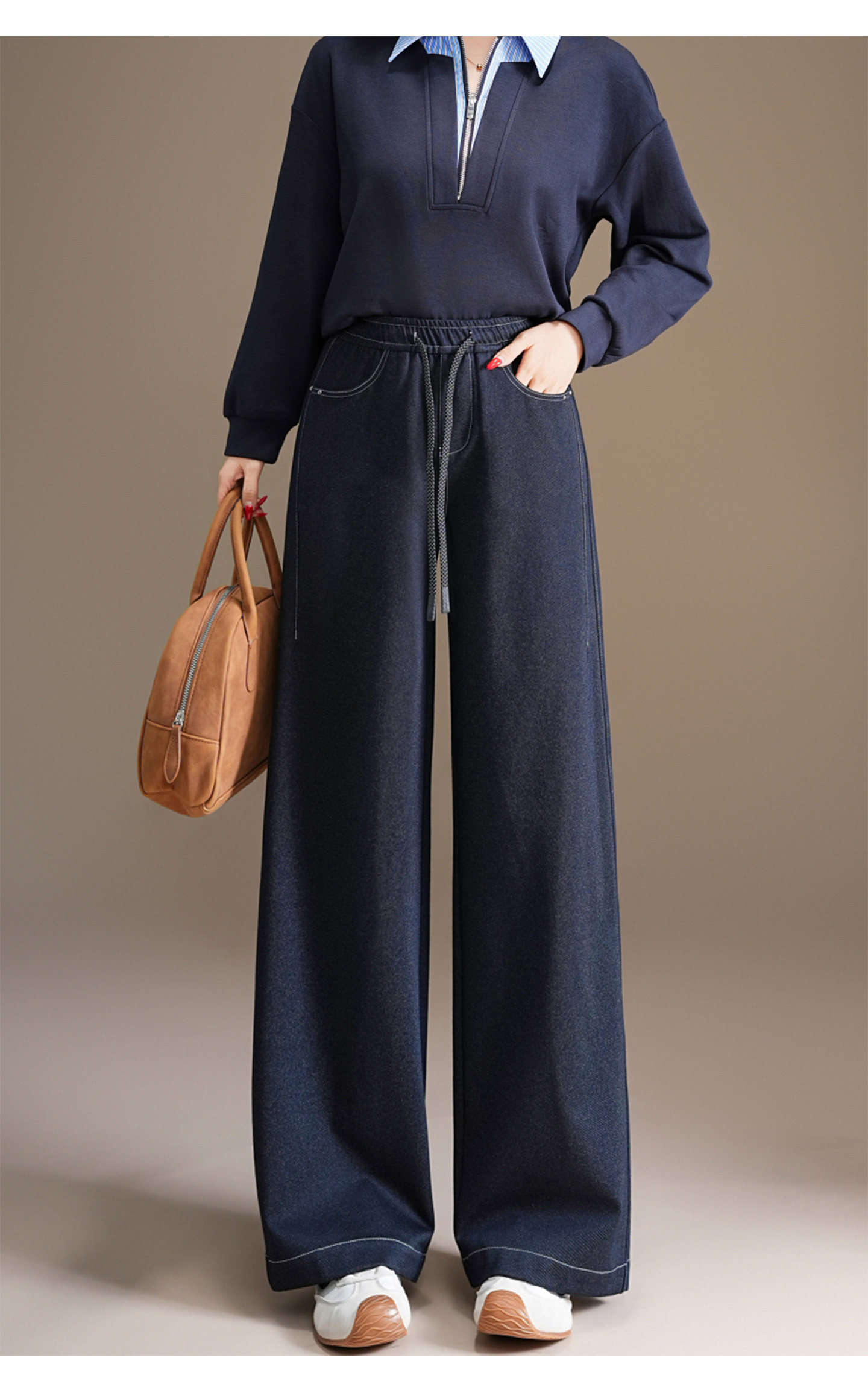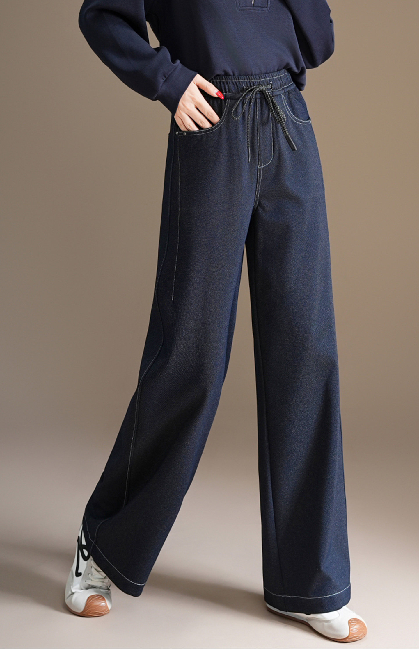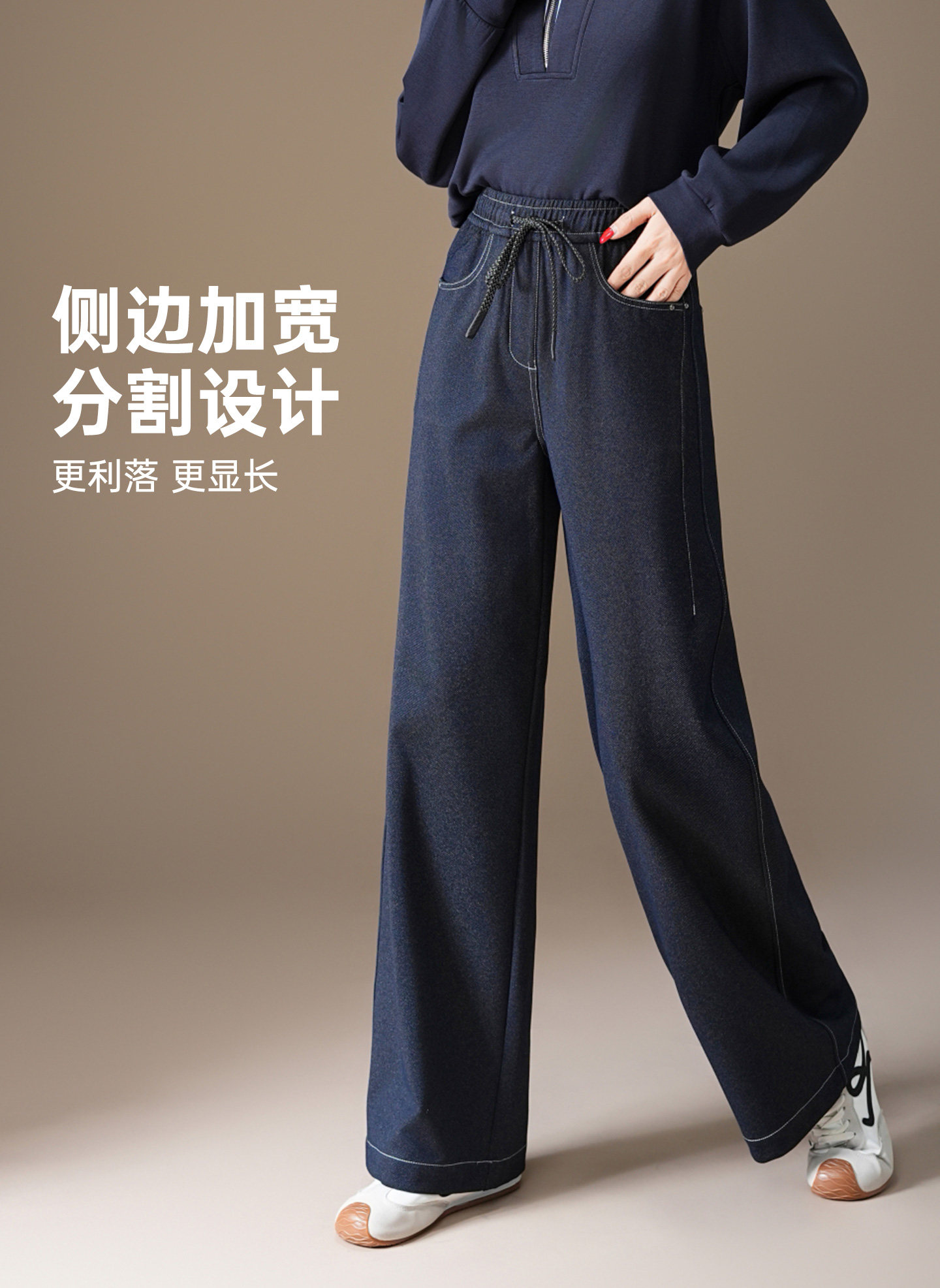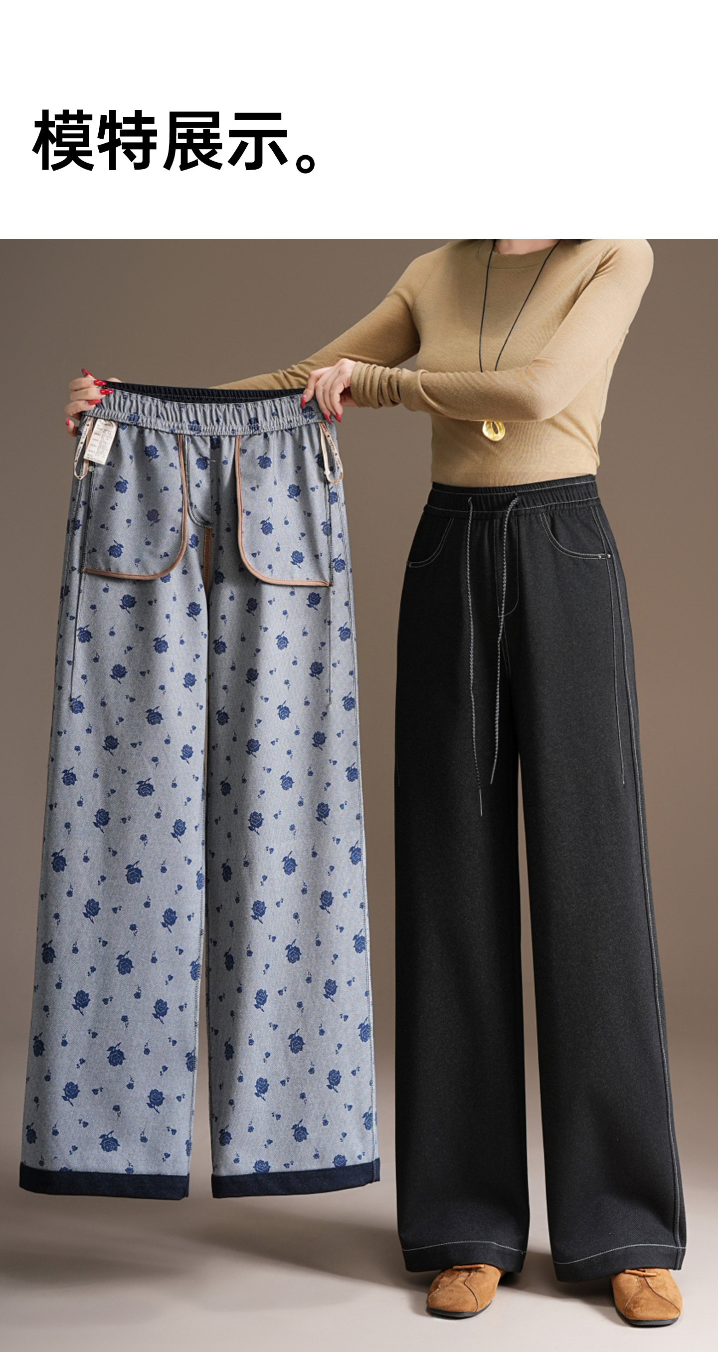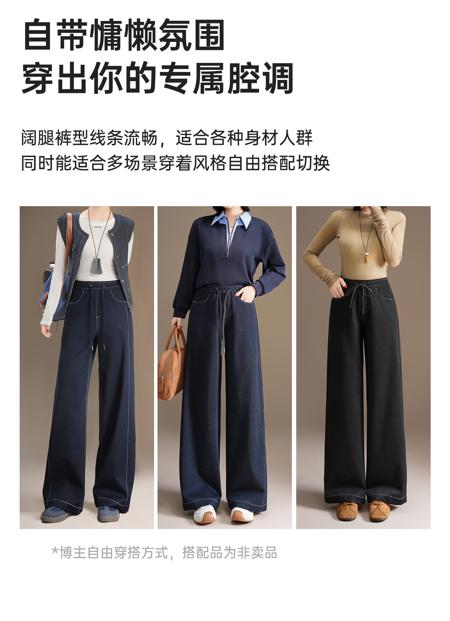 五只白鹅—2025秋季新款丹宁蓝高腰黑色窄版直筒阔腿裤2590