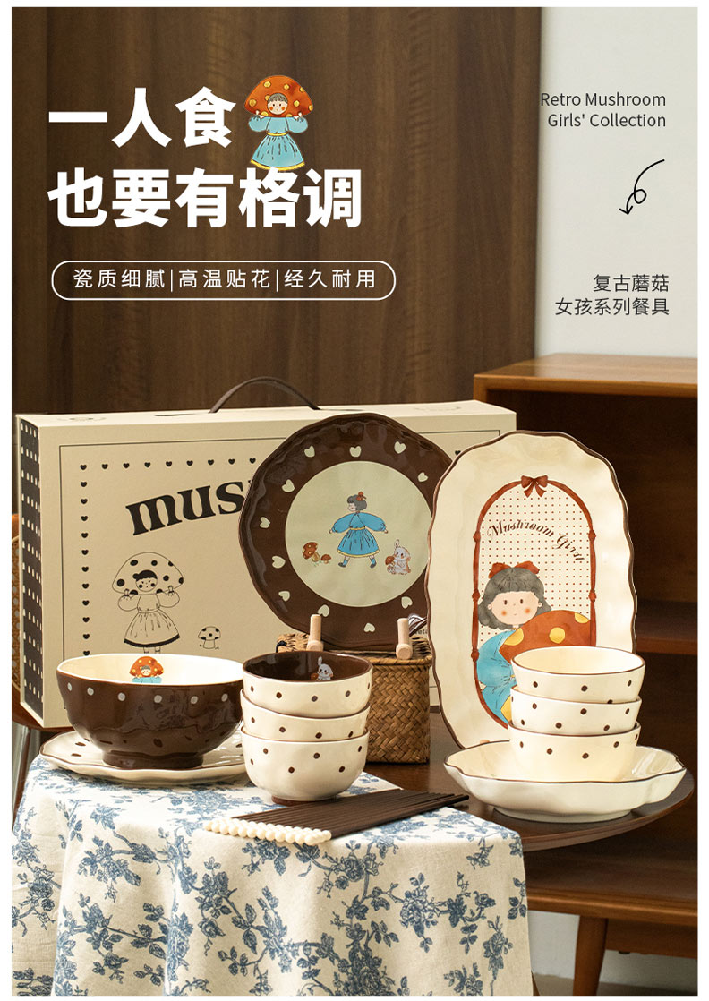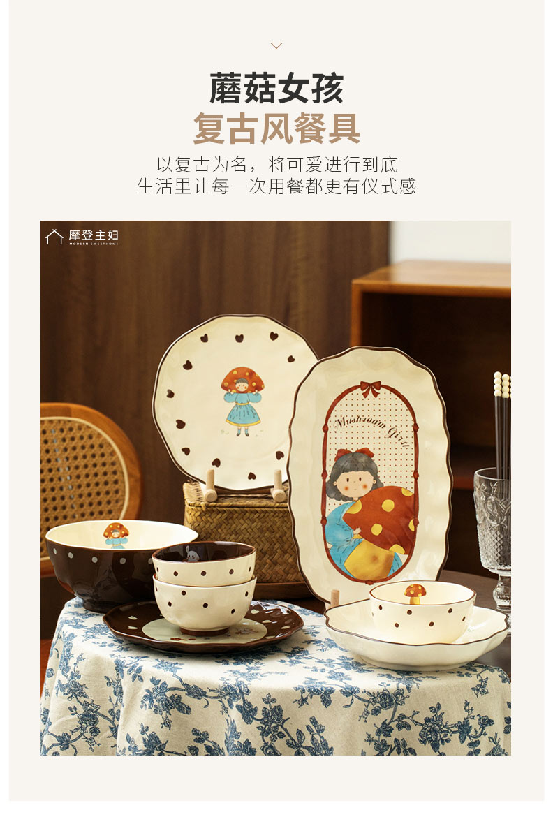 摩登主妇复古女孩碗碟套装伴手礼碗盘闺蜜生日礼物送女生餐具套装