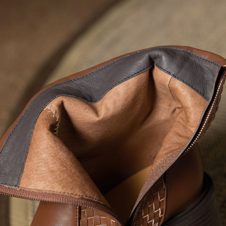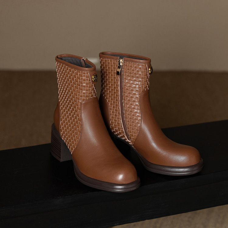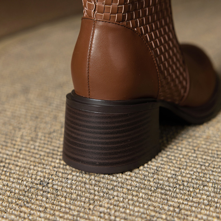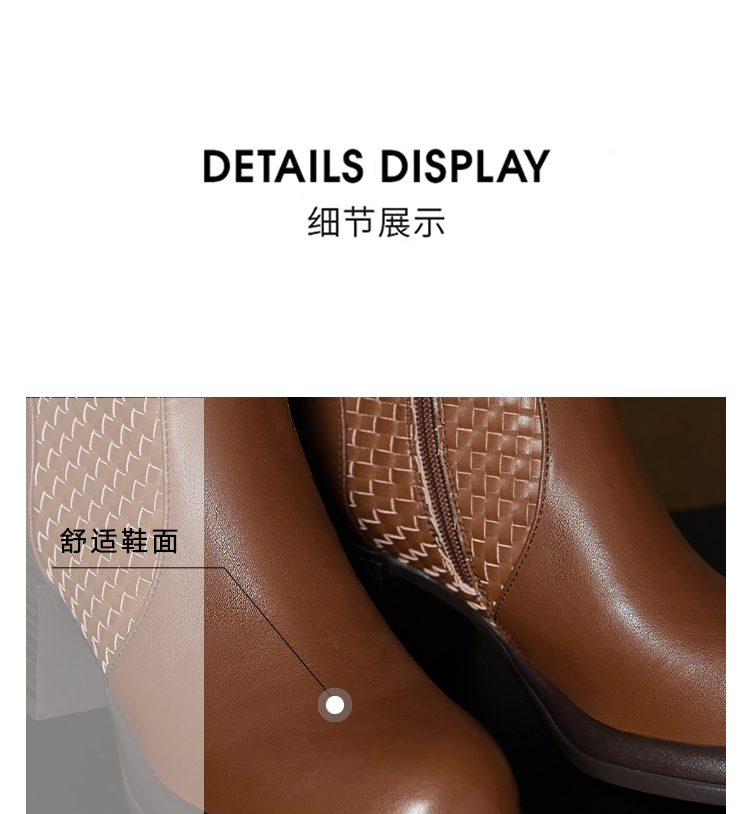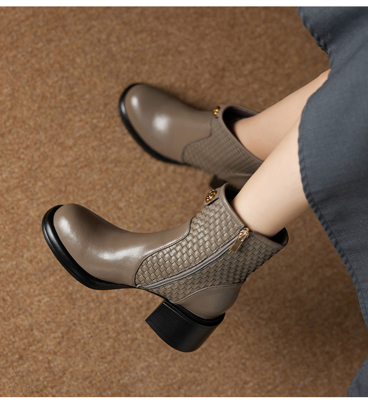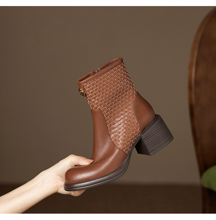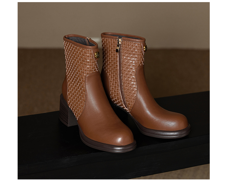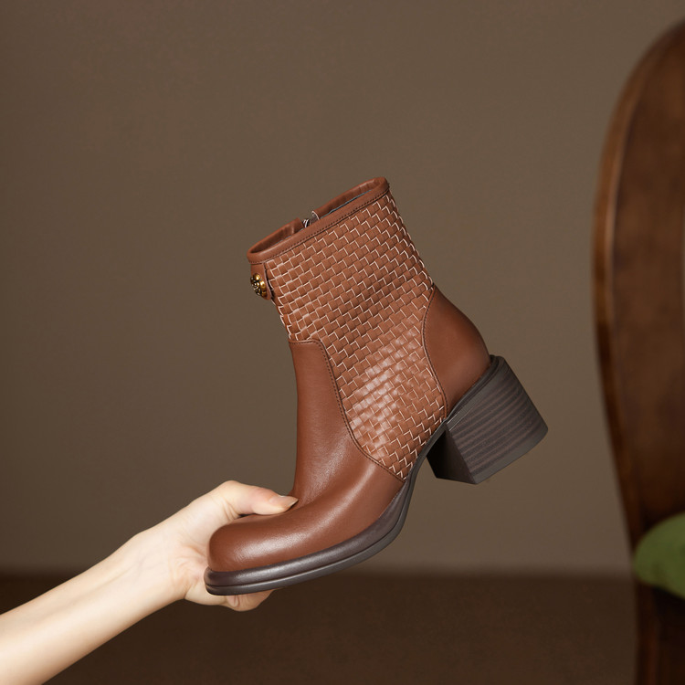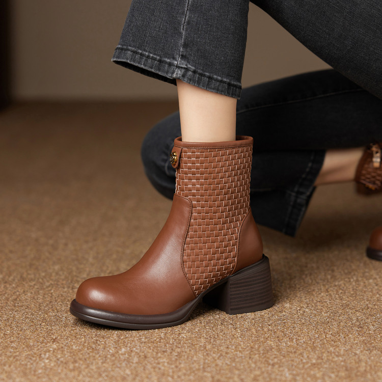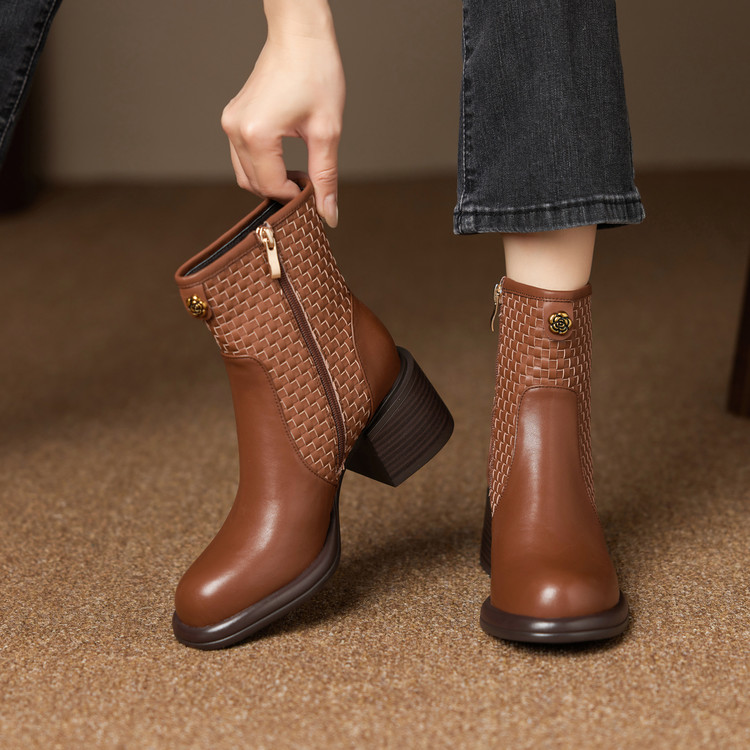 【预售5天】6cm圆头粗跟短靴女新款百搭高跟鞋编织时装切尔西靴MLD&AC1795