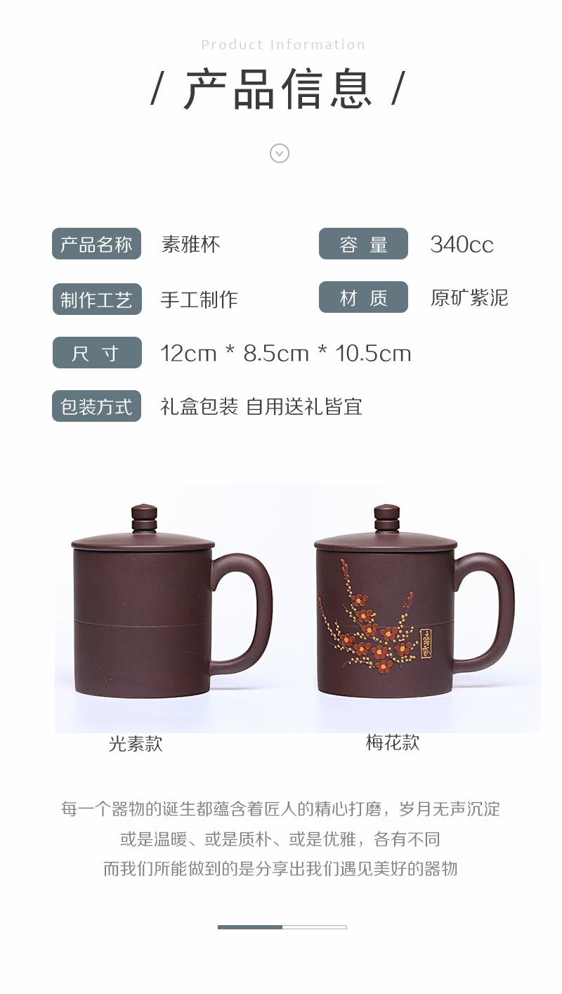 梵匠 『素雅盖杯』原矿紫泥 宜兴紫砂盖杯杯 340cc