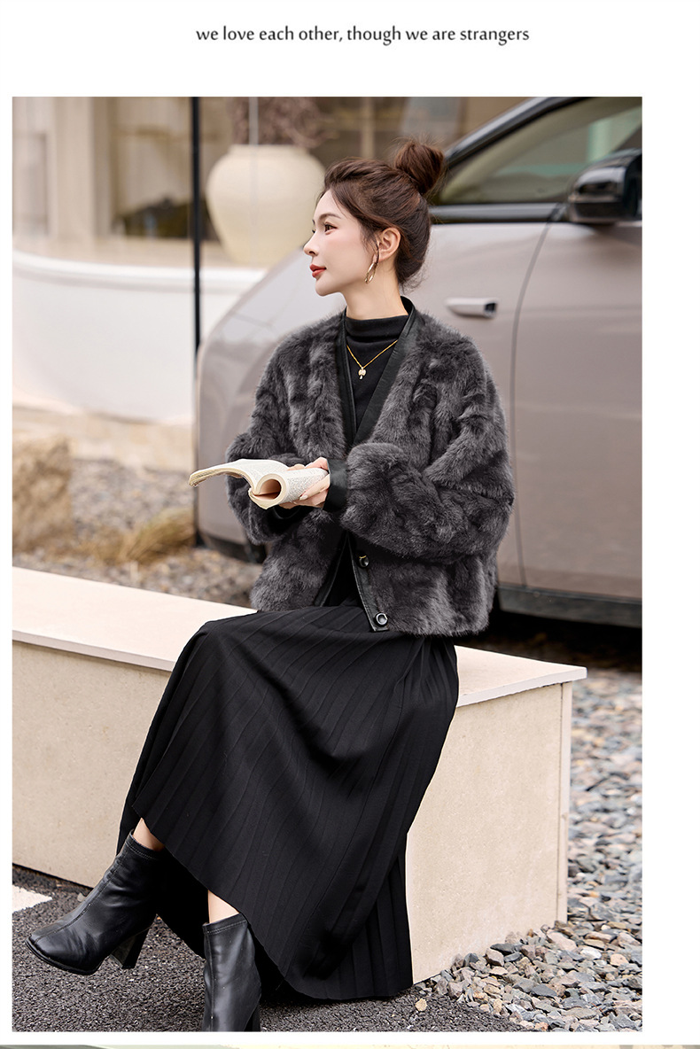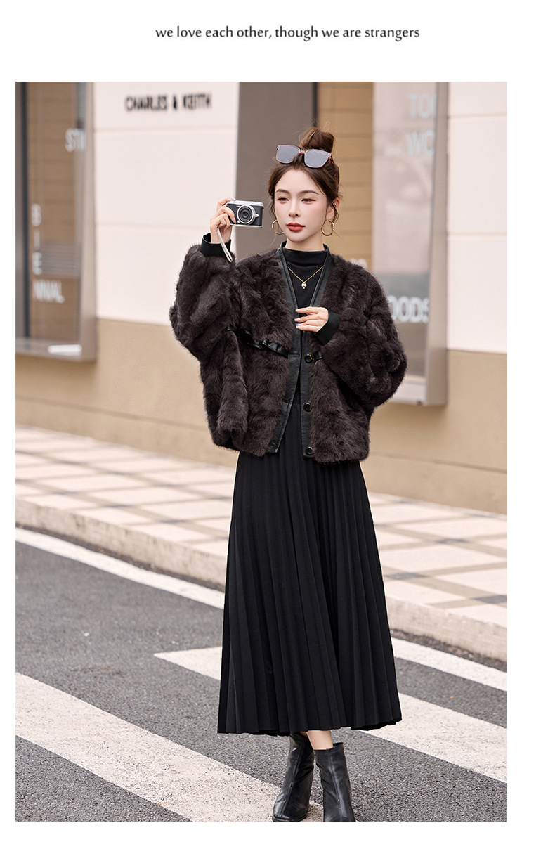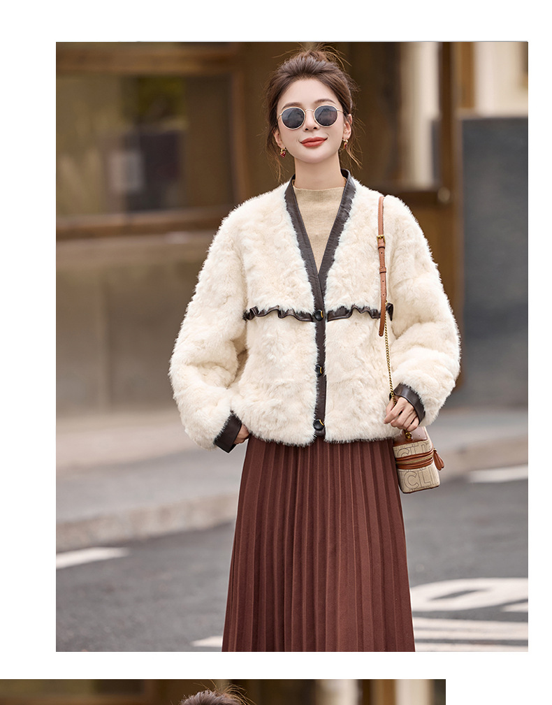 HR YJH5529皮草外套拼接皮毛一体慵懒宽松压花 商品图0