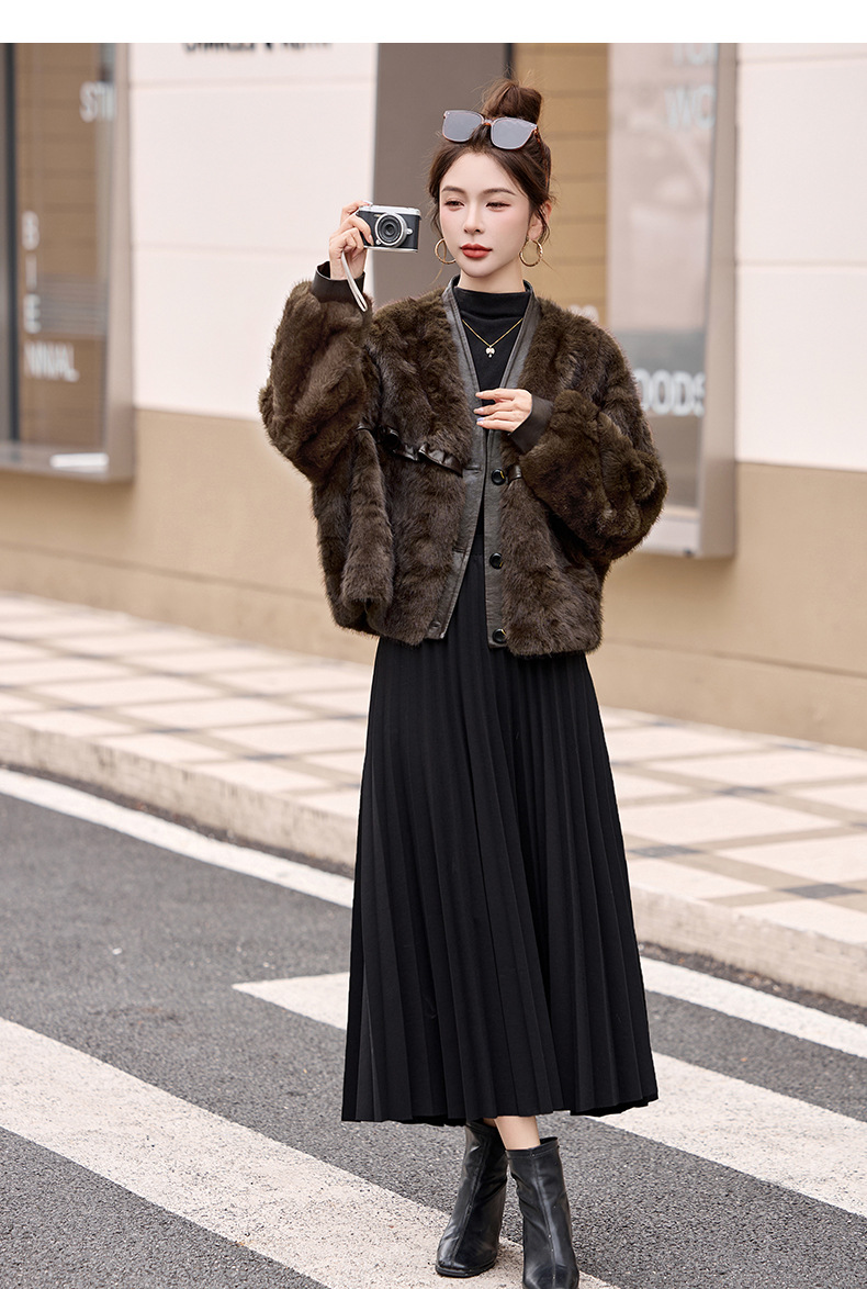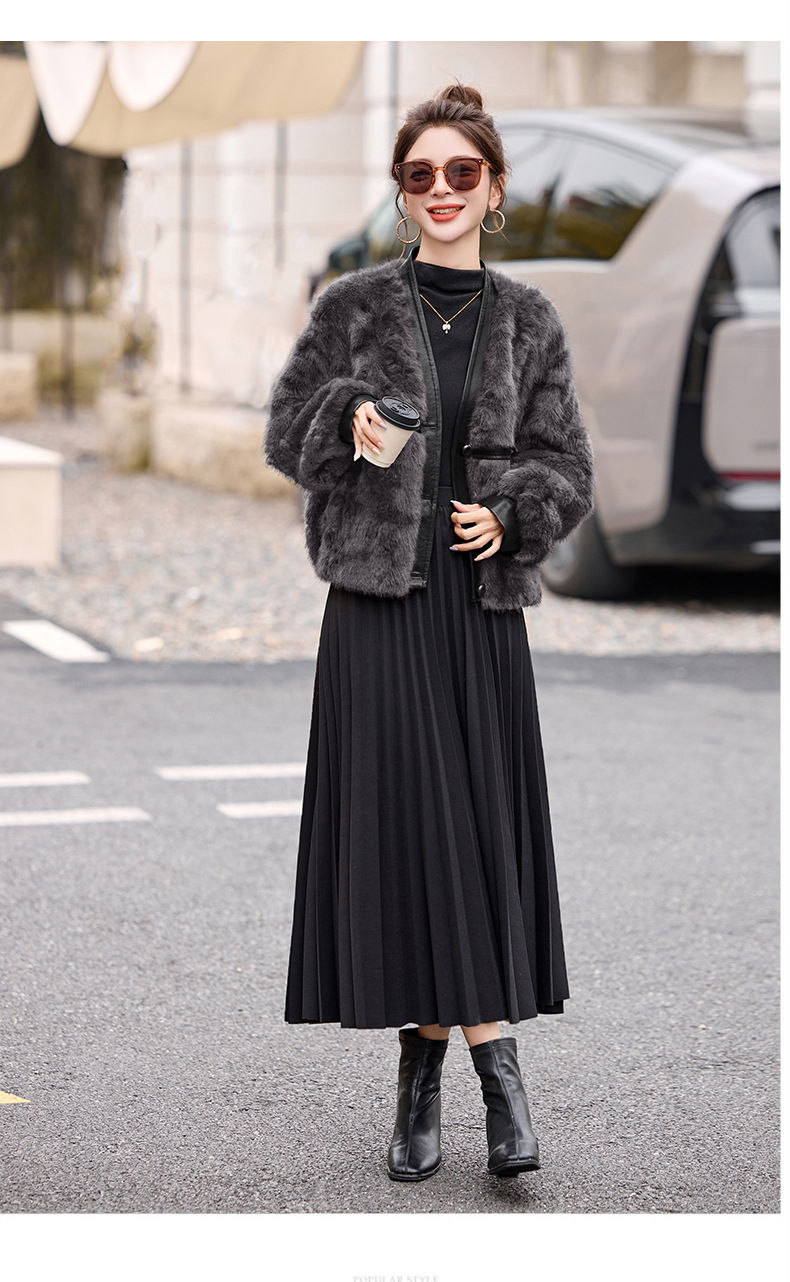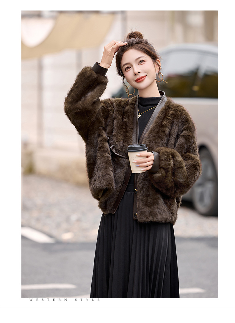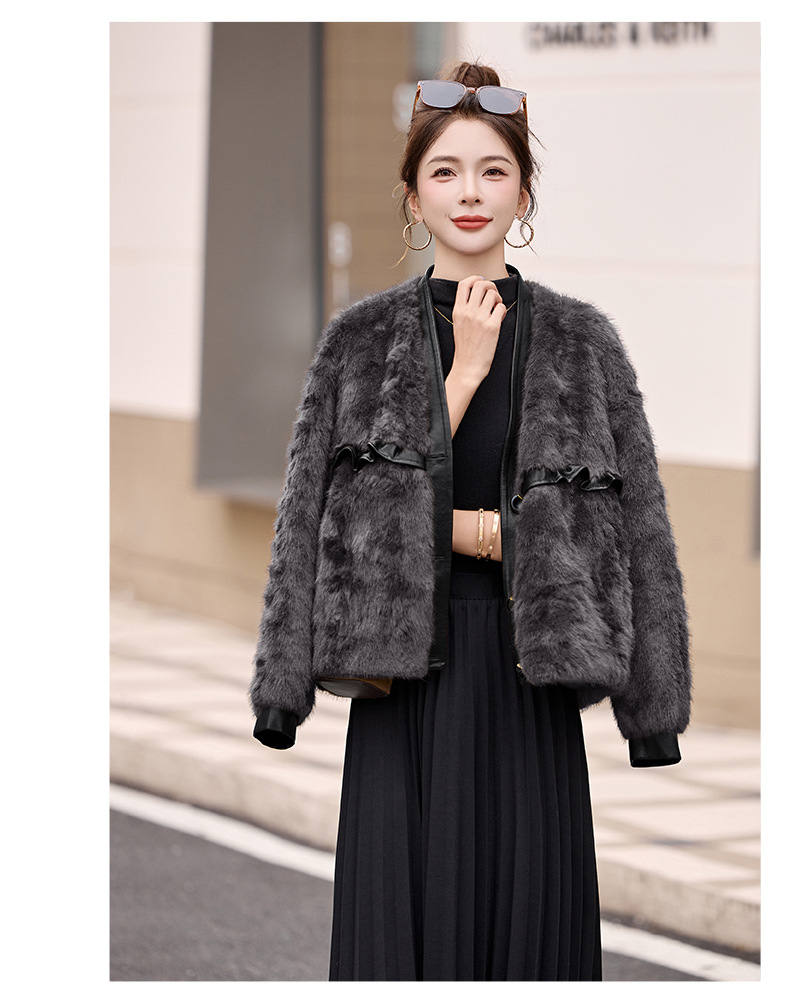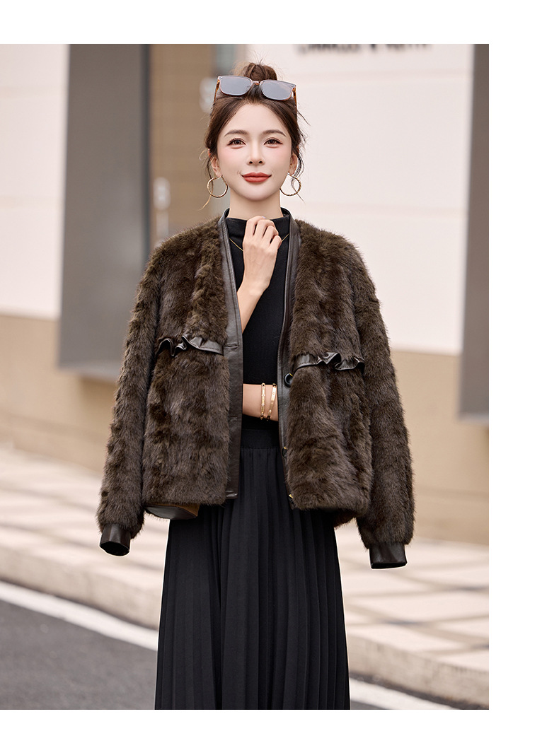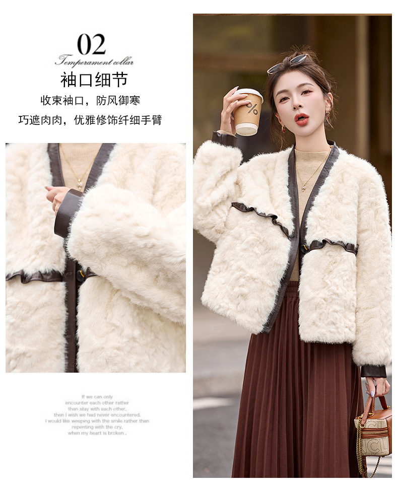 HR YJH5529皮草外套拼接皮毛一体慵懒宽松压花 商品图4