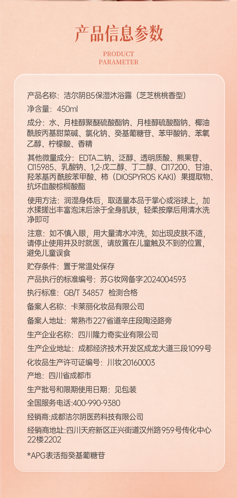 【PK某猫79.9】洁尔阴B5保湿沐浴露持久留香
