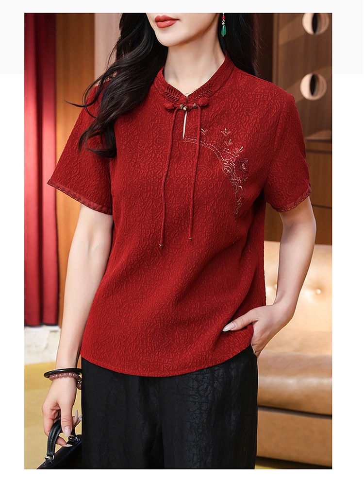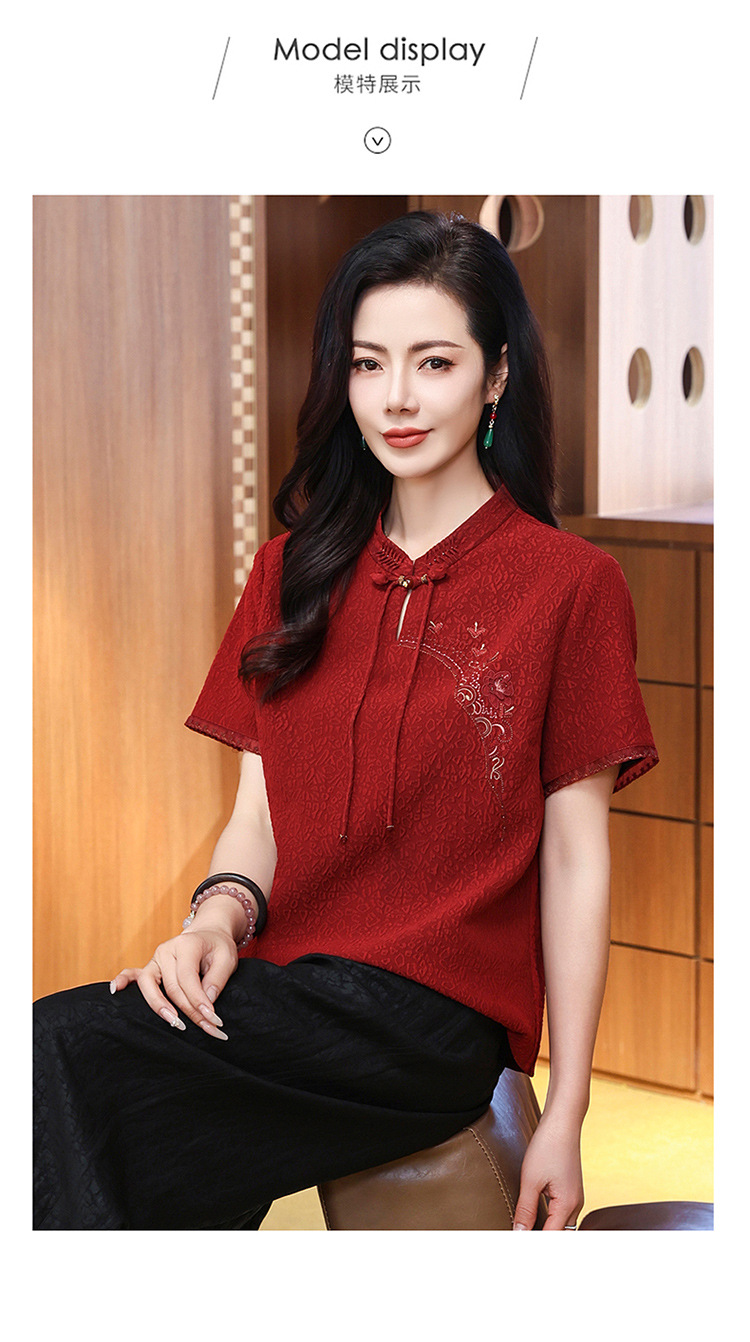 LS-LX2825冠乐绉香云纱上衣女2025夏装新款中式短袖贵夫人桑蚕丝真丝衬衫
