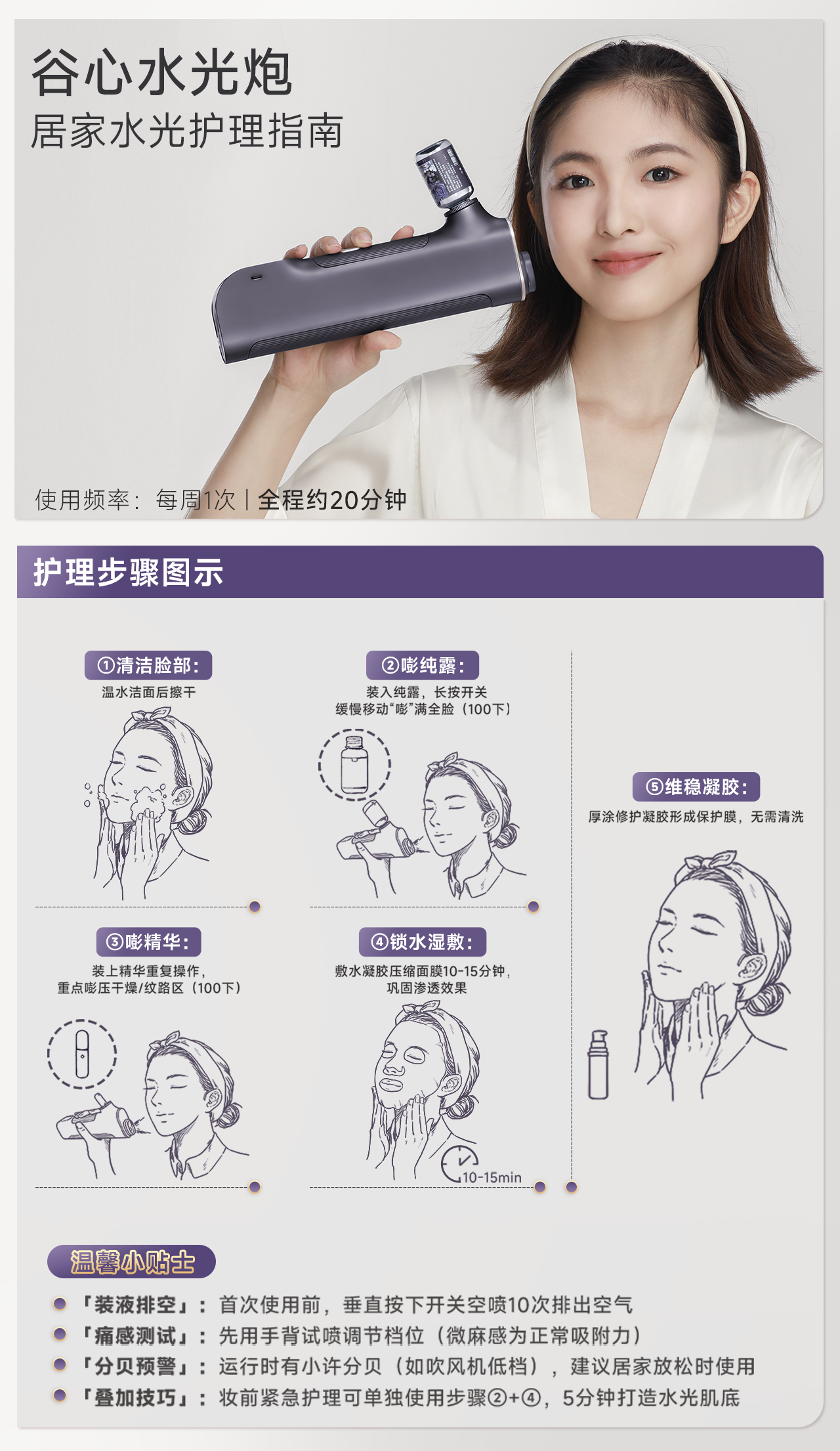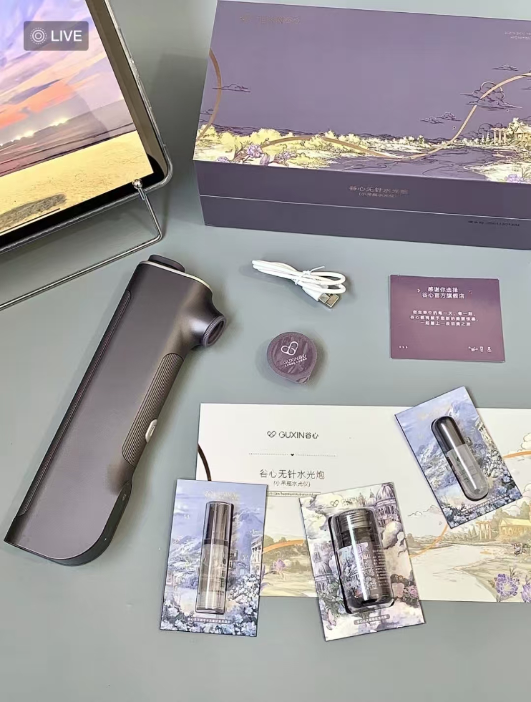 一台谷心无针水光炮+谷心护理包,直接在家把美容院水光灌进皮肤里