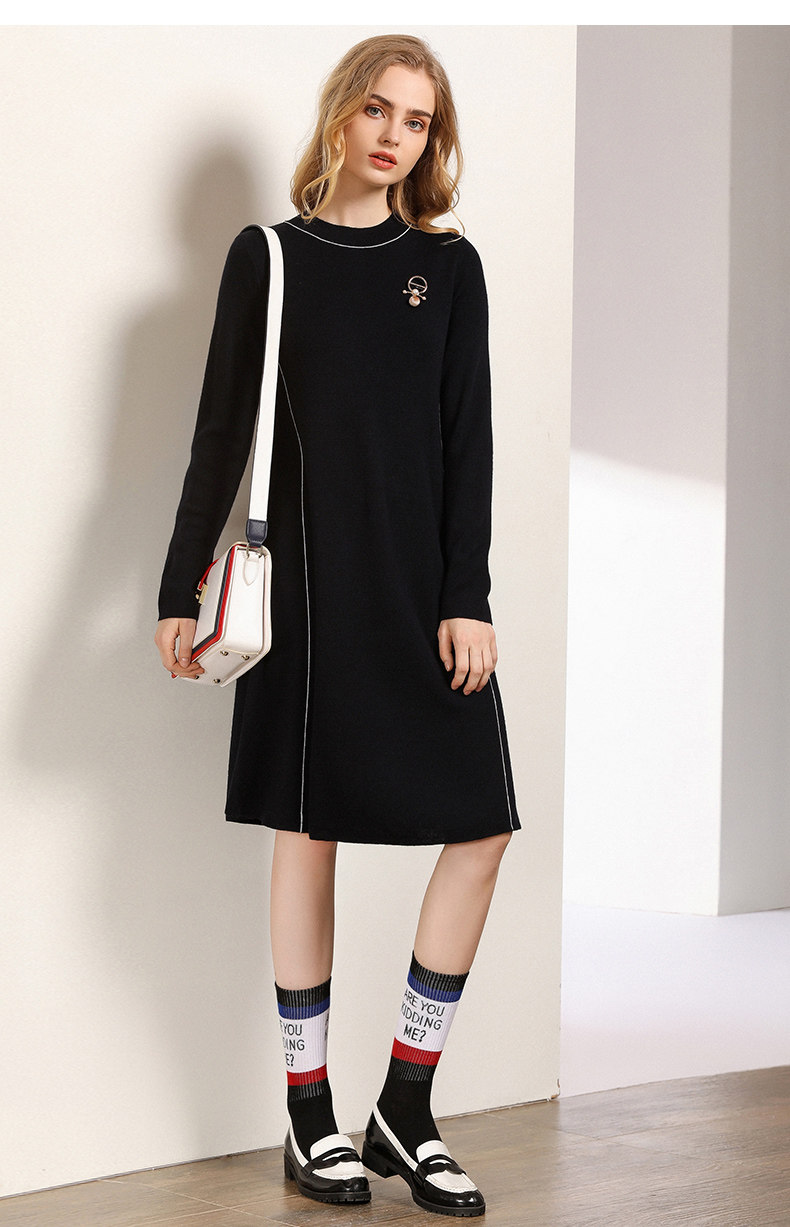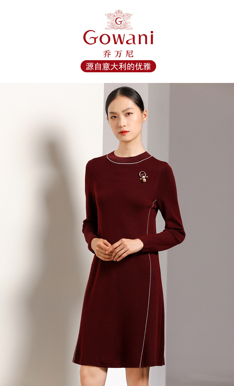 【两色可选】乔万尼羊毛针织连衣裙秋季修身高腰气质长袖打底裙子EN3M393