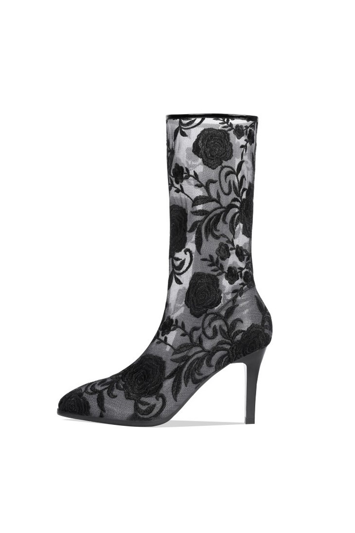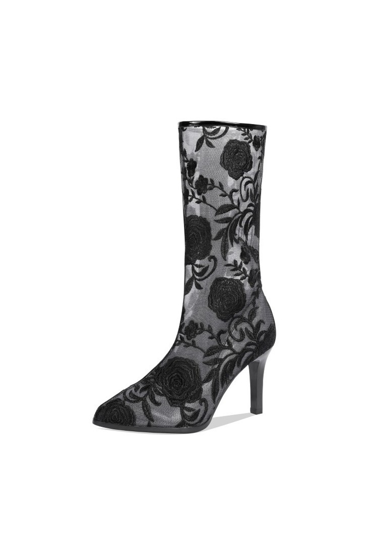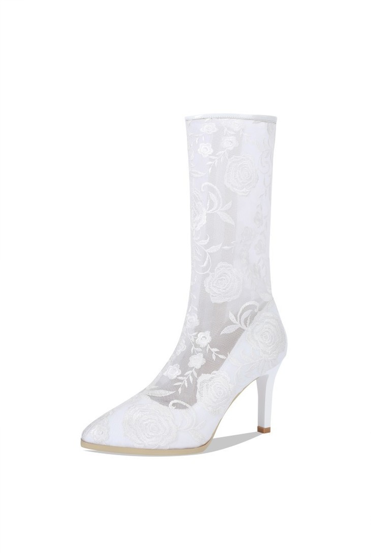 OLD-197-W831网靴带跟新款夏季靴子罗马高筒高跟凉靴透气靴