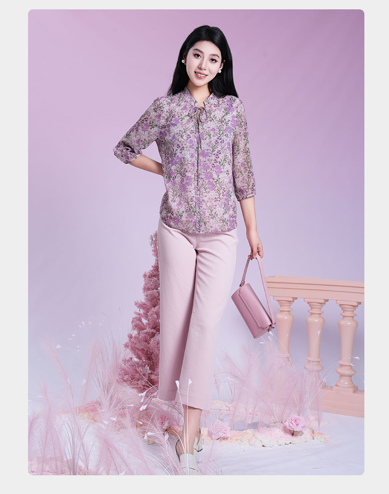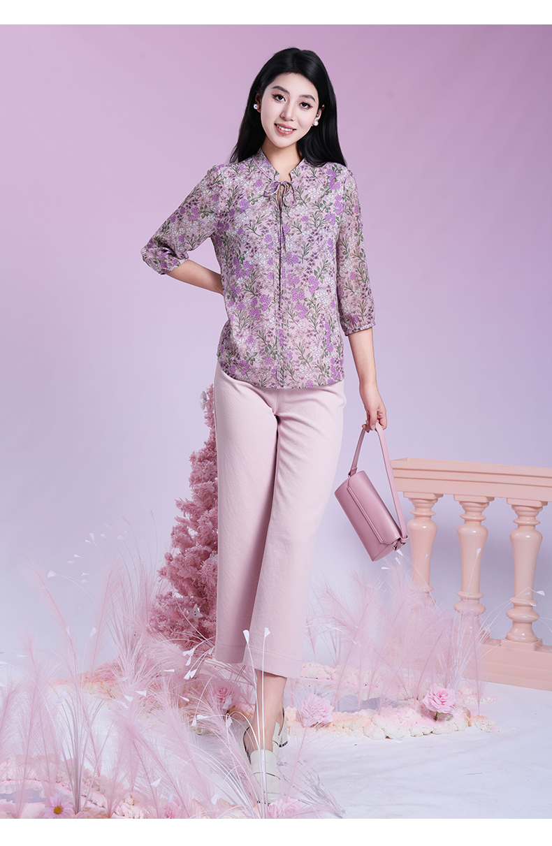 乔万尼新品悠然假日宽松碎花短袖上衣ED2C533