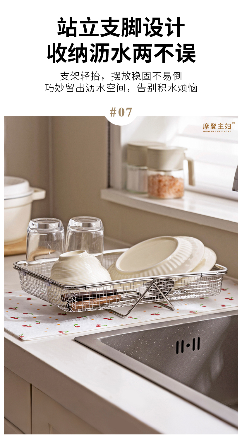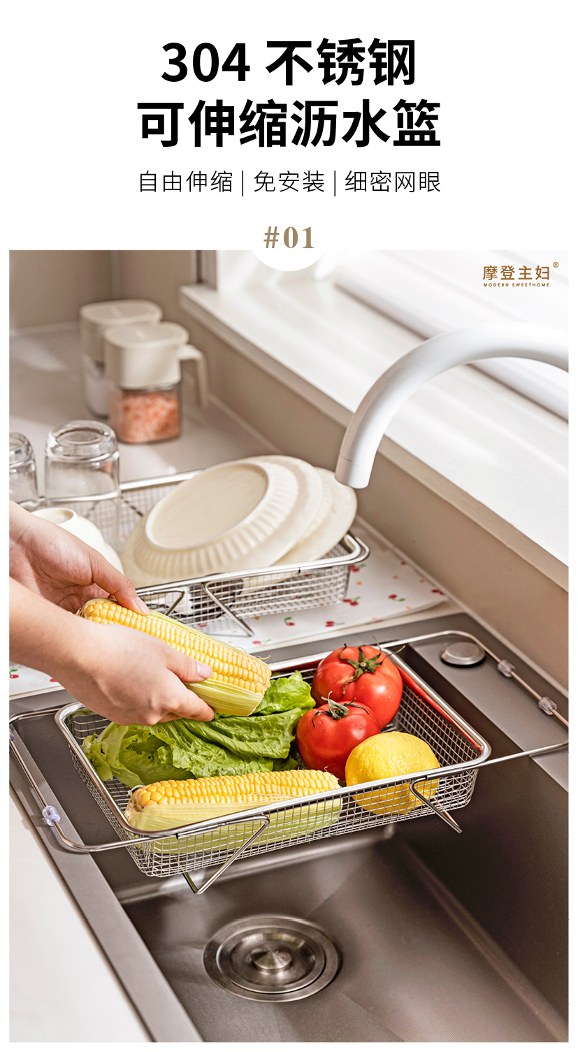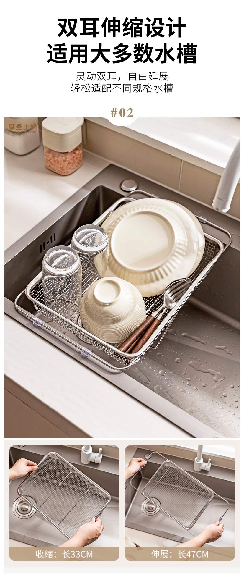 摩登主妇304不锈钢沥水架可伸缩厨房洗碗池水槽碗碟沥水篮置物架