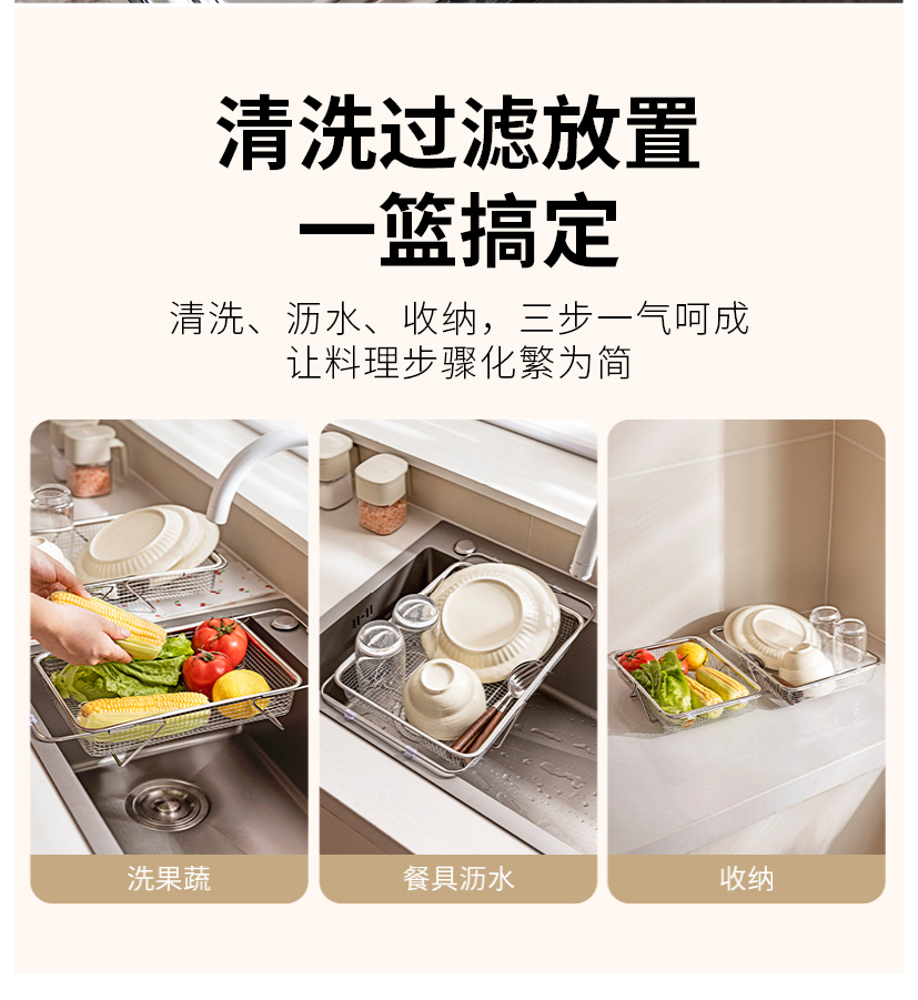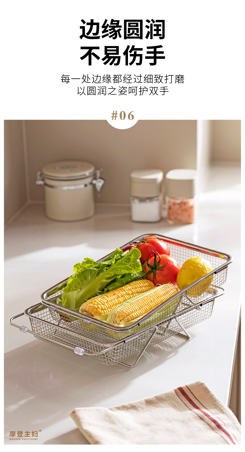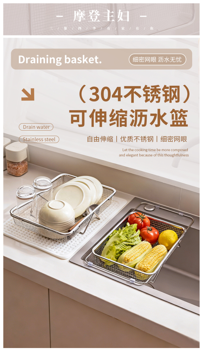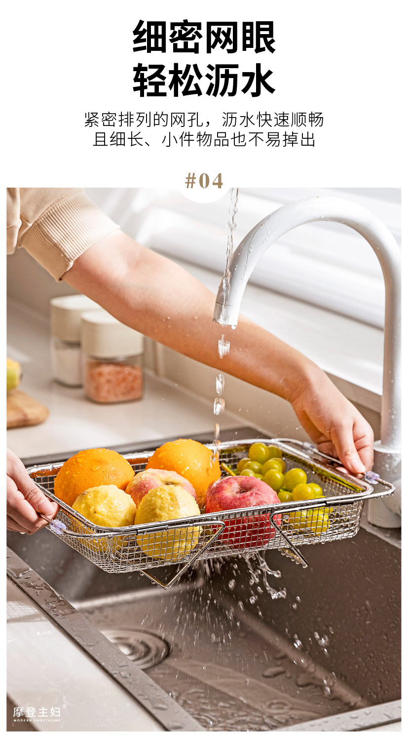 摩登主妇304不锈钢沥水架可伸缩厨房洗碗池水槽碗碟沥水篮置物架