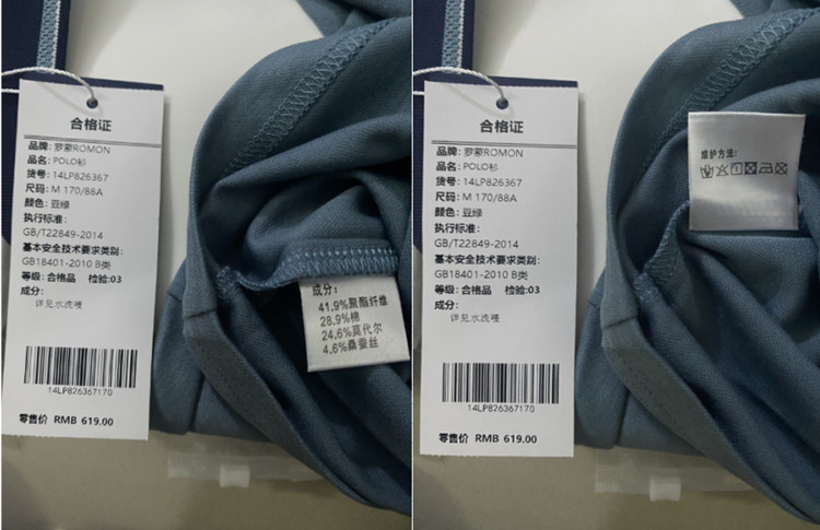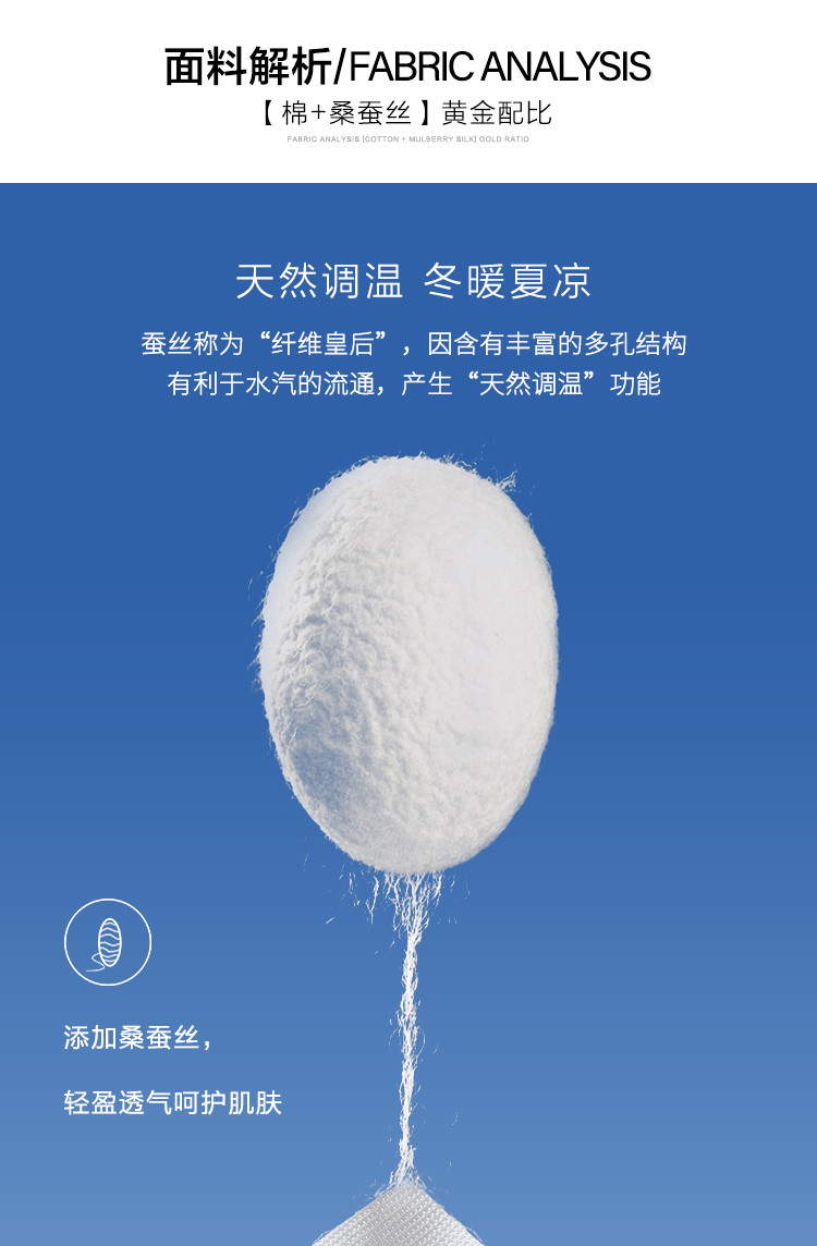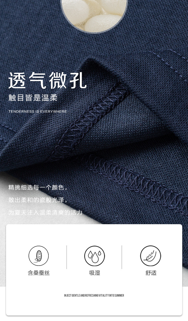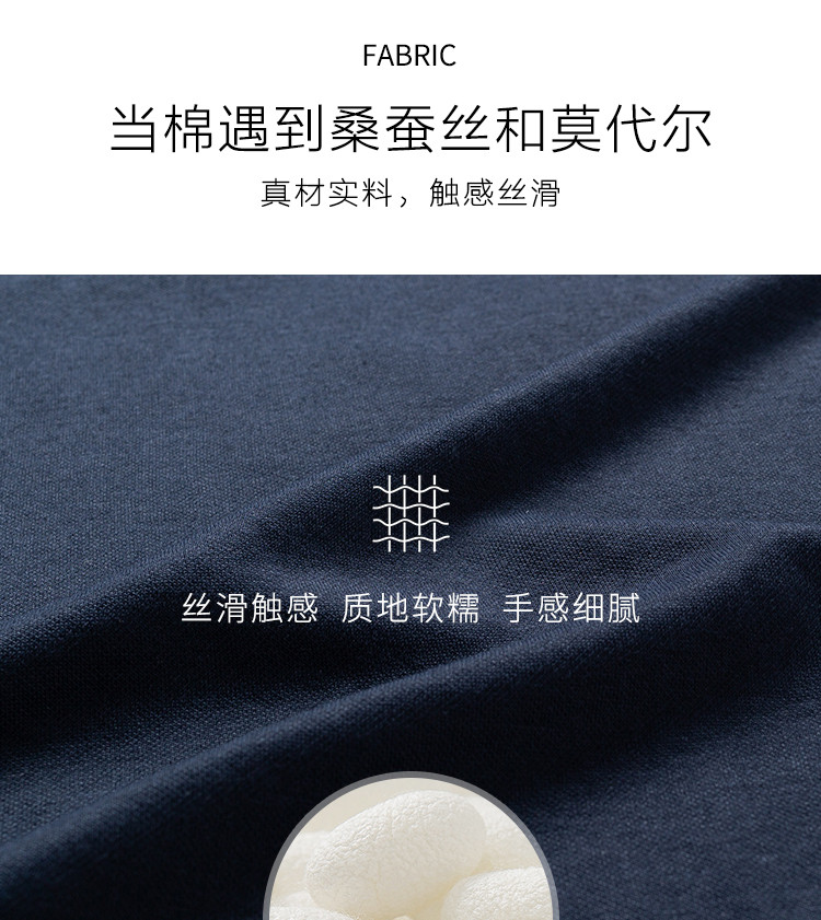 面料:41.9%聚酯纤维 28.9%棉 24.6%莫代尔 4.6%桑蚕丝