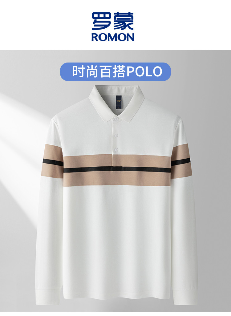 【色织撞色条】罗蒙男士春秋经典polo衫男长袖百搭长袖t恤男士polo衫