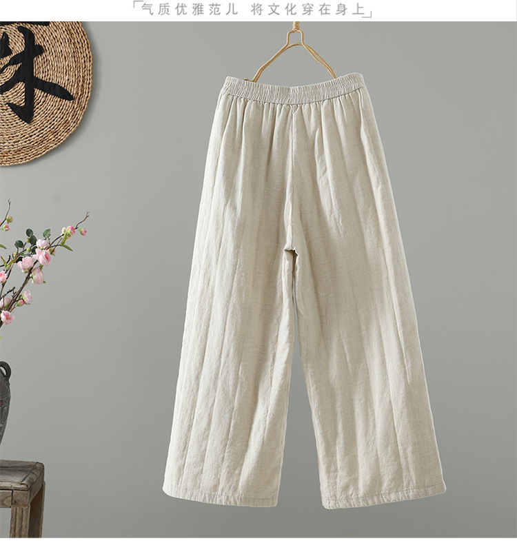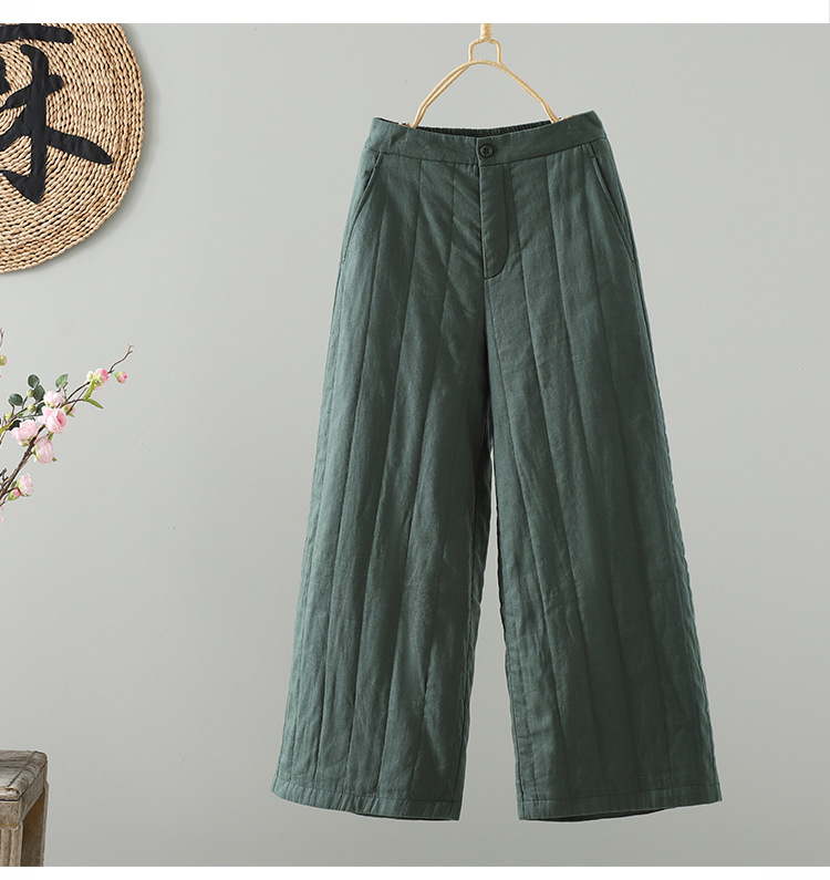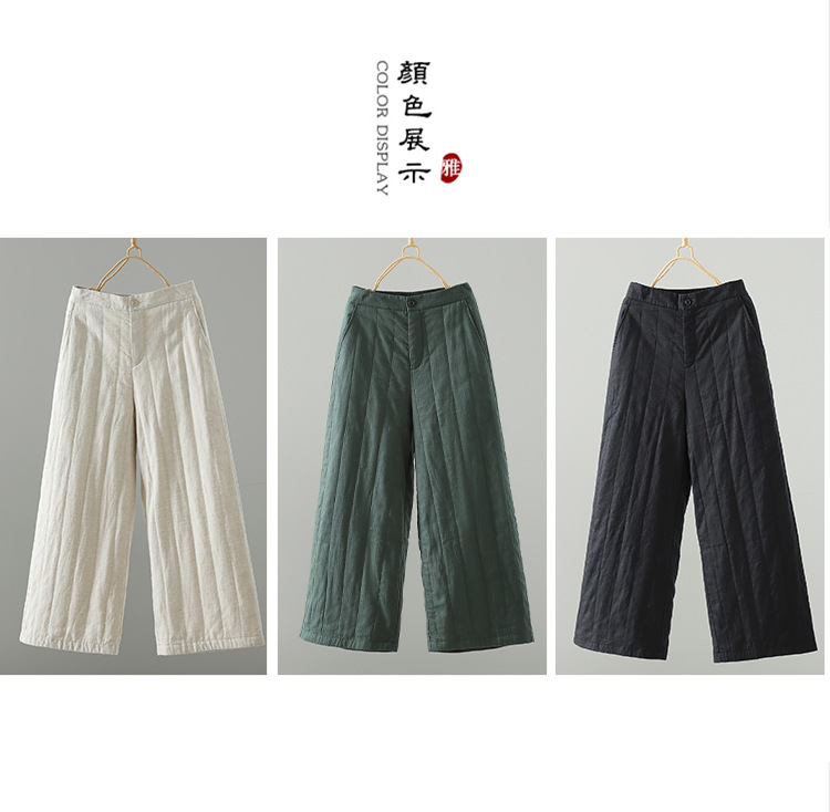 GYH 5667复古中式松紧腰宽松休闲夹棉加厚阔腿裤