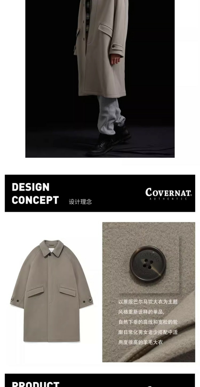 Covernat冬新品羊毛大衣巴尔马坎大衣毛呢外套长款CO2304CT05