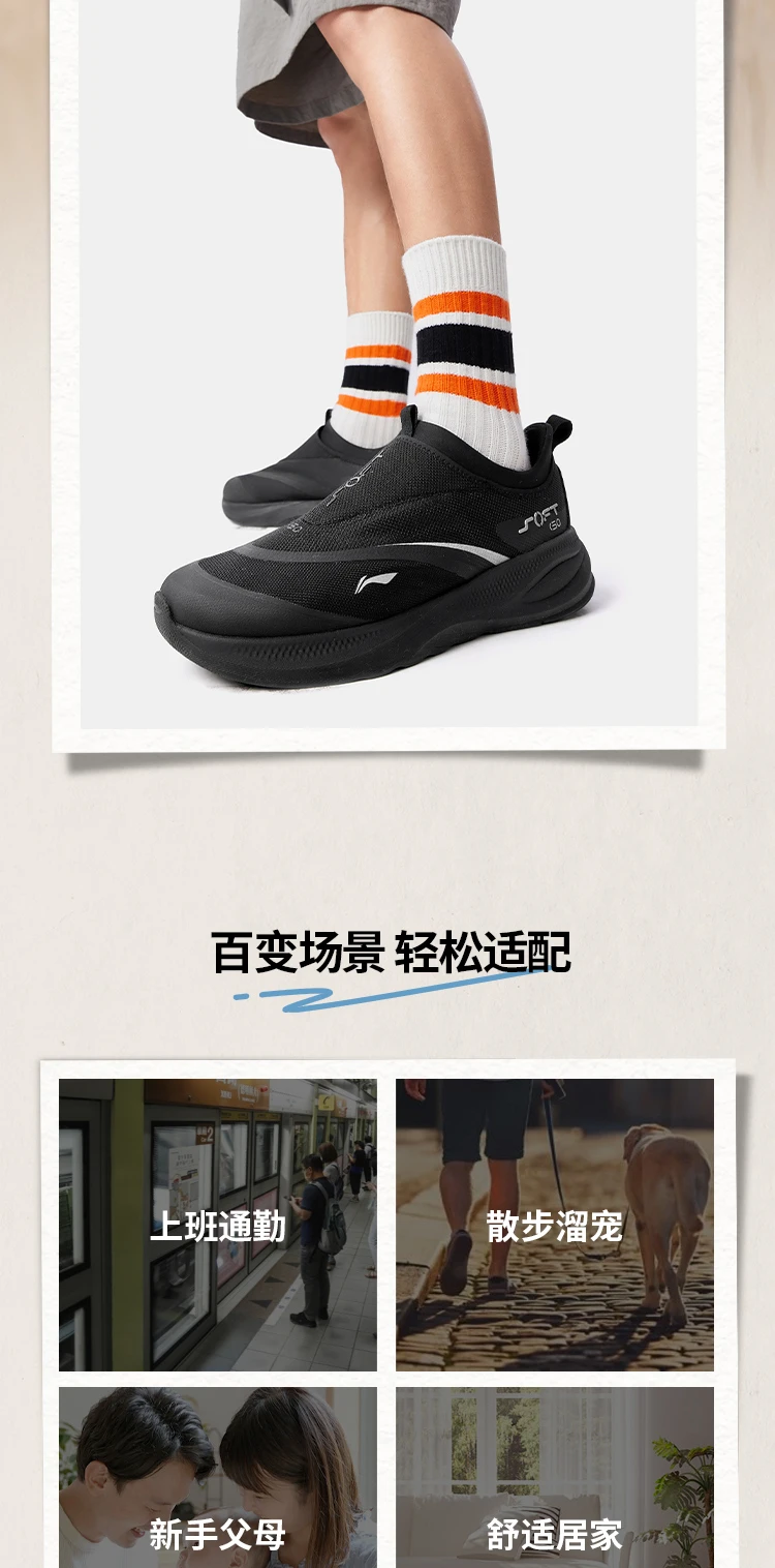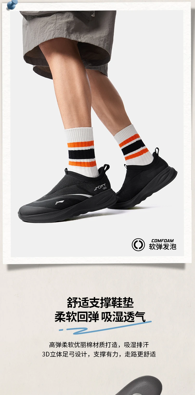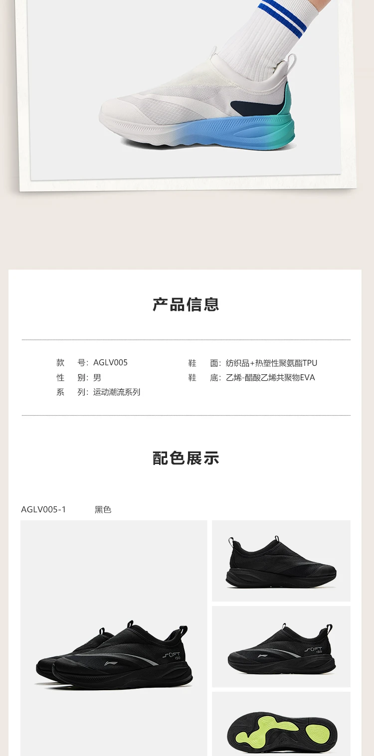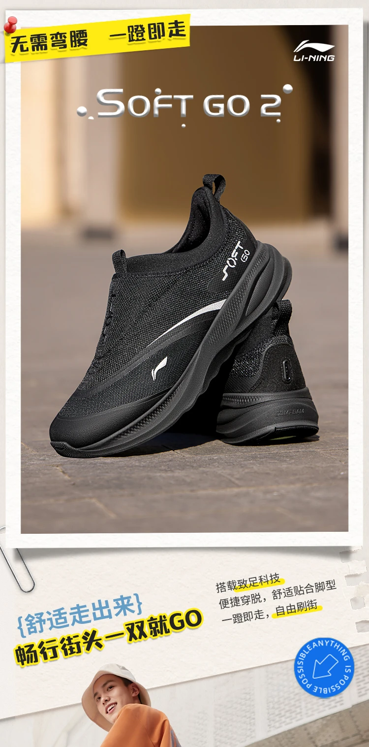 【爆款推荐】李宁SOFT GO2 | 休闲鞋男鞋2025新款一脚蹬公务轻便透气运动鞋AGLV005-10/66